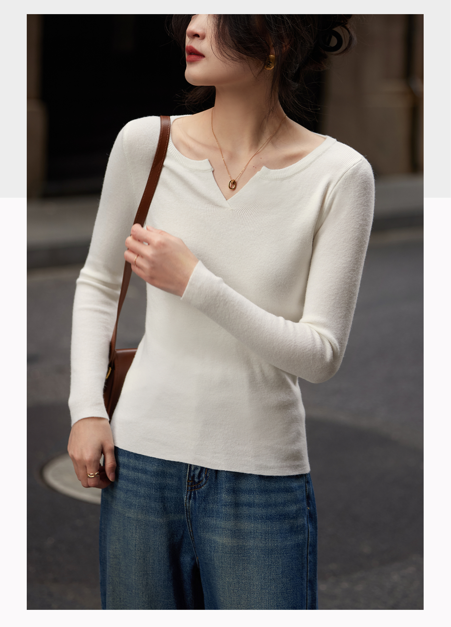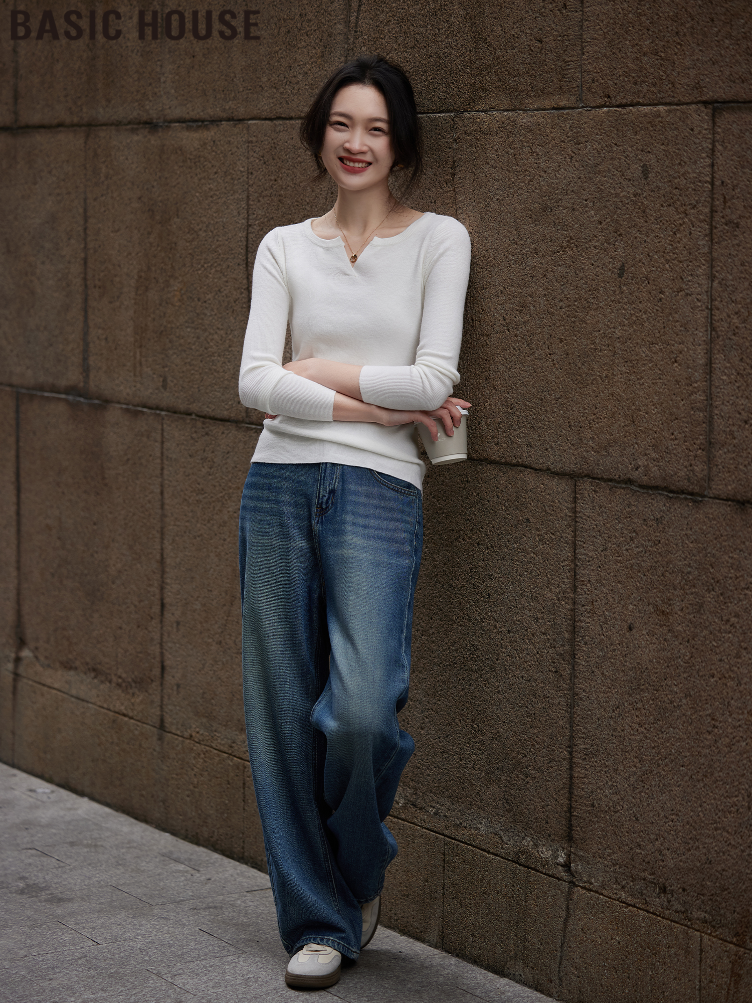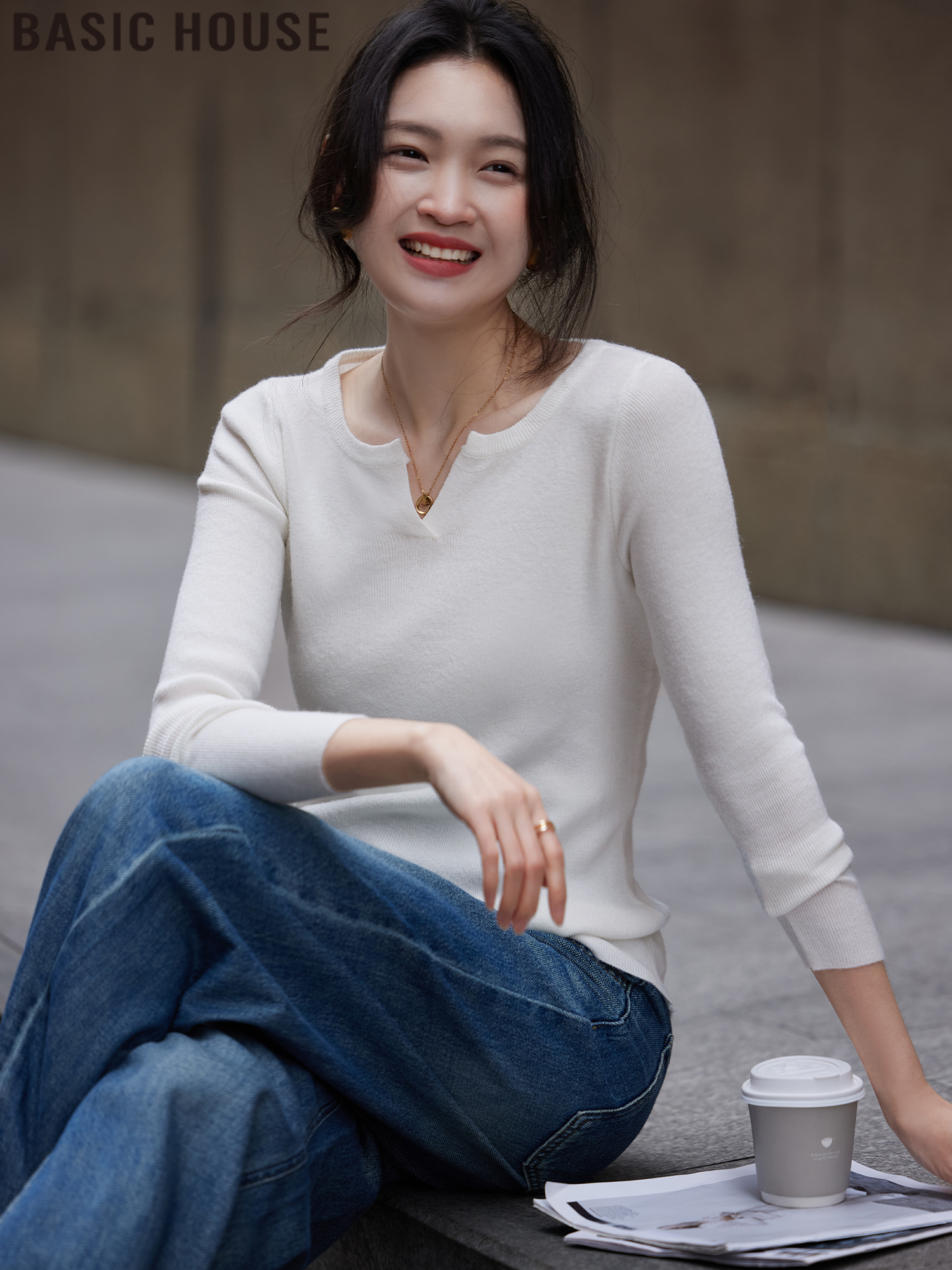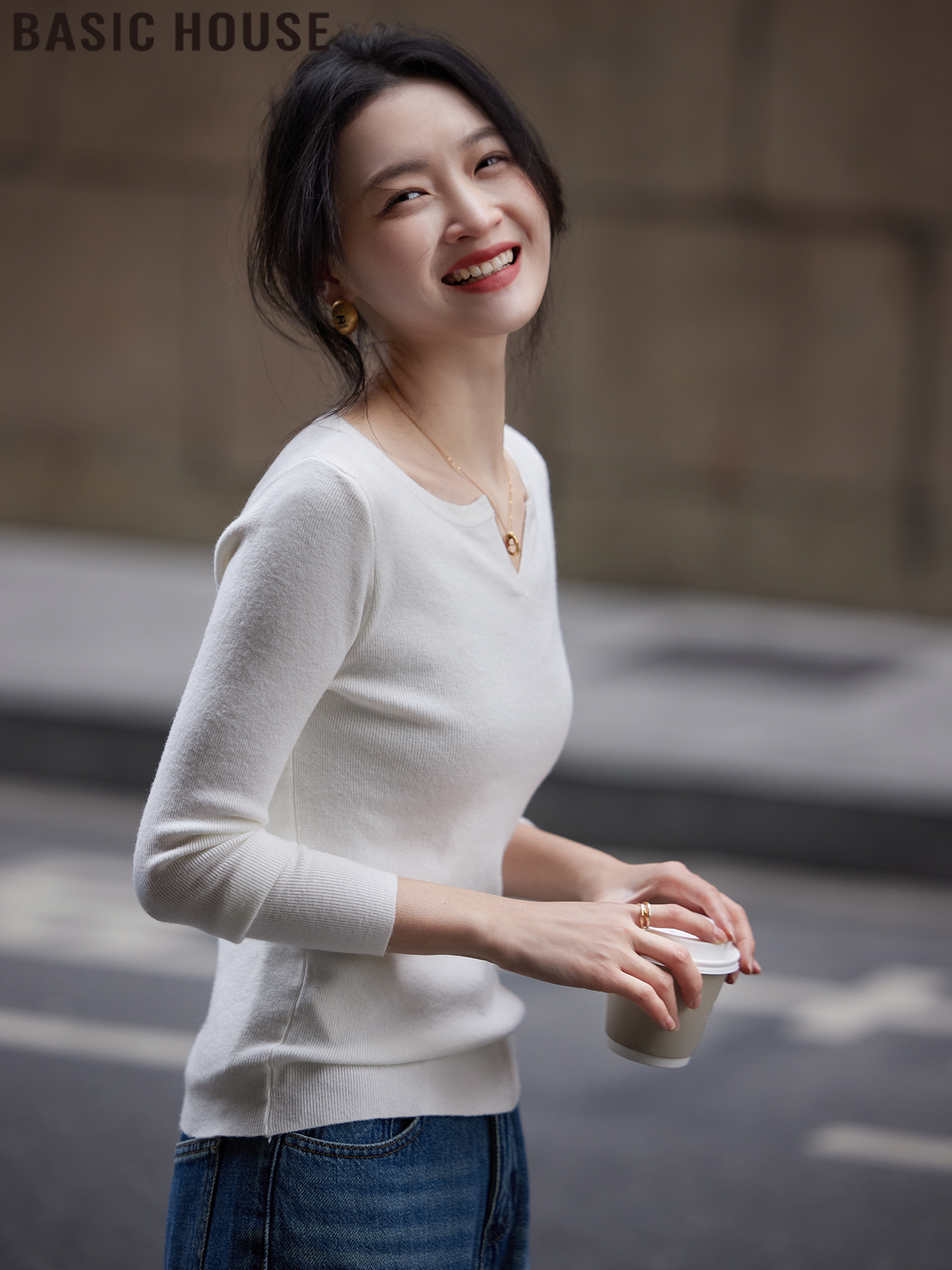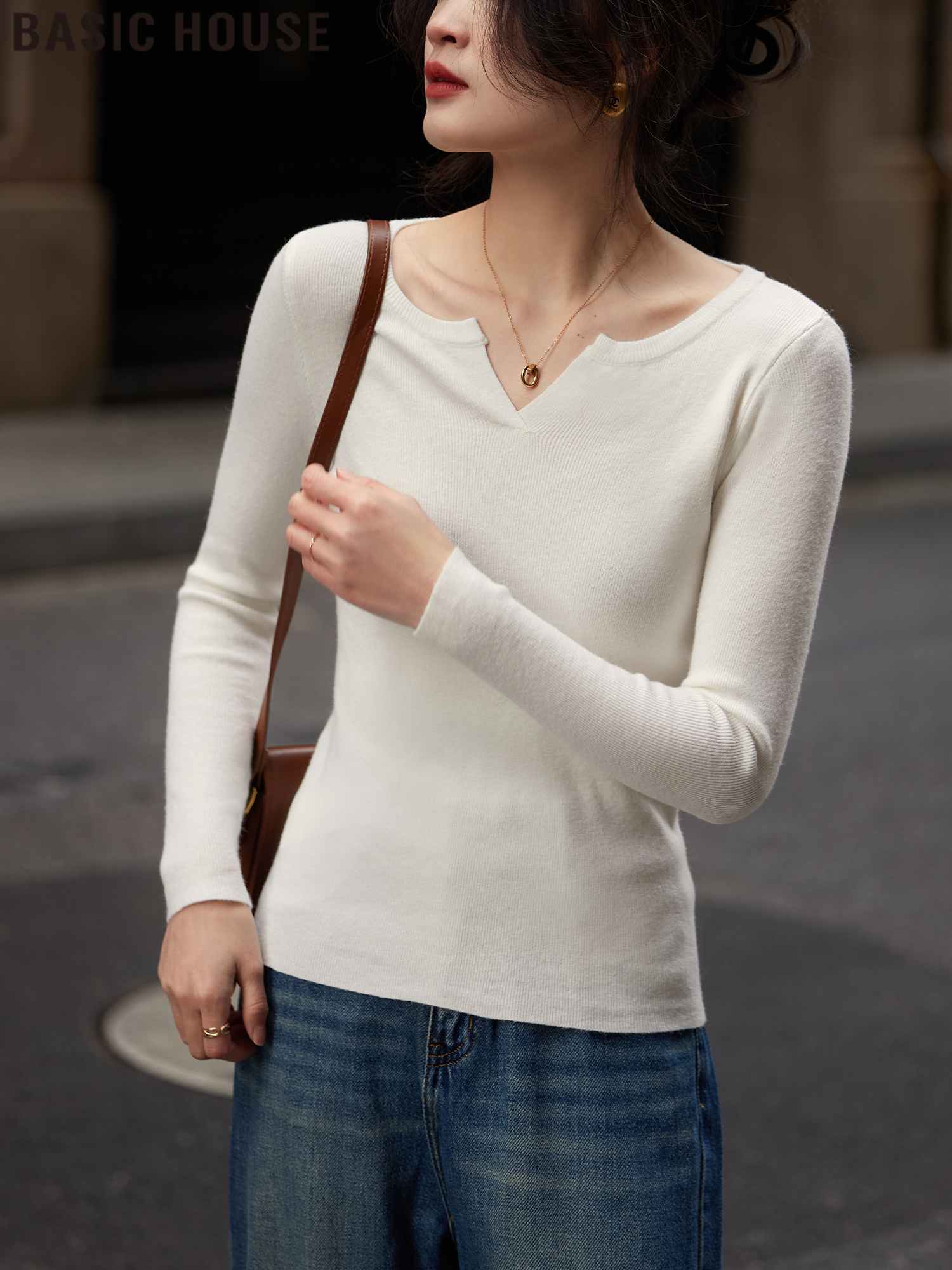 Basic House 2025 Spring New Arrival! Baijiahao Zhijian Zhimei V-neck Knitted Base Shirt for Women