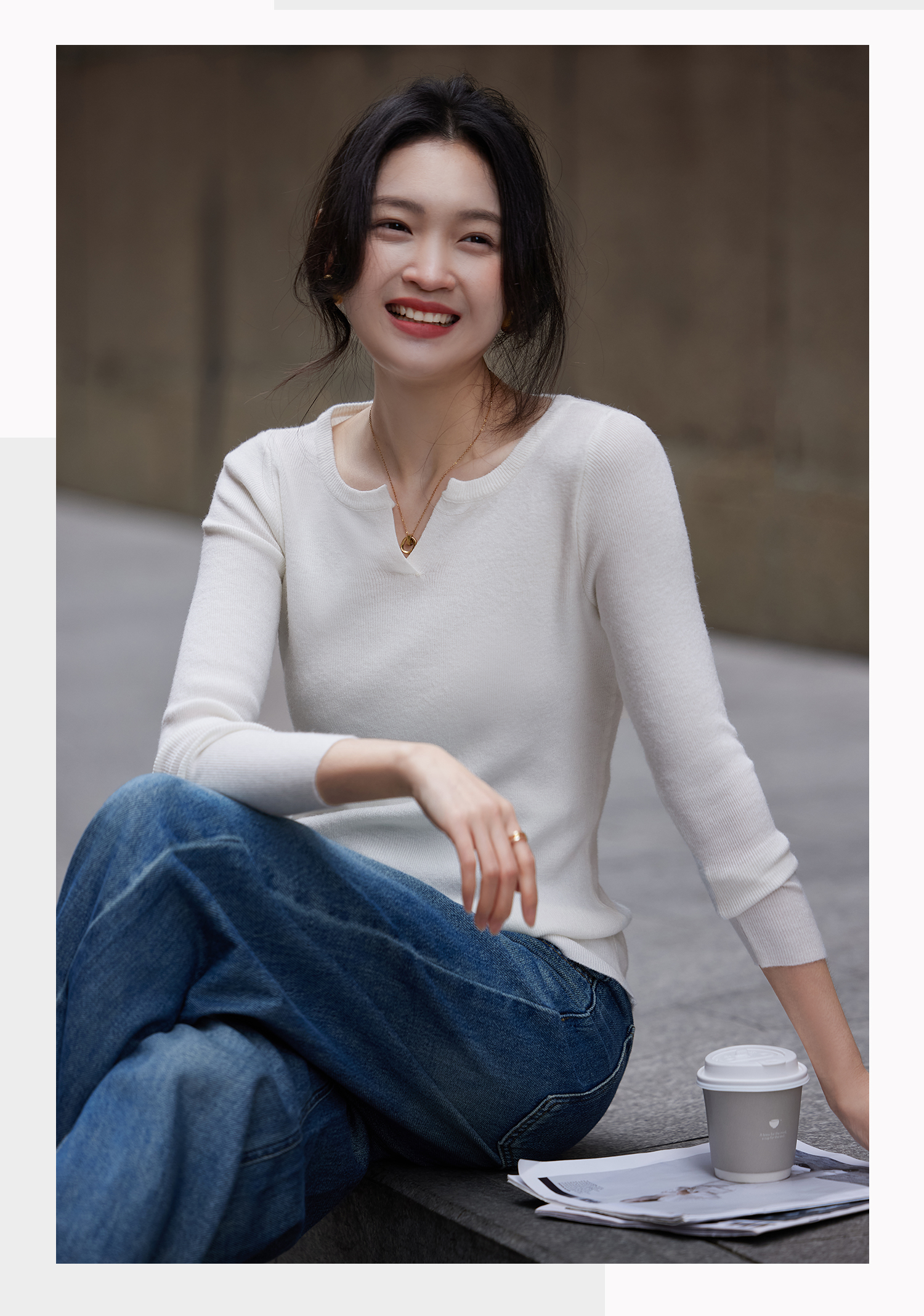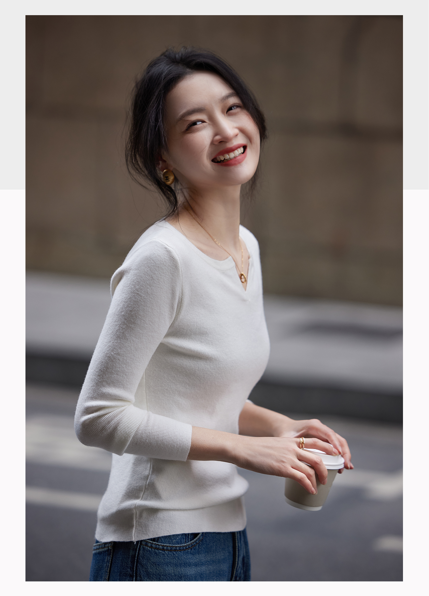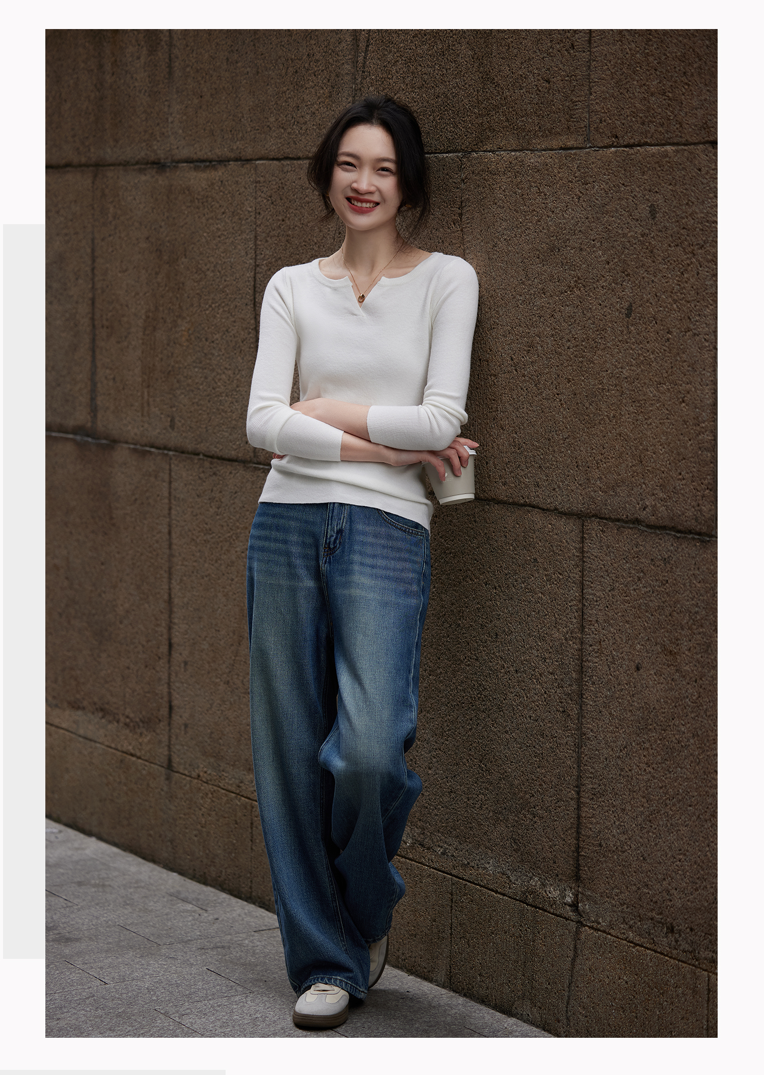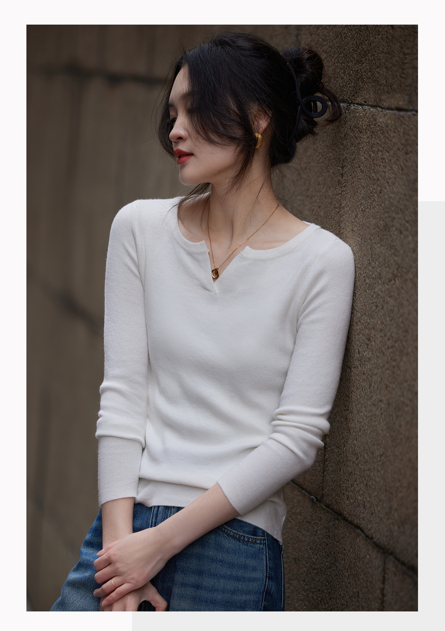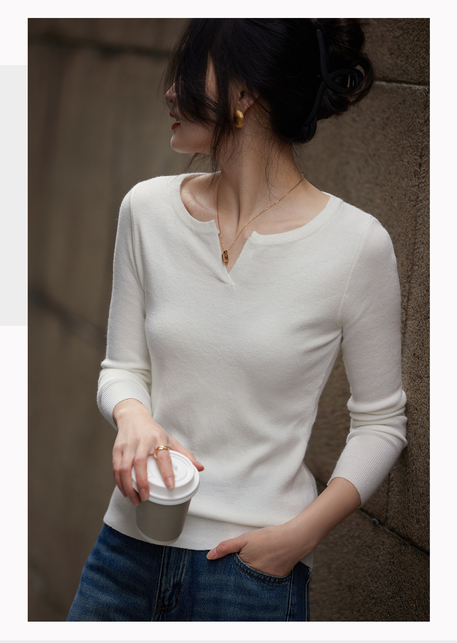 Basic House 2025 Spring New Arrival! Baijiahao Zhijian Zhimei V-neck Knitted Base Shirt for Women