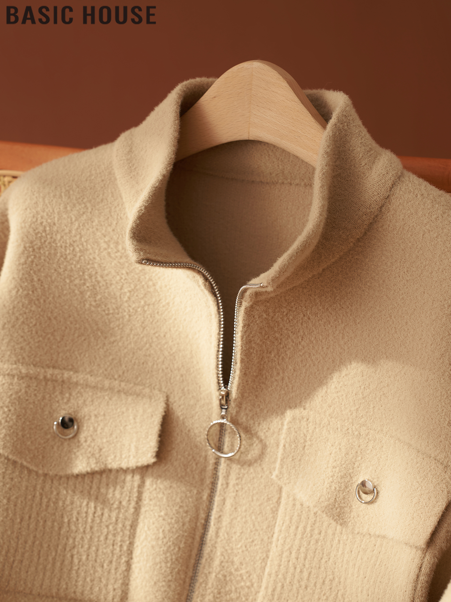 Basic House Camel Double-Sided Velvet Outwear Women's Spring Autumn Short Zipper Cardigan