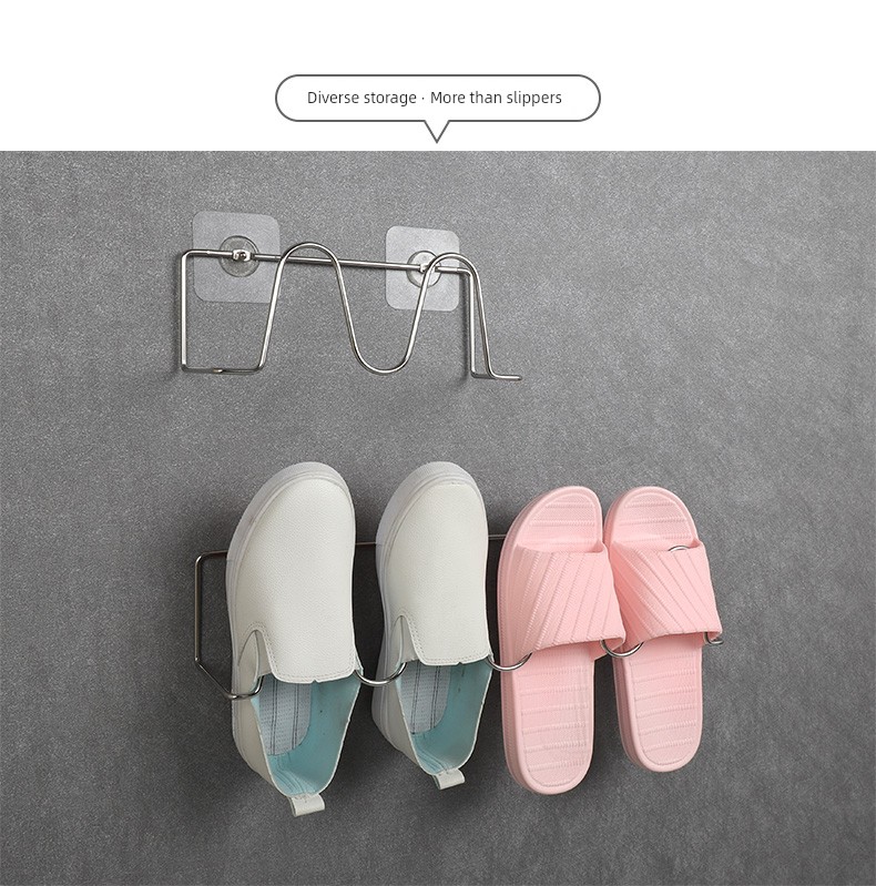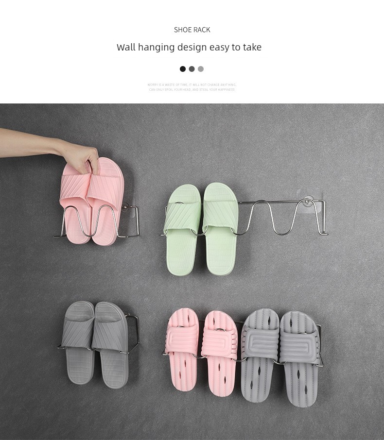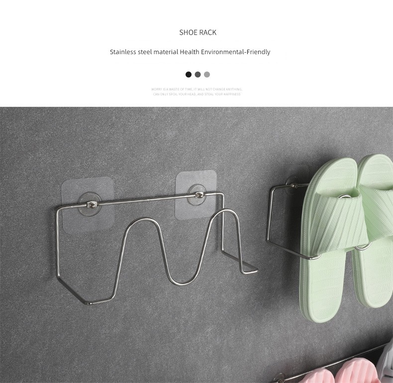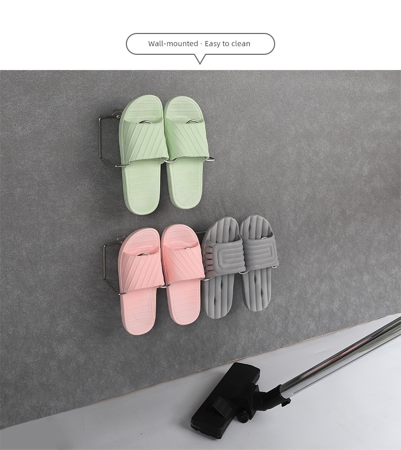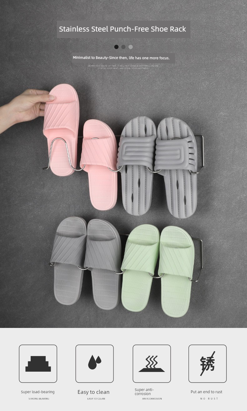 Bathroom Slipper Rack Stainless Steel Wall Hanging Drainage Punching Free Bathroom Shoe Rack No Trace Stickers Storage Rack