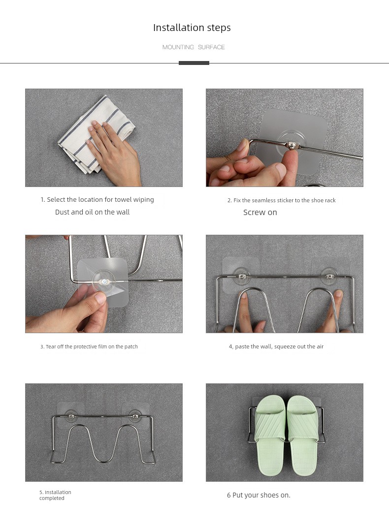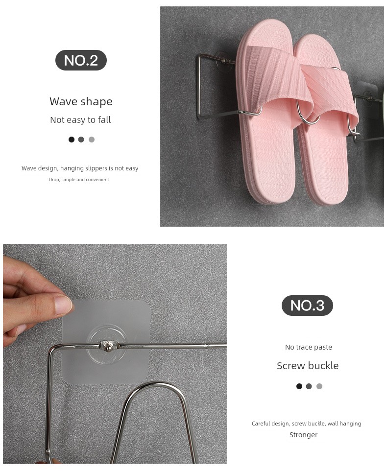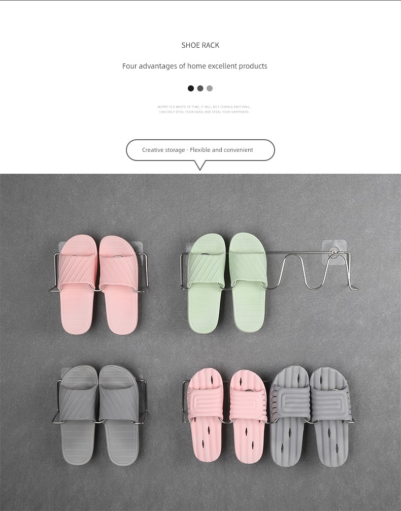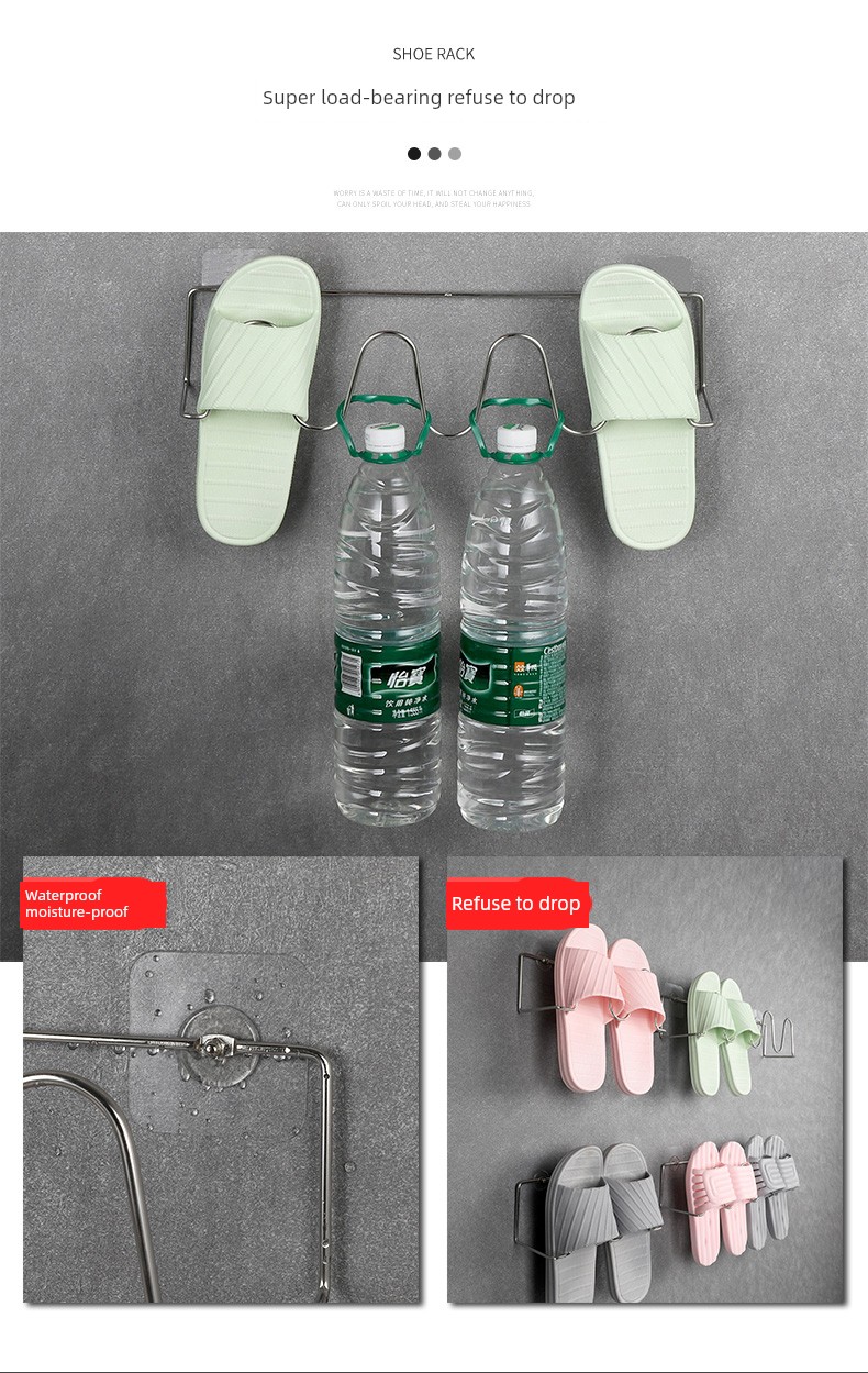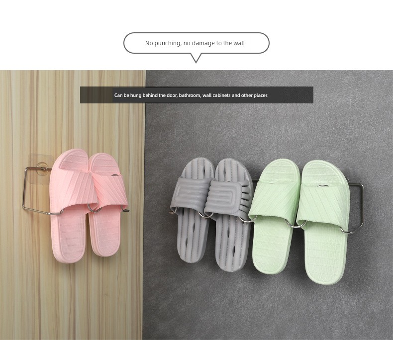 Bathroom Slipper Rack Stainless Steel Wall Hanging Drainage Punching Free Bathroom Shoe Rack No Trace Stickers Storage Rack
