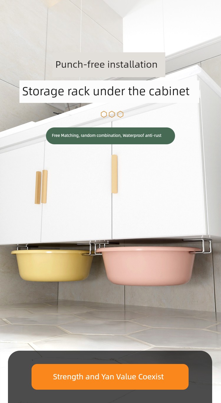 Bathroom Storage Rack Washbasin Storage Rack Bathroom Punch-Free Wall-Mounted Toilet Basin Rack Hook Handy Gadget