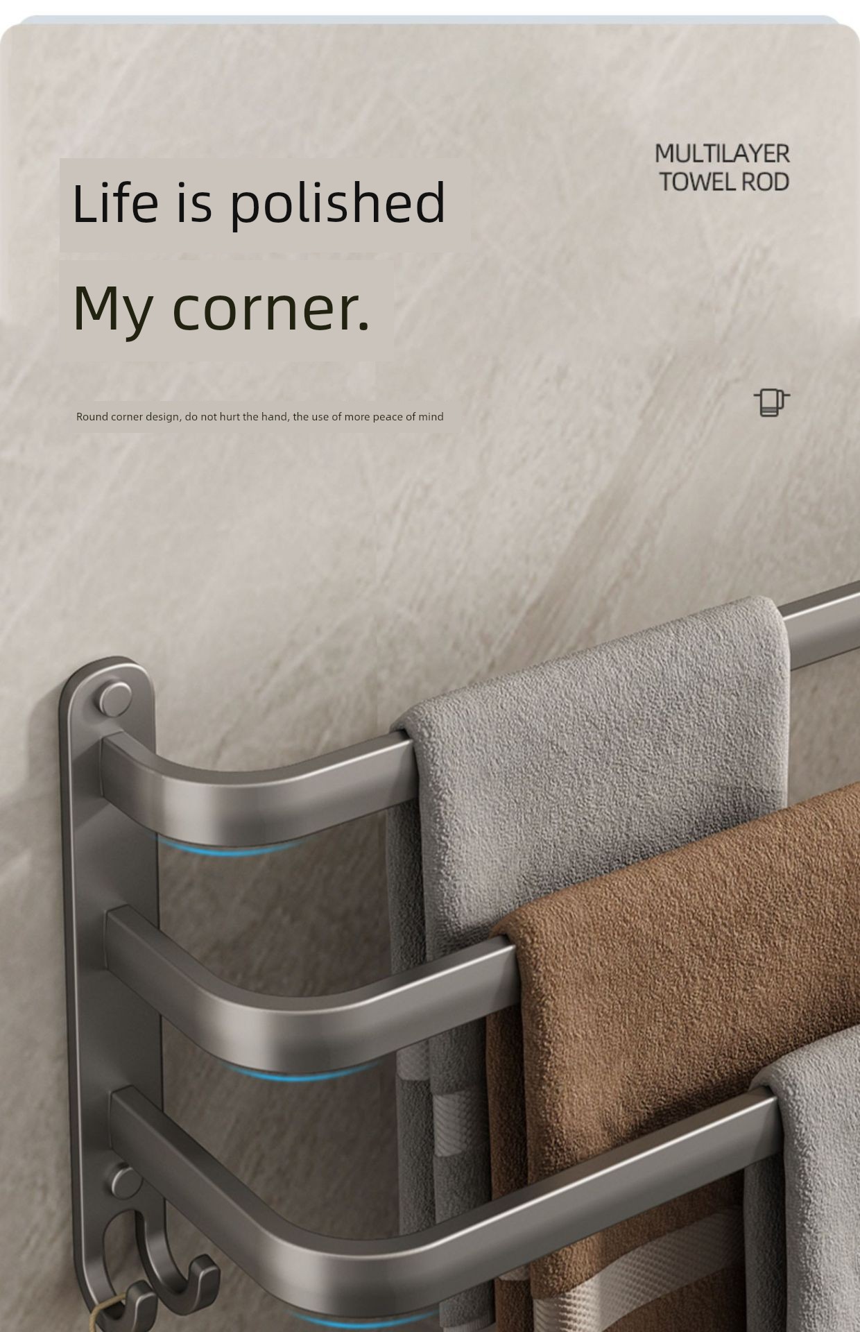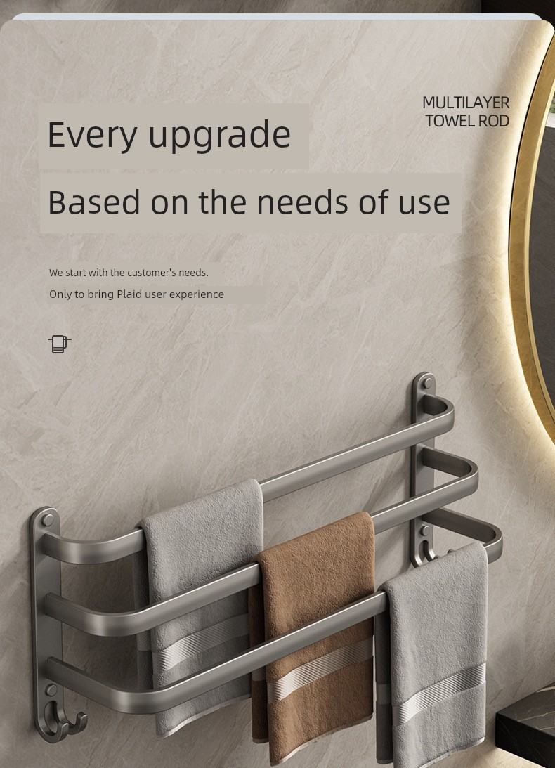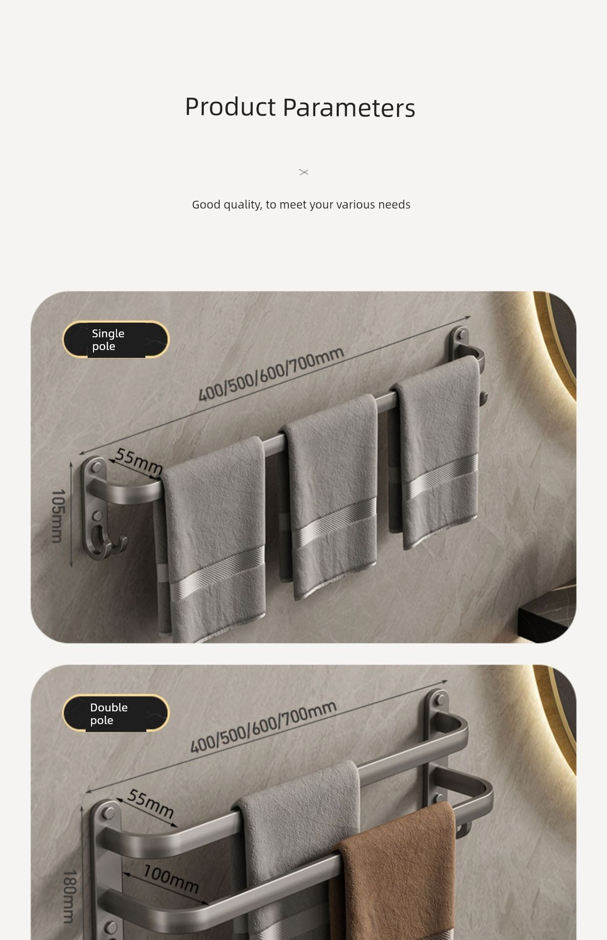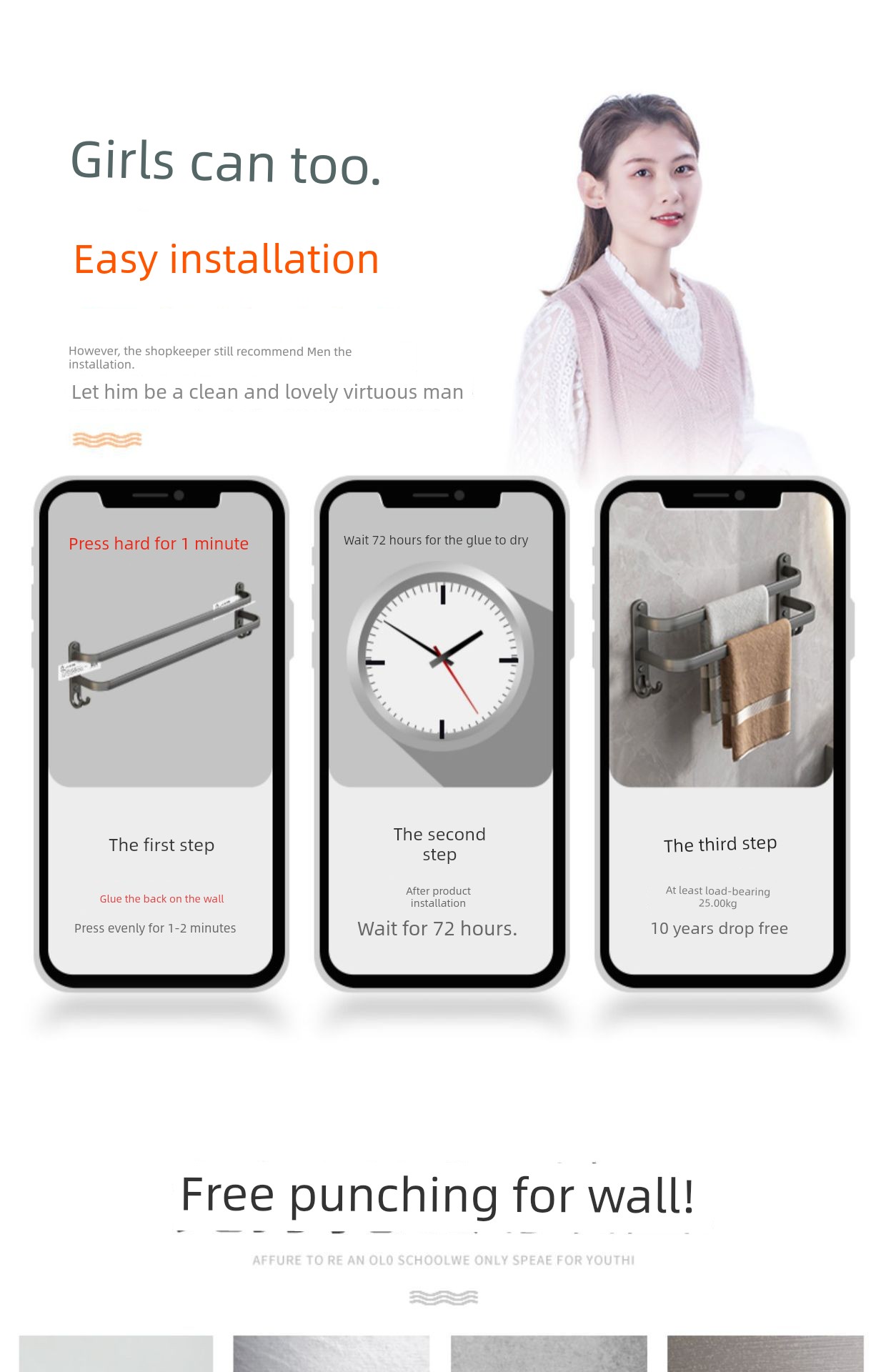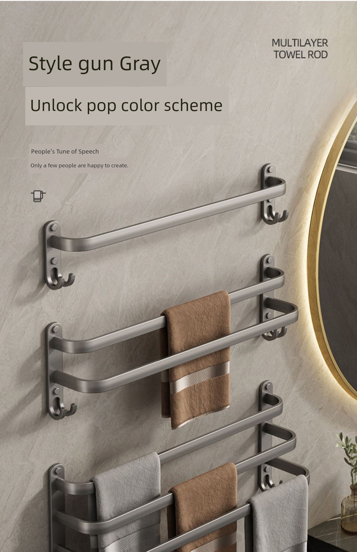 Bathroom Towel Rack Bathroom Punch-Free Wall-Mounted Shelves Towel Single Rod Toilet Storage Rack