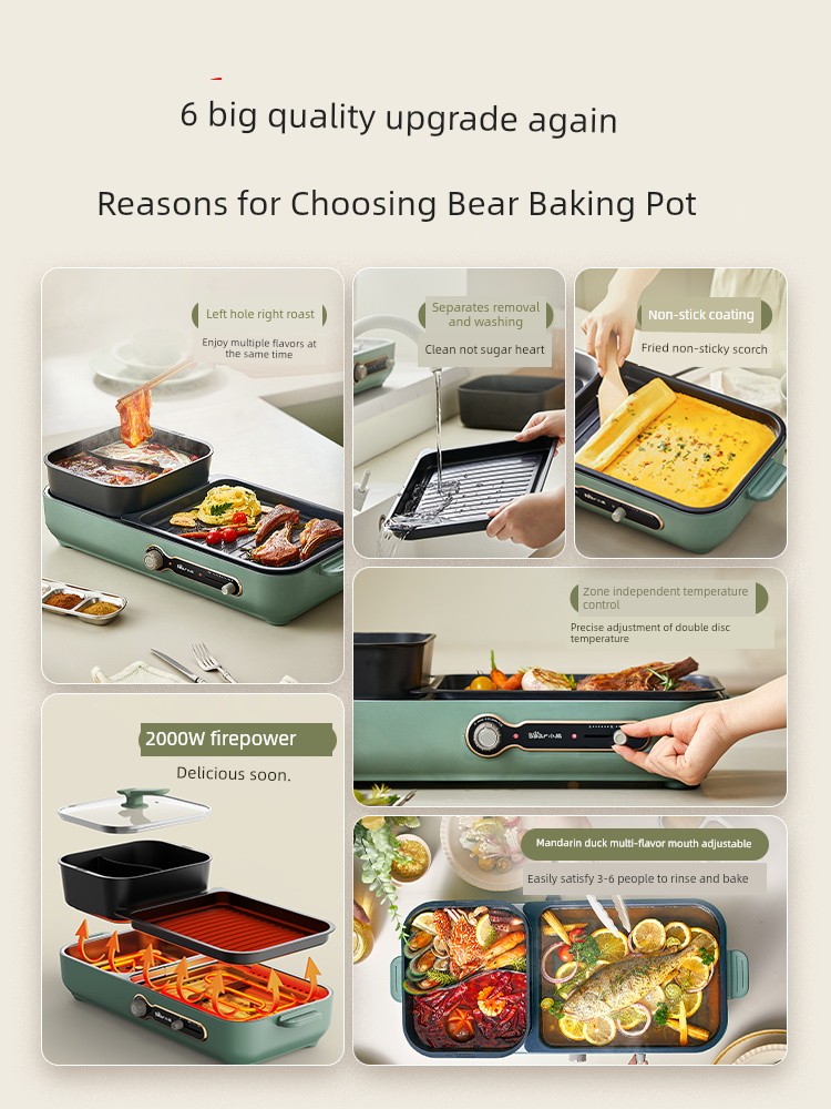 Bear For Home Smoke-Free Multifunctional Cooking Pot Electric Baking Pan