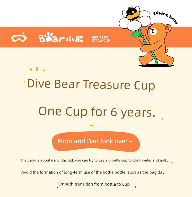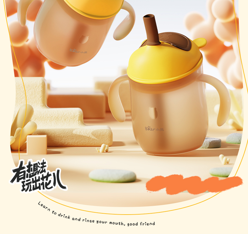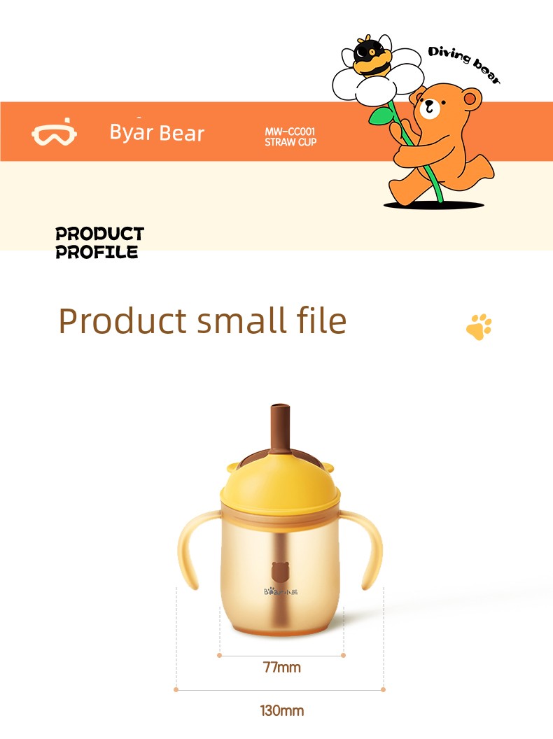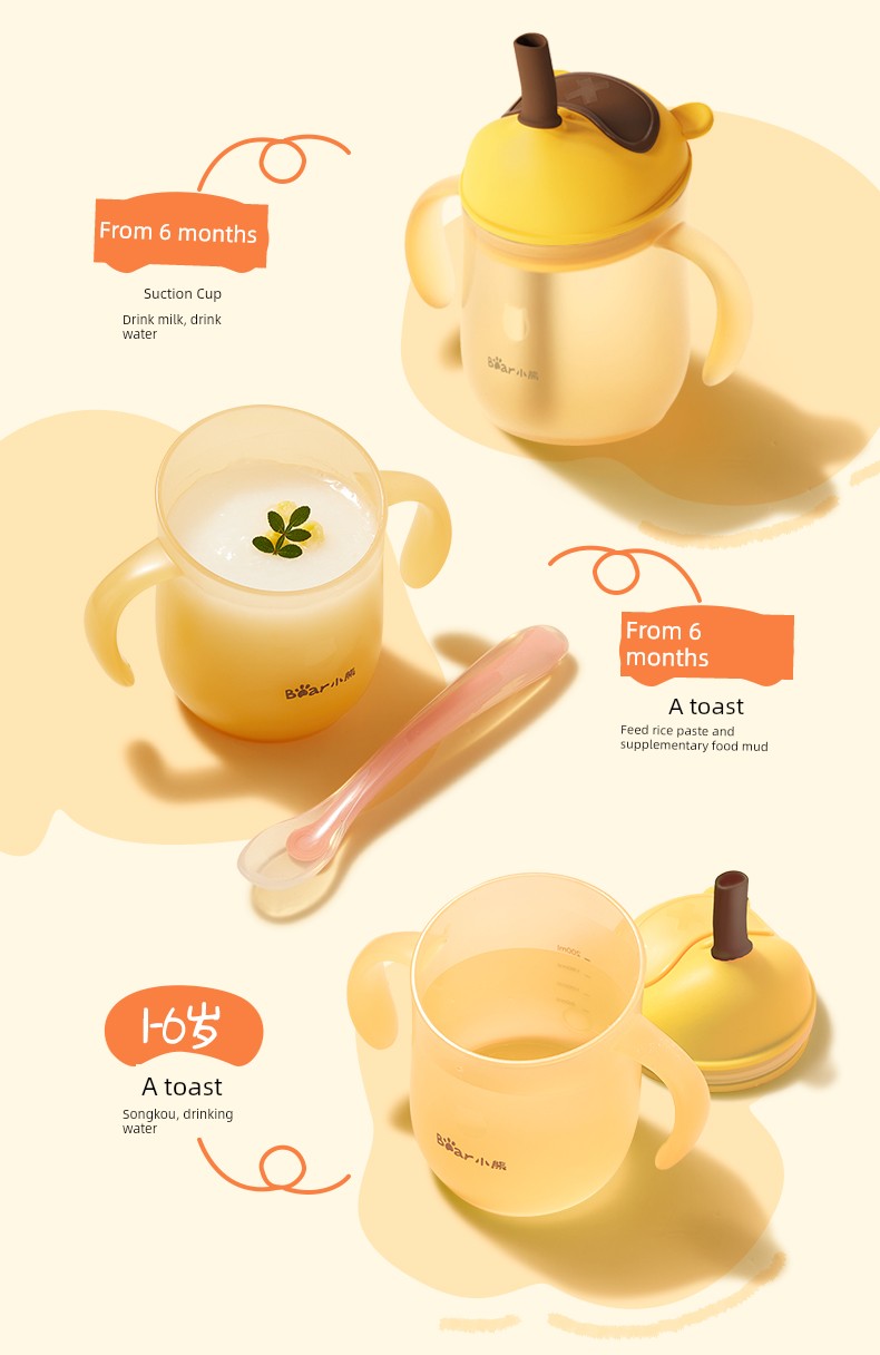 Bear No-Spill Cup Small-Month Dedicated Baby Straw Cup Milk Cup Drinking Water Mouthwash Leakproof and Choke Proof Children's Cups