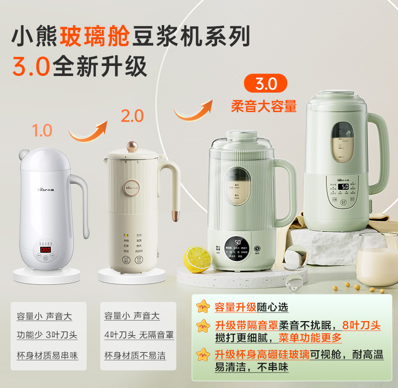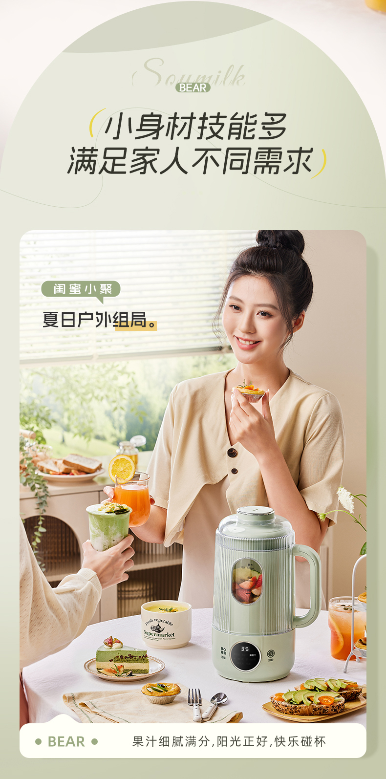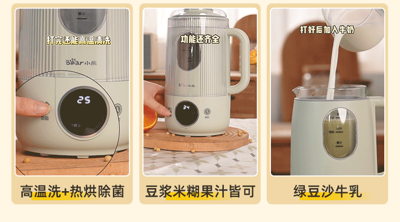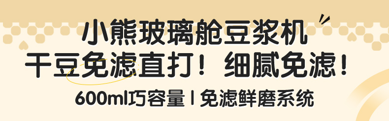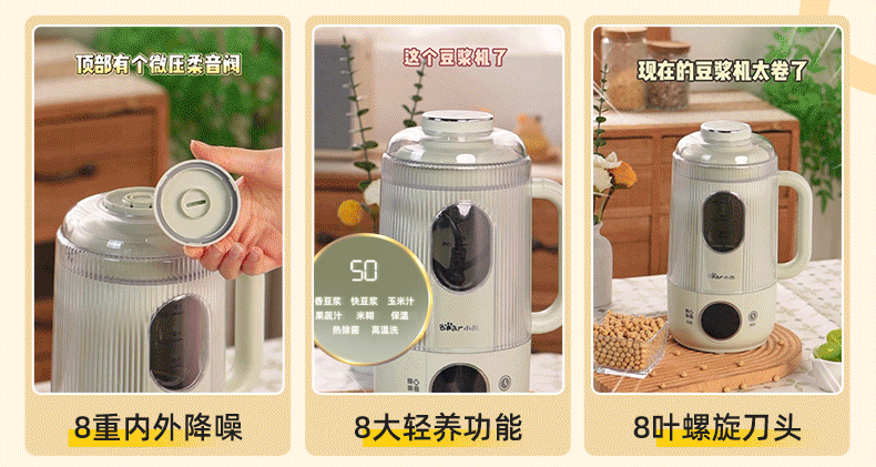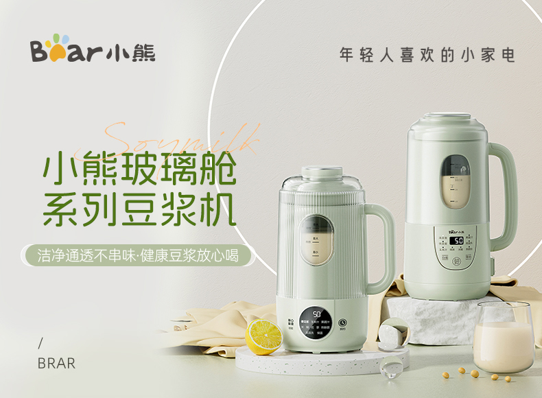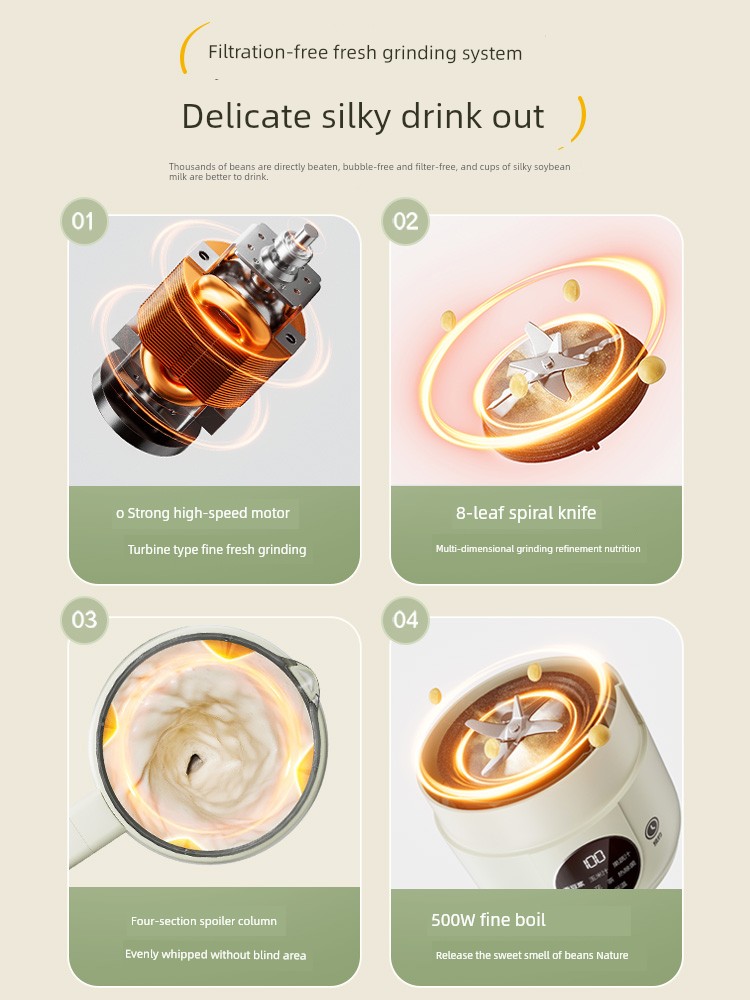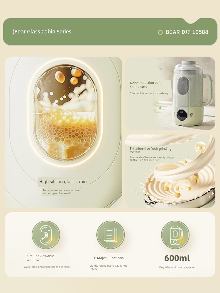 Bear Soybean Milk Machine For Home Automatic Multi-Functional Rice Cereal Mini Glass Tank for Electronic Cigarette Wall-Breaking Filter-Free Cooking Machine