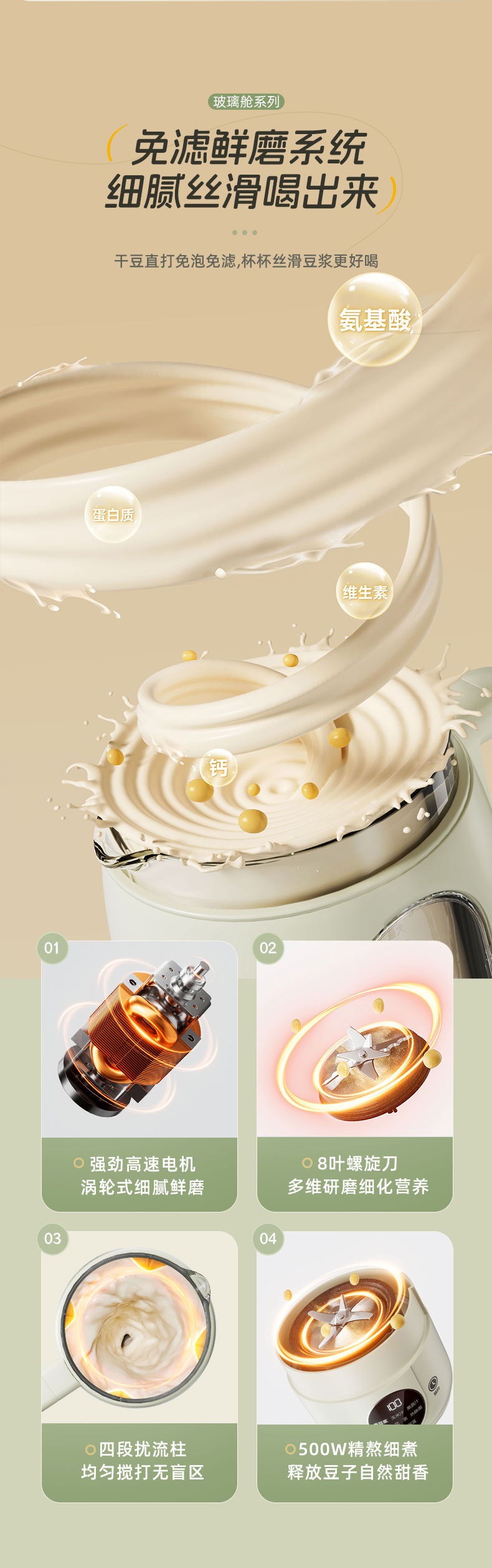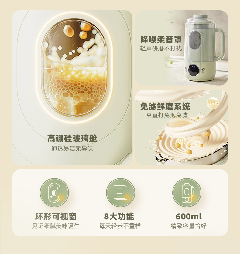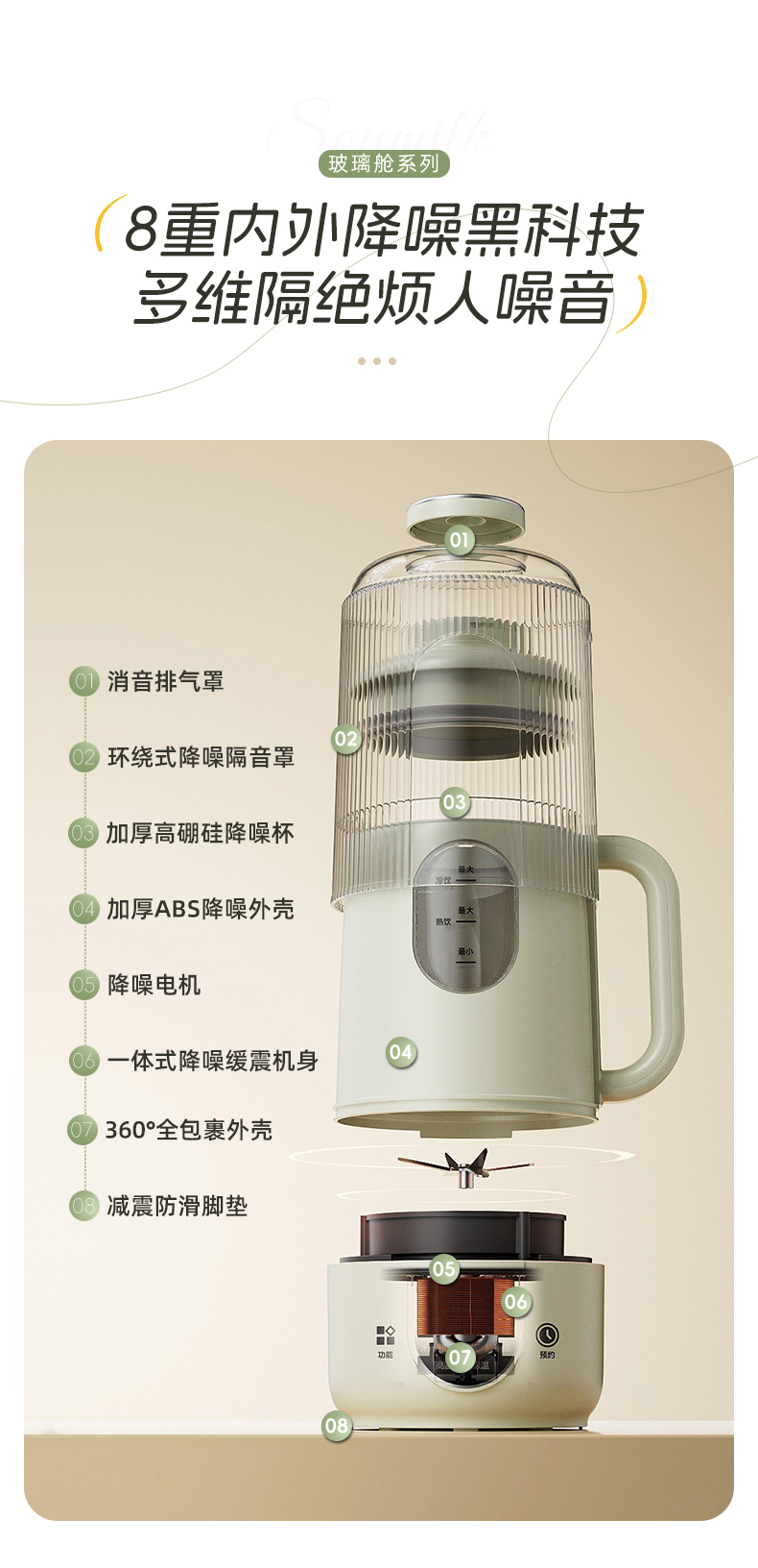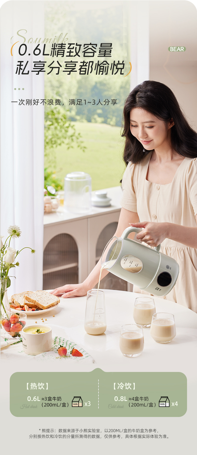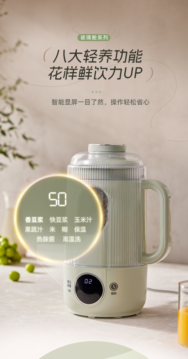 Bear Soybean Milk Machine For Home Automatic Multi-Functional Rice Cereal Mini Glass Tank for Electronic Cigarette Wall-Breaking Filter-Free Cooking Machine