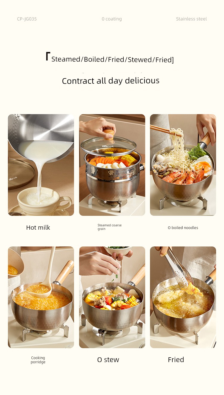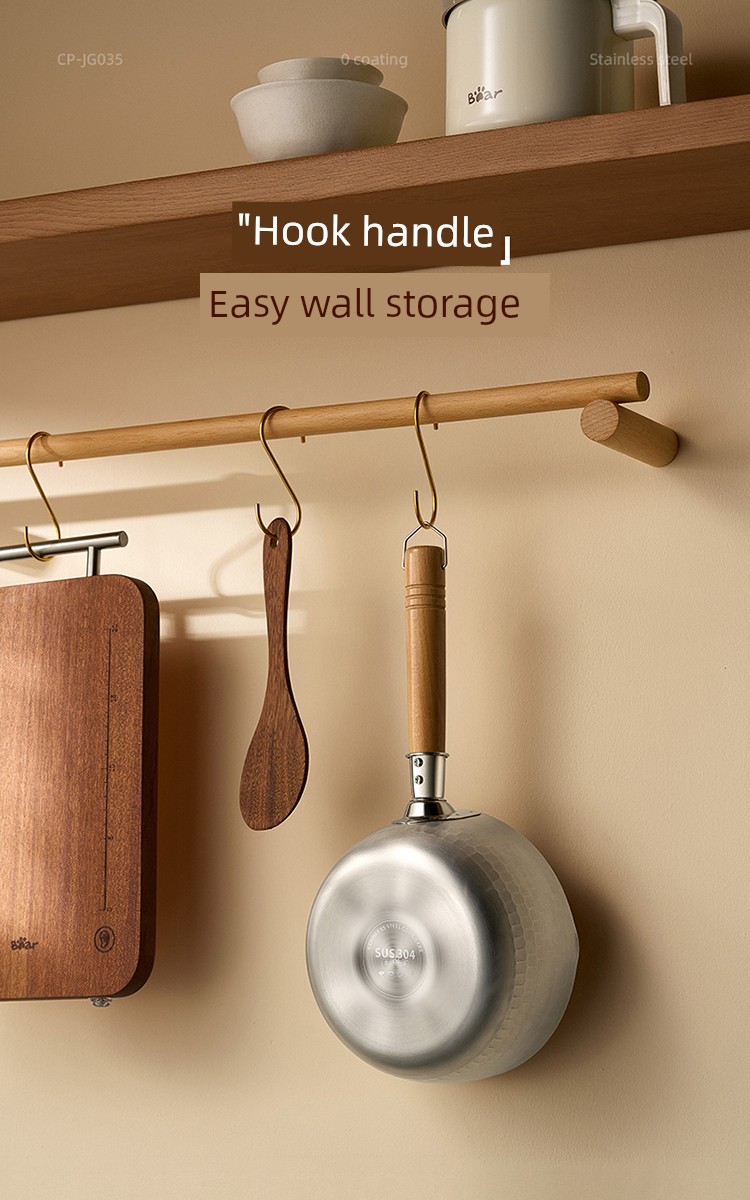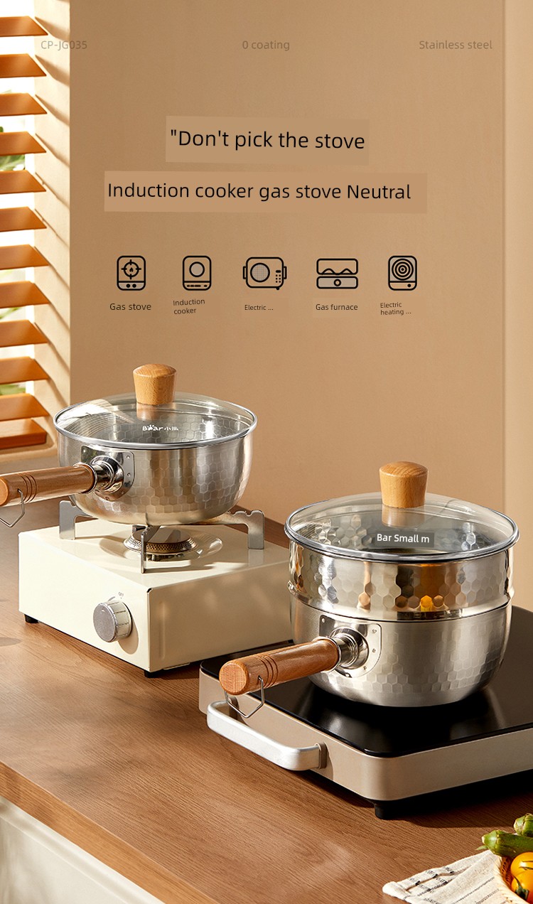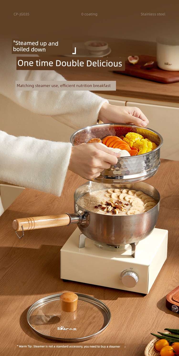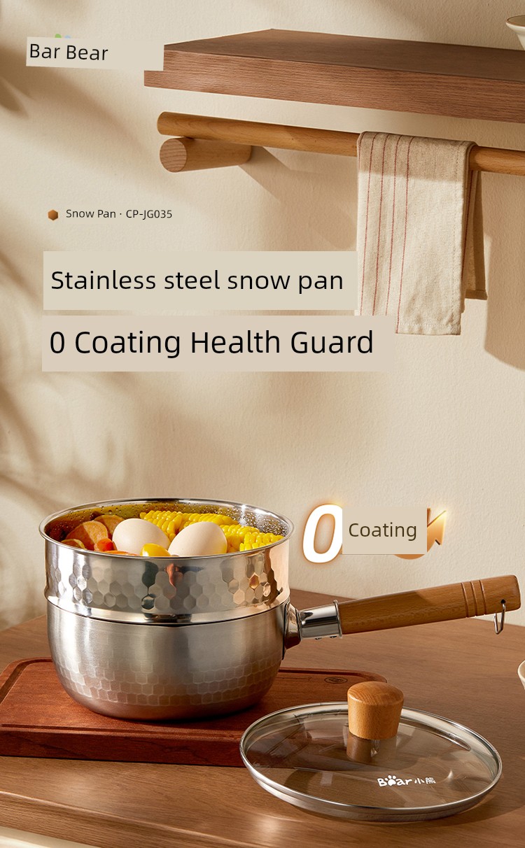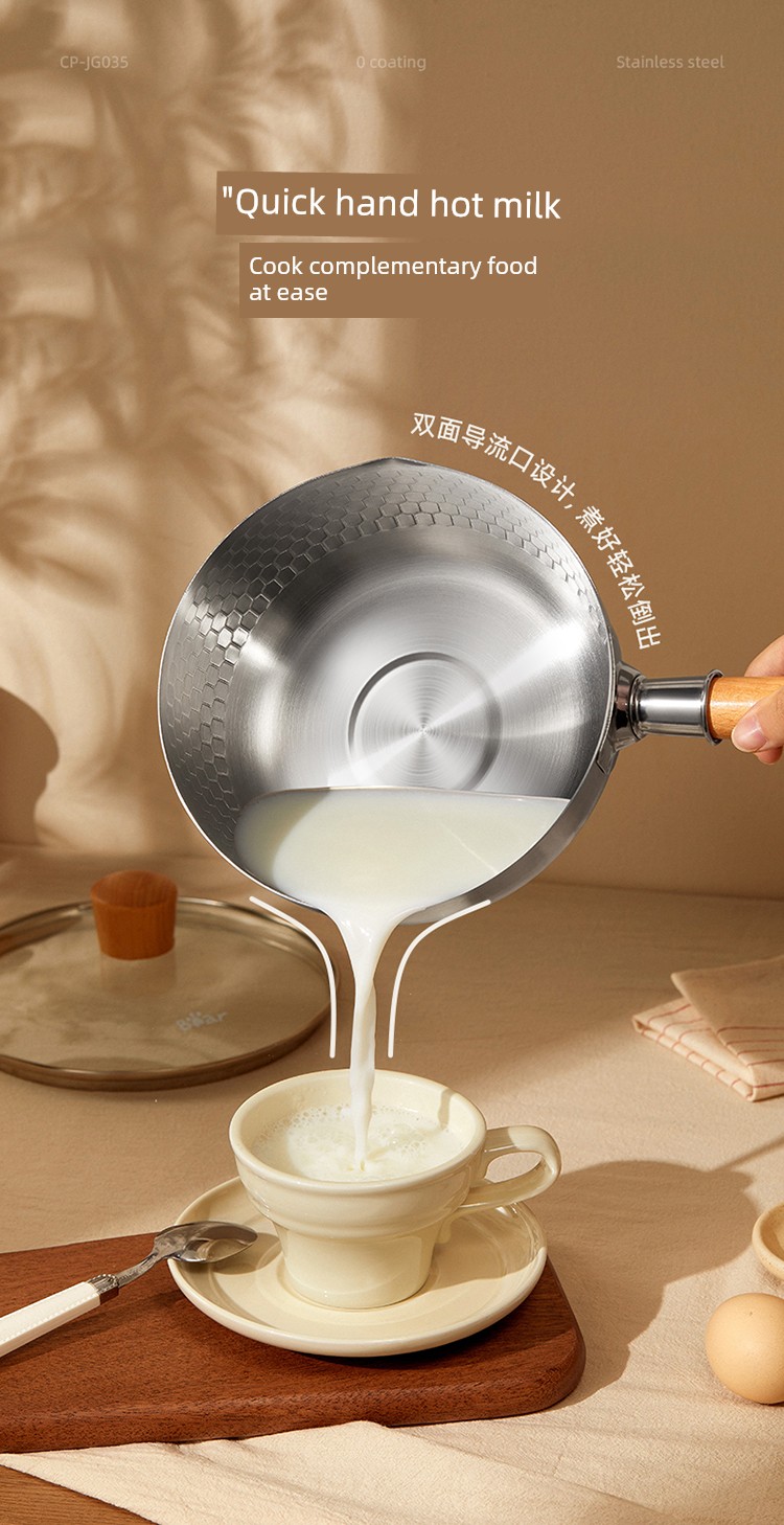 Bear Yukihira Pan Milk Pot Stainless Steel Small Pot Cooking Noodle Pot Baby Food Pot Hot Milk Pan Milk Pot Instant Noodle Pot Induction Cooker