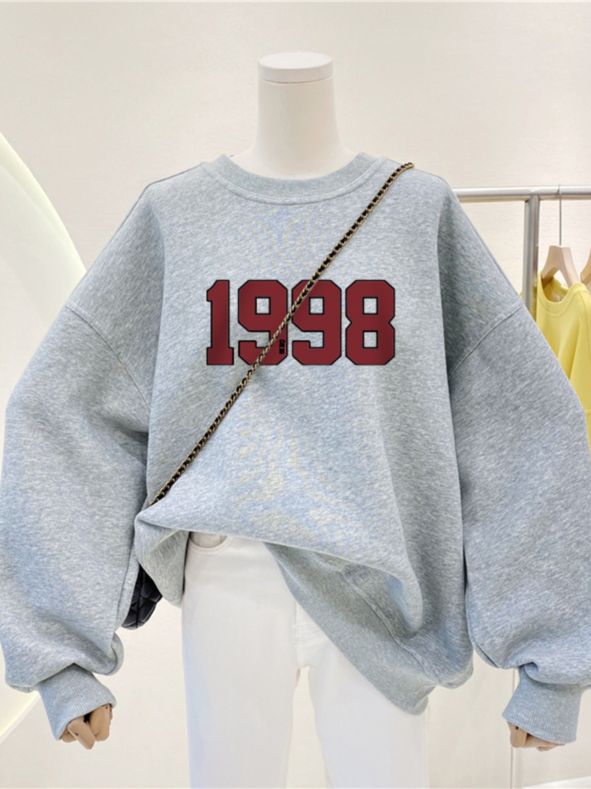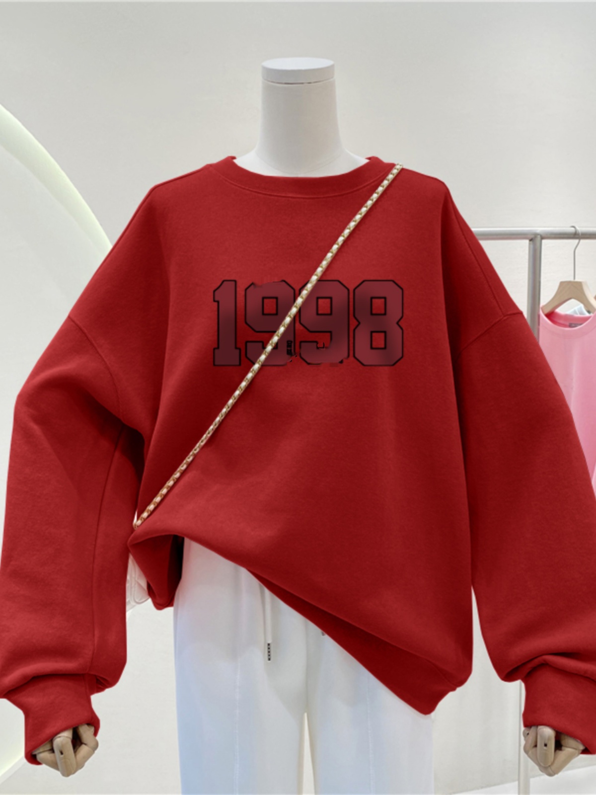 Black American Retro round Neck Letter Print Sweatshirt Female 2025 New Arrival Fall and Winter Velvet Padded plus Size Chubby Girl Jacket Tide