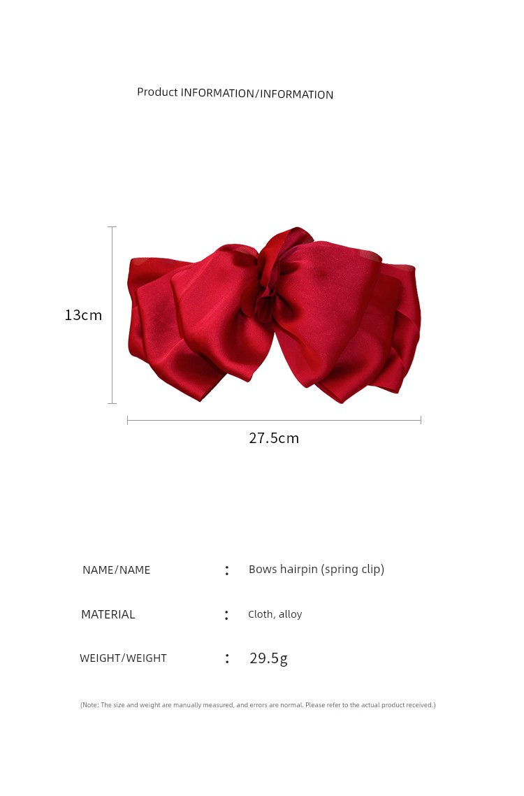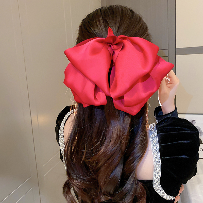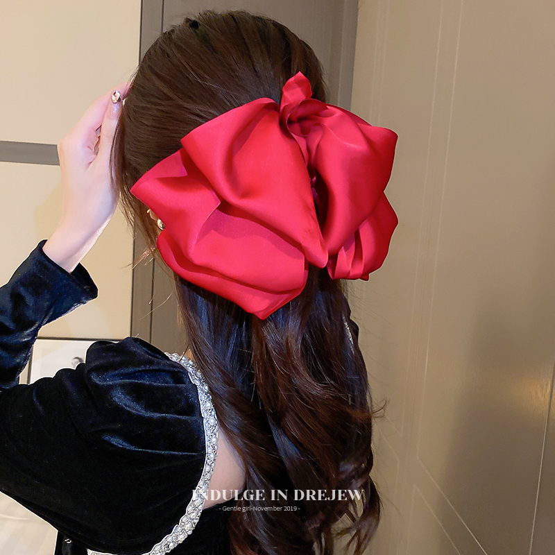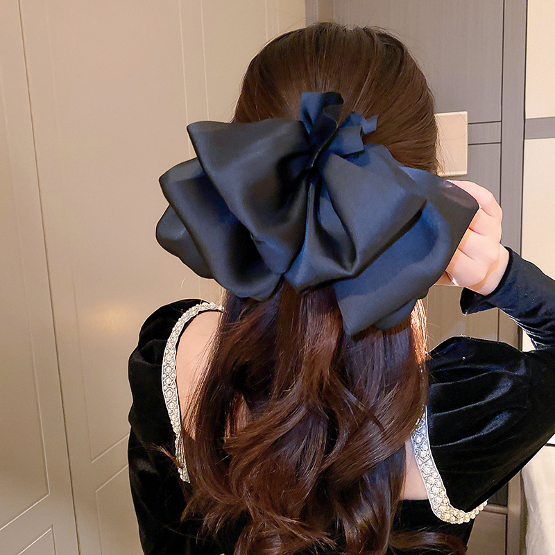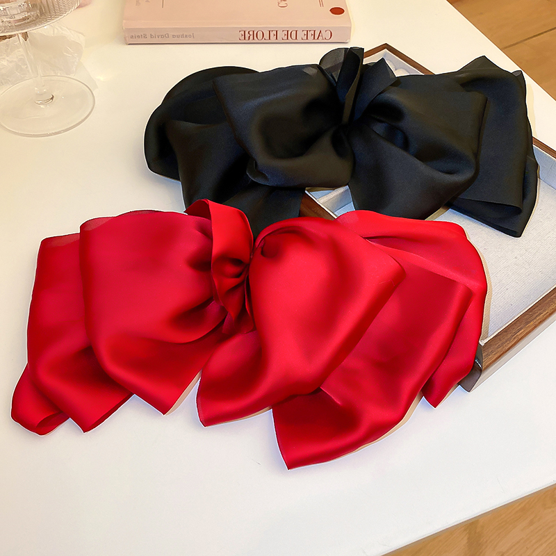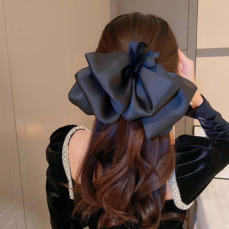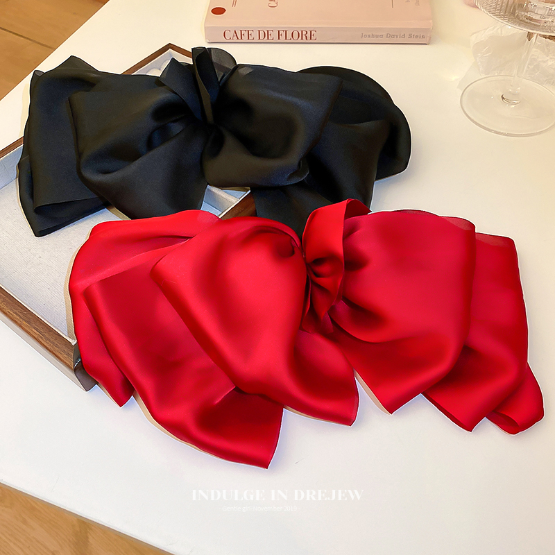 Black Bow Headdress Barrettes Female Summer Back Head Fancy Head Clip Card Red French Princess Head Clip