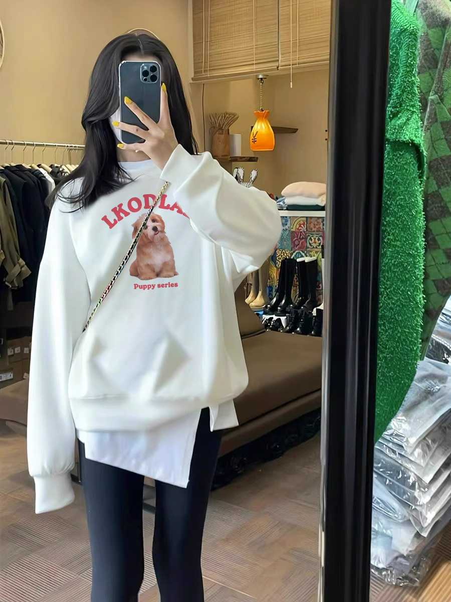 Black Crew Neck Sweater Coat Women 2025 Early Autumn New Loose Slimming Long Sleeve Top Women Fancy Super Nice