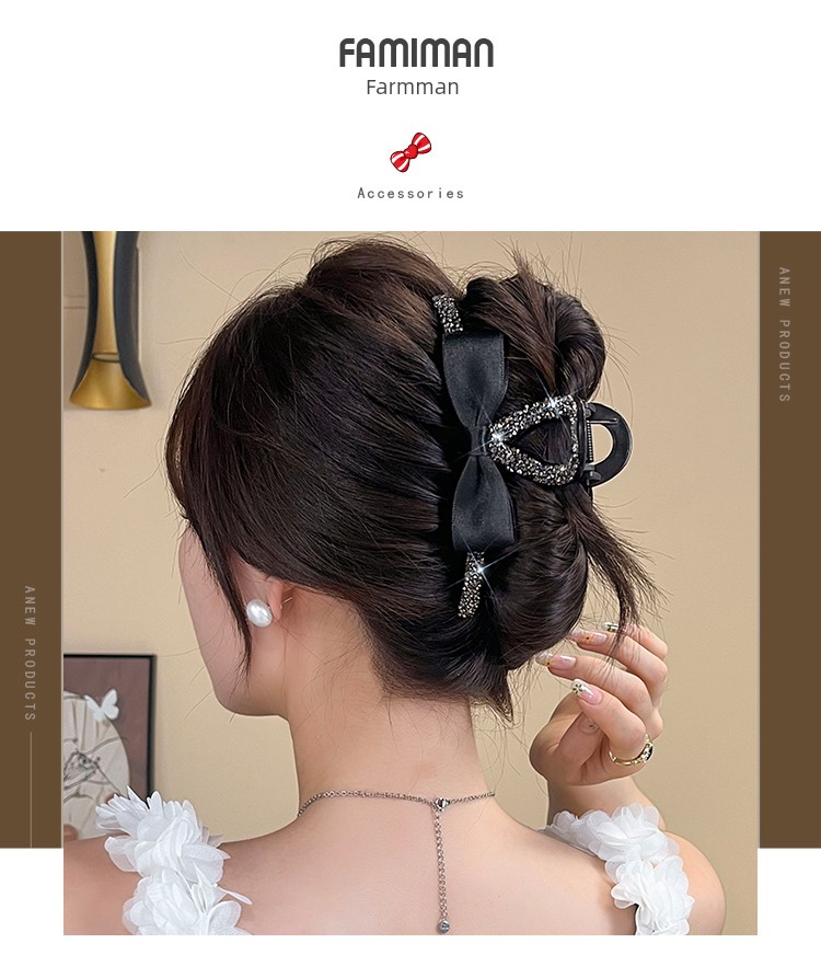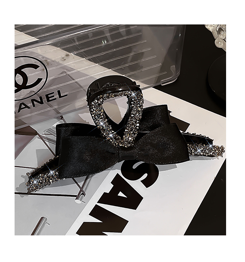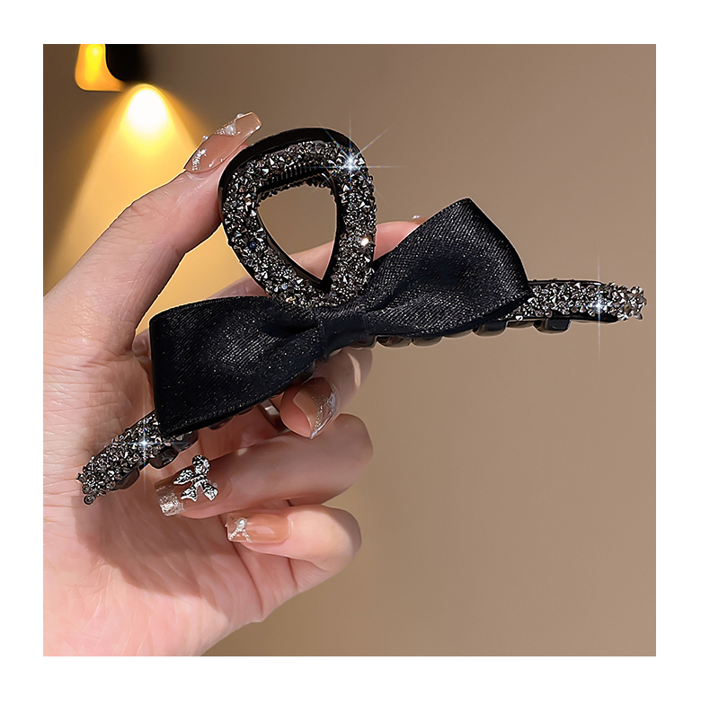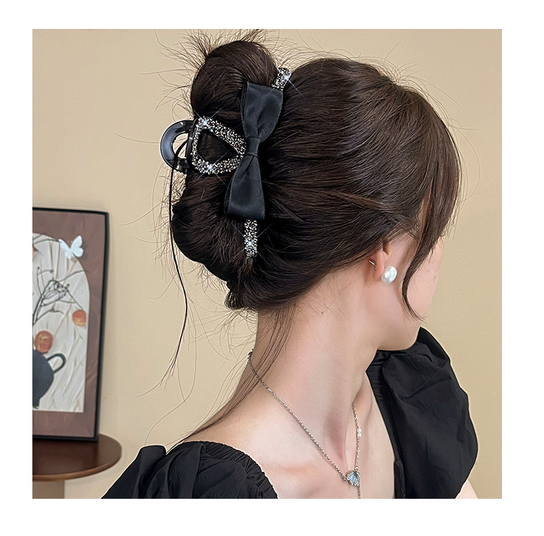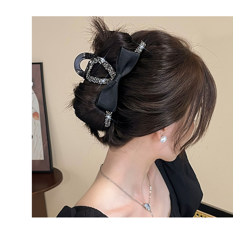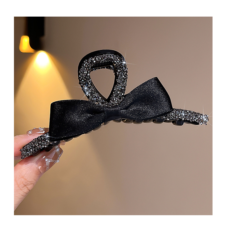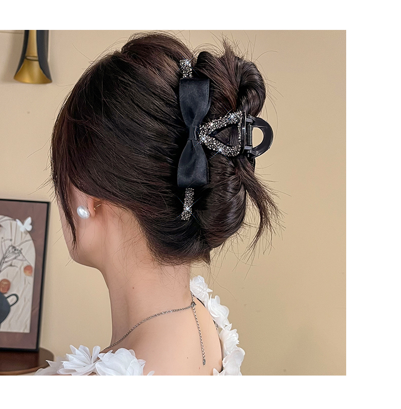 Black Crystal Bows Large Grip Female Fancy Back Head Hair Clip Classic Style Shark Clip Hairware