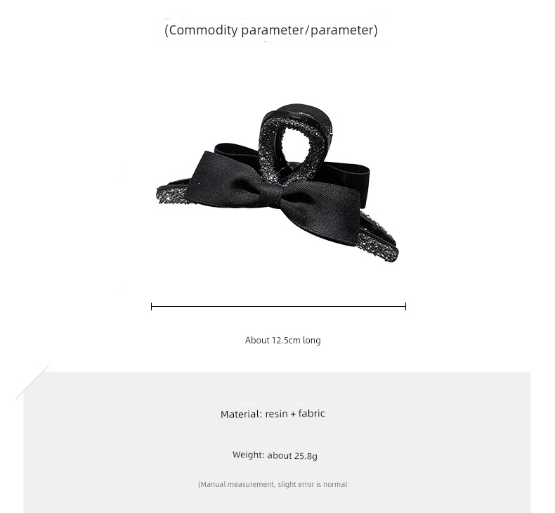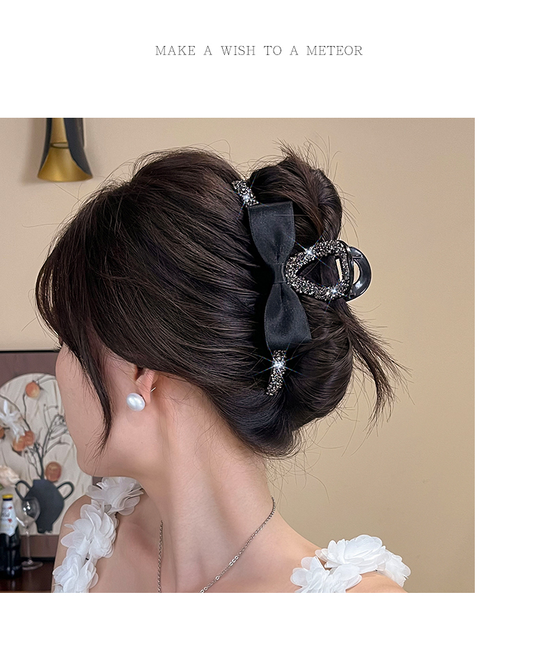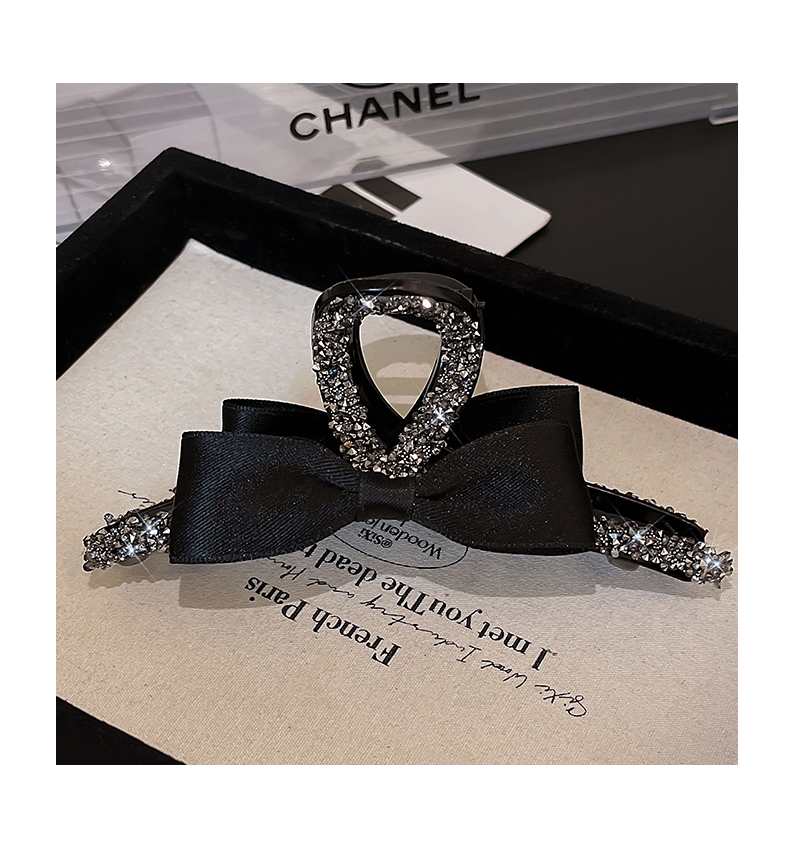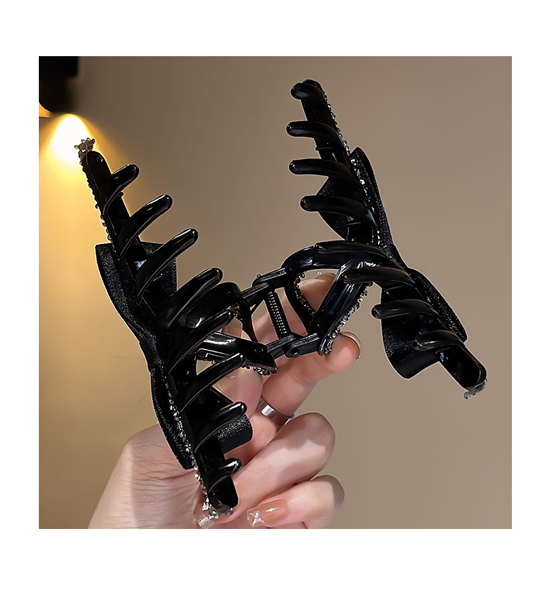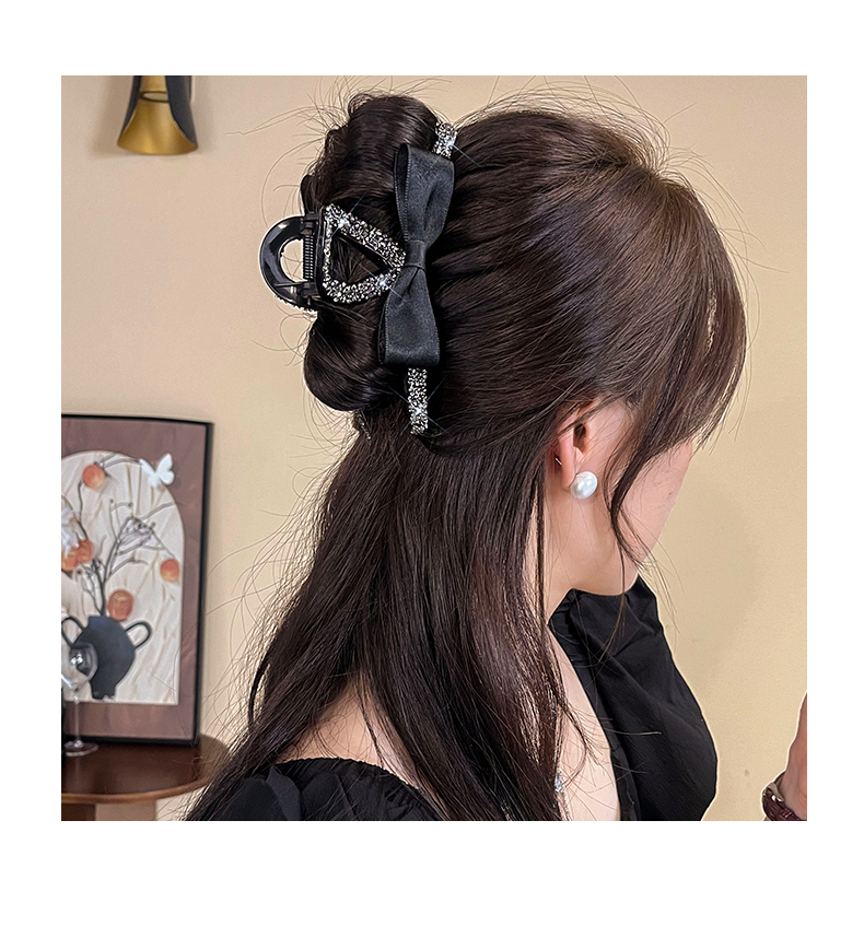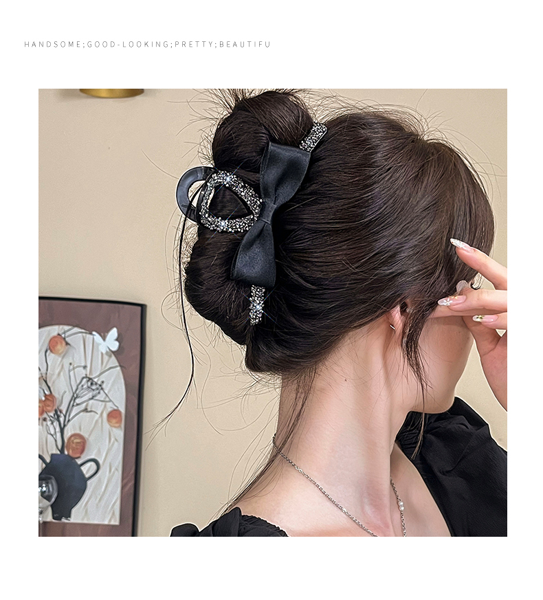 Black Crystal Bows Large Grip Female Fancy Back Head Hair Clip Classic Style Shark Clip Hairware