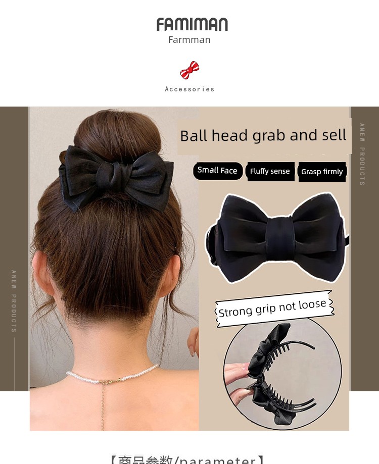 Black Fancy Bows Bun Grip Female Updo Gadget Hair Clip Back Head Internet Celebrity Hair Clip Headdress