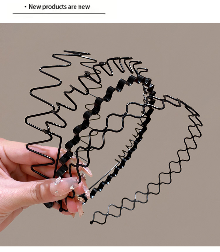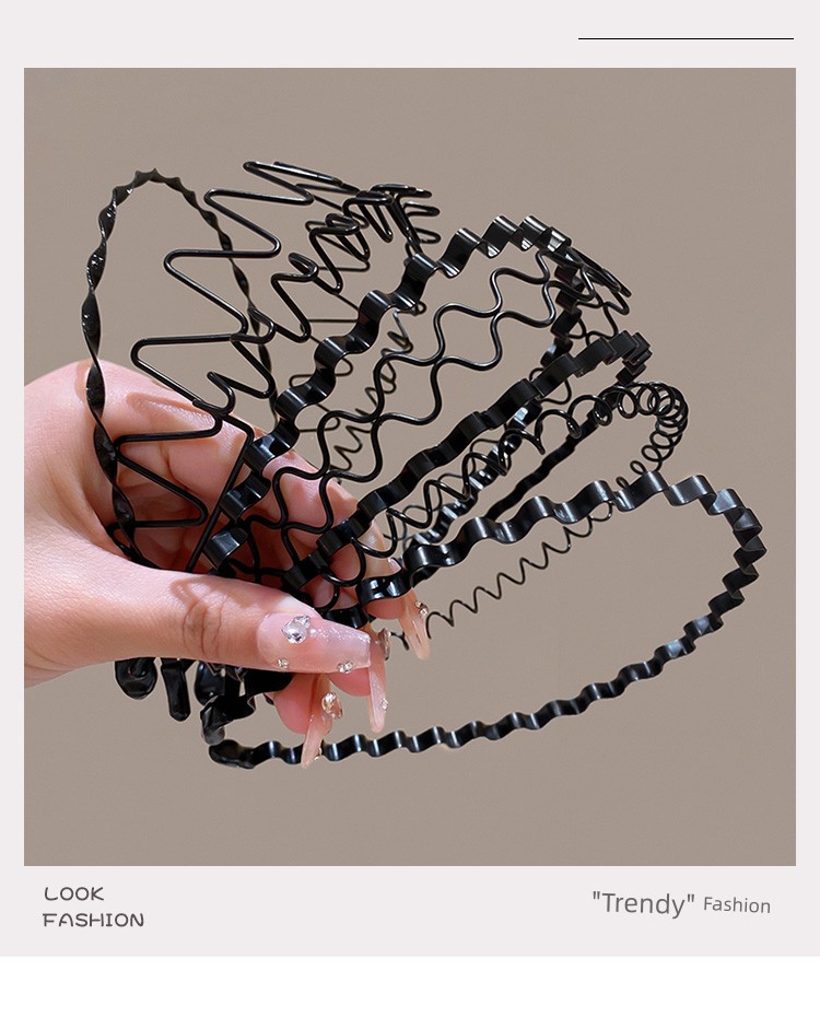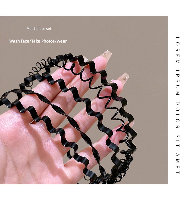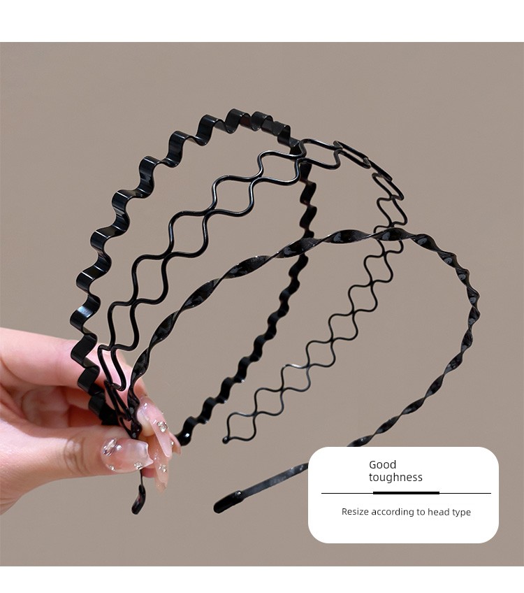 Black Hair Hoop Invisible Sports Tide Headband Wave Hairpin Female Headdress Face Wash Hair Tie Spring Long Hair Three Pieces Photo