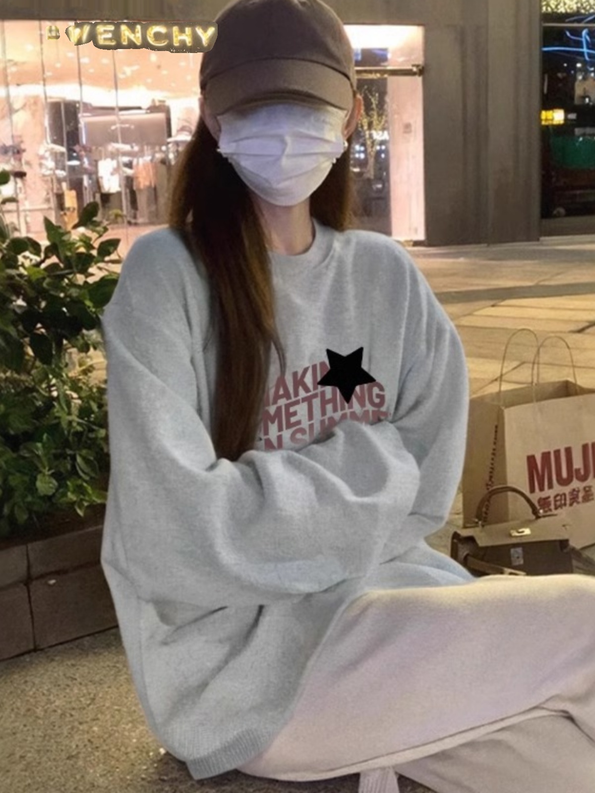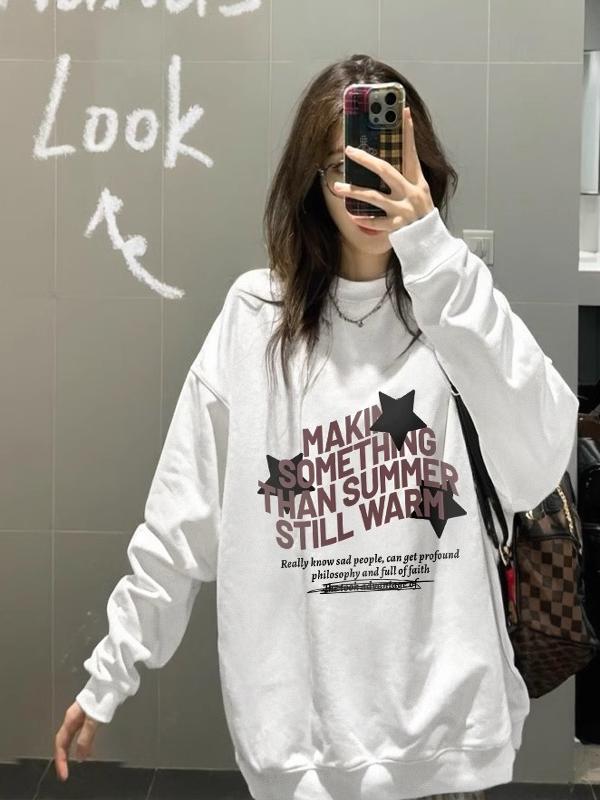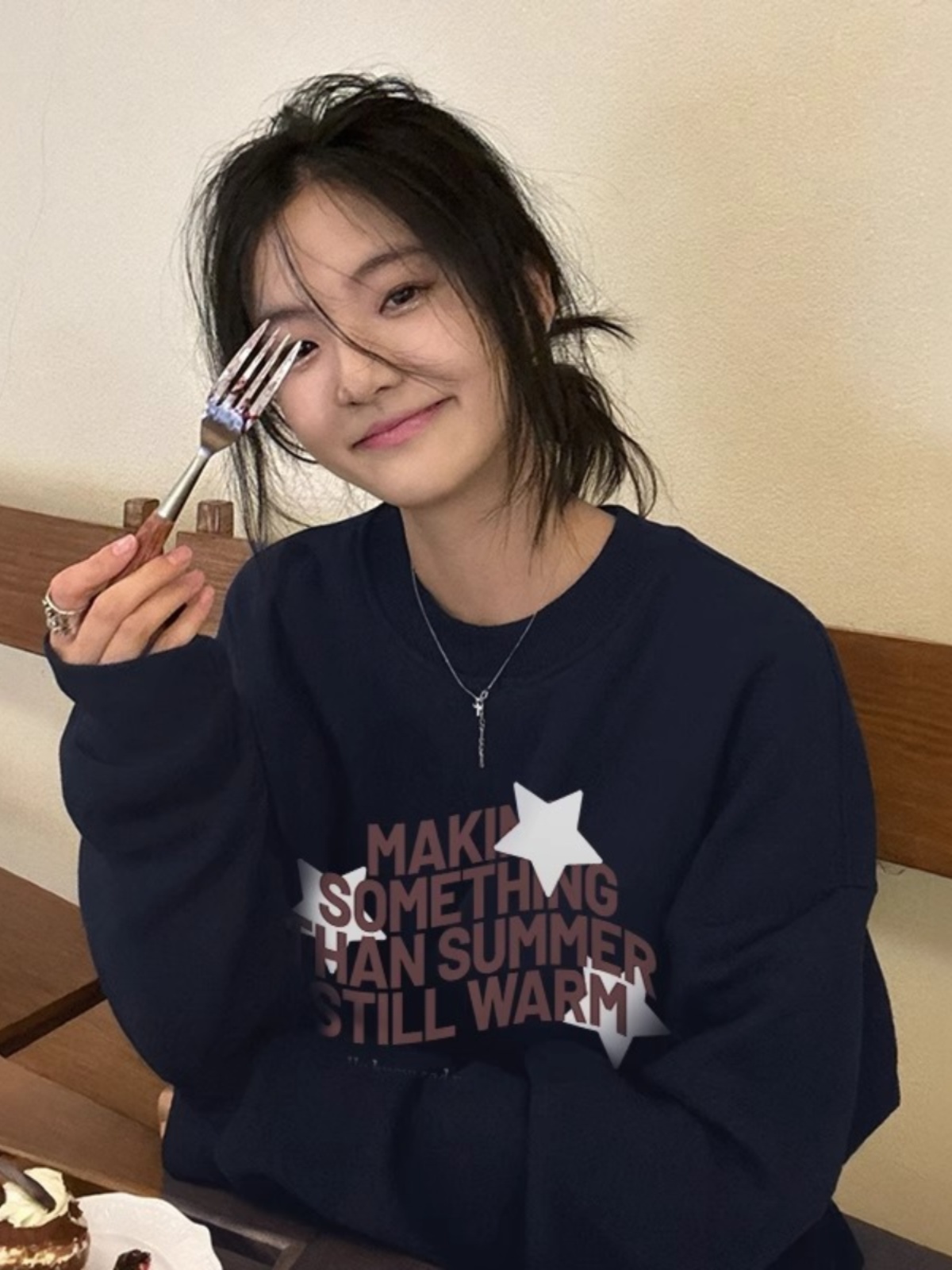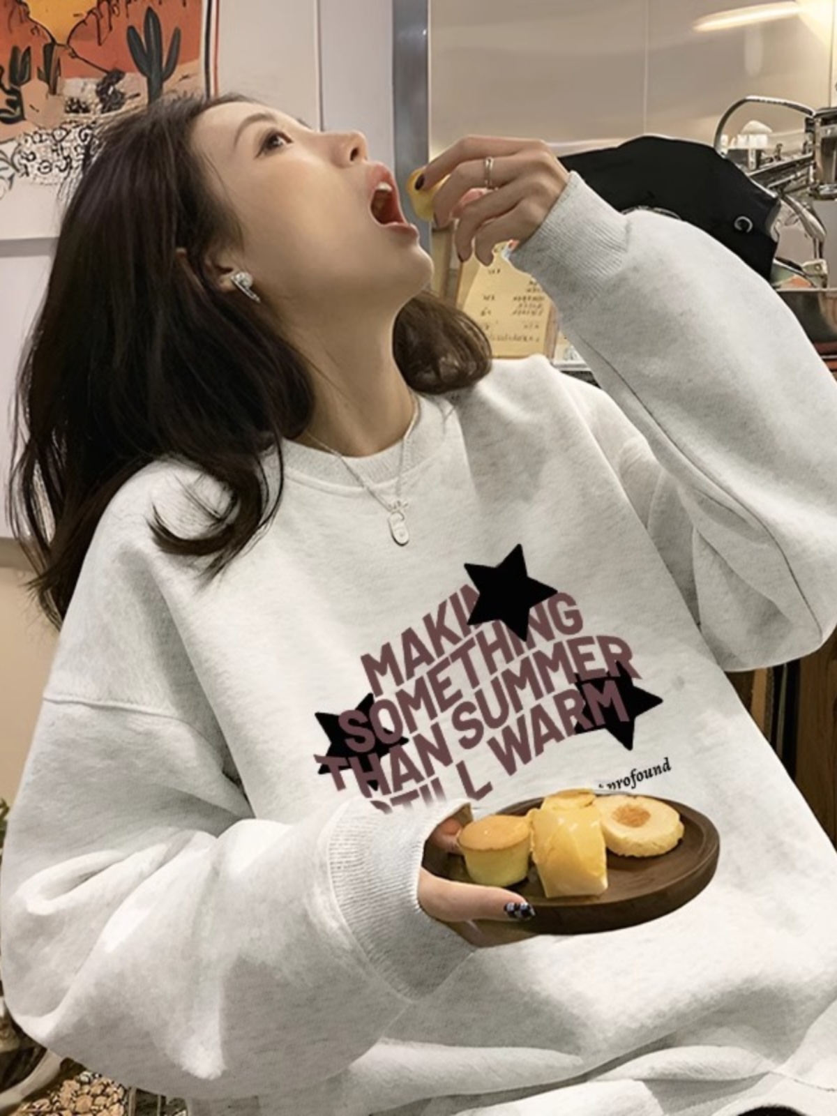 Black plus Velvet Sweatshirt round Neck Tops Women 2025 New Arrival Fall American Retro Loose Spring Thickened Long Sleeves