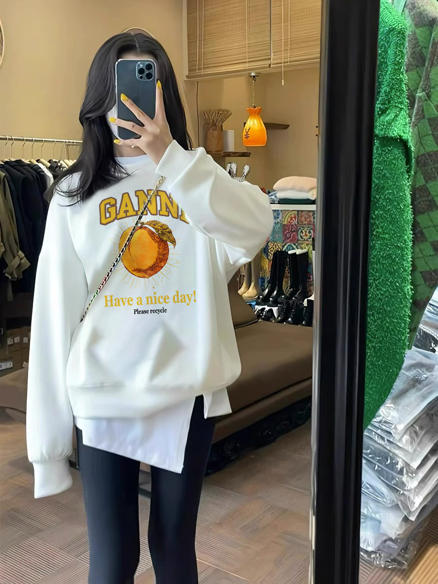Black round Neck Sweatshirt Women 2025 New Arrival Loose and Idle Oversize Spring and Autumn Thickening Fleece-lined Silver Fox Velvet Coat