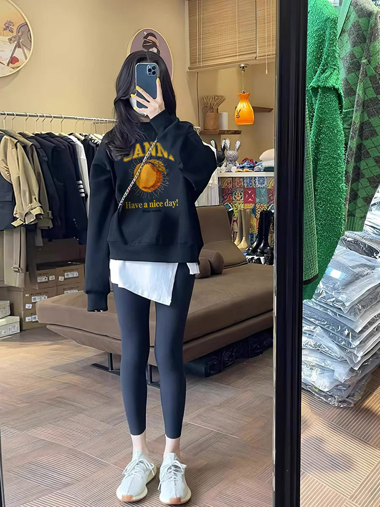 Black round Neck Sweatshirt Women 2025 New Arrival Loose and Idle Oversize Spring and Autumn Thickening Fleece-lined Silver Fox Velvet Coat