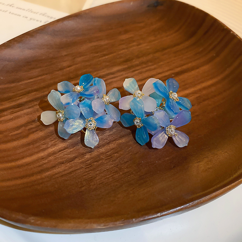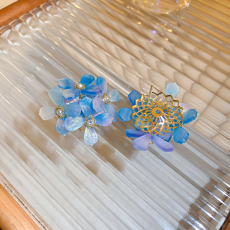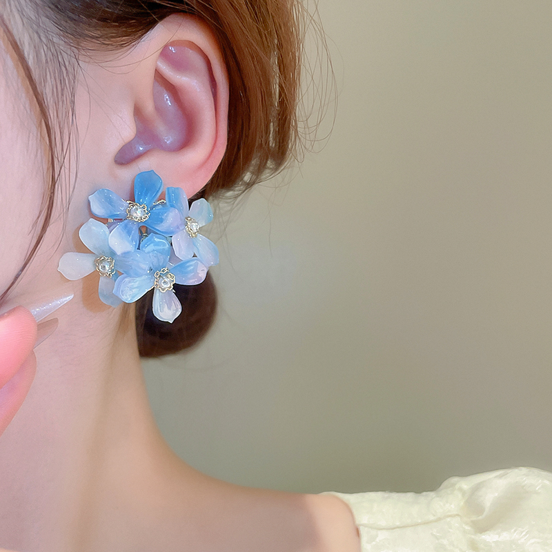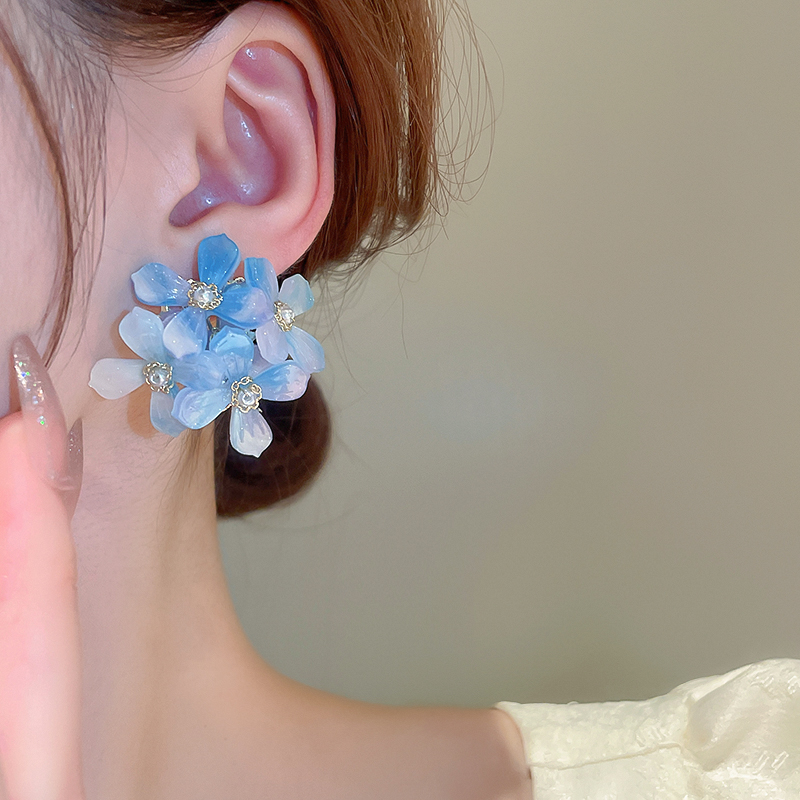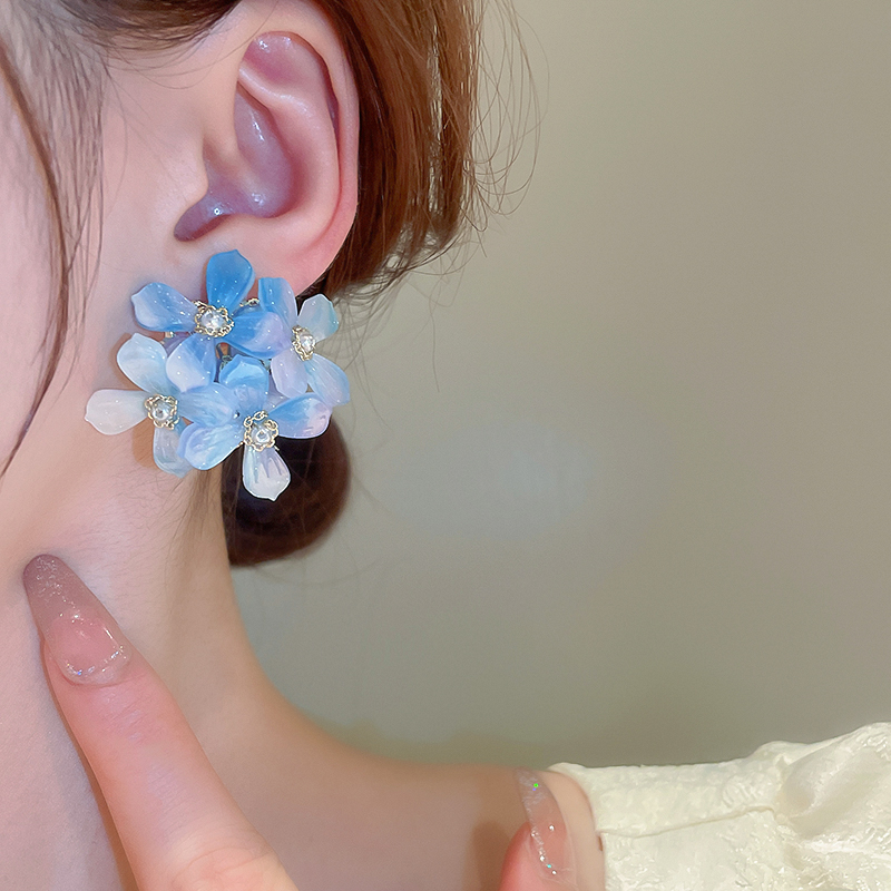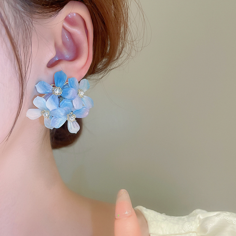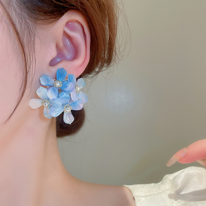 Blue Flower Big Ear Stud New Arrival 2025 Best Selling Temperament Exaggerating Earrings Niche Design Unique Earrings for Women