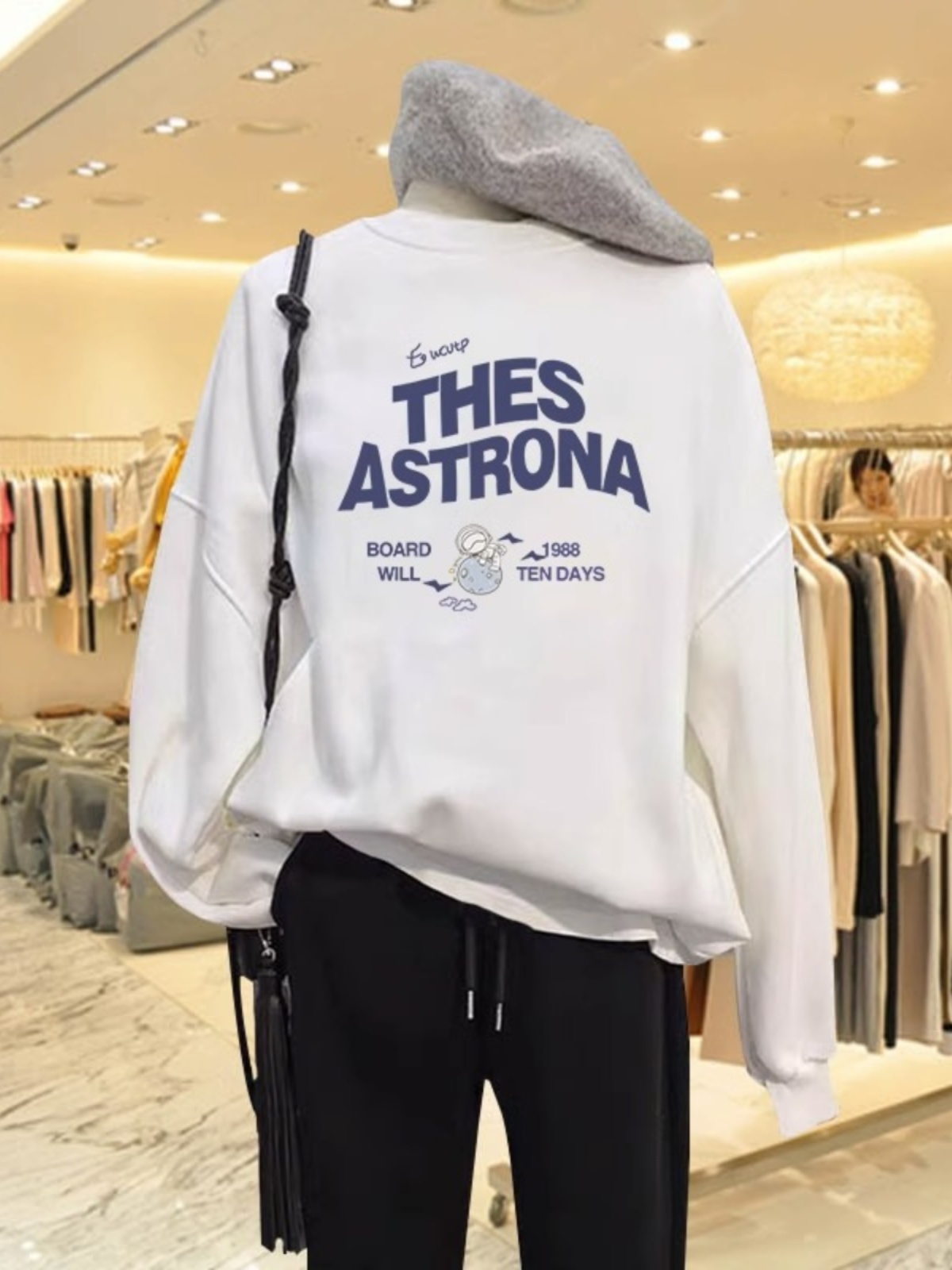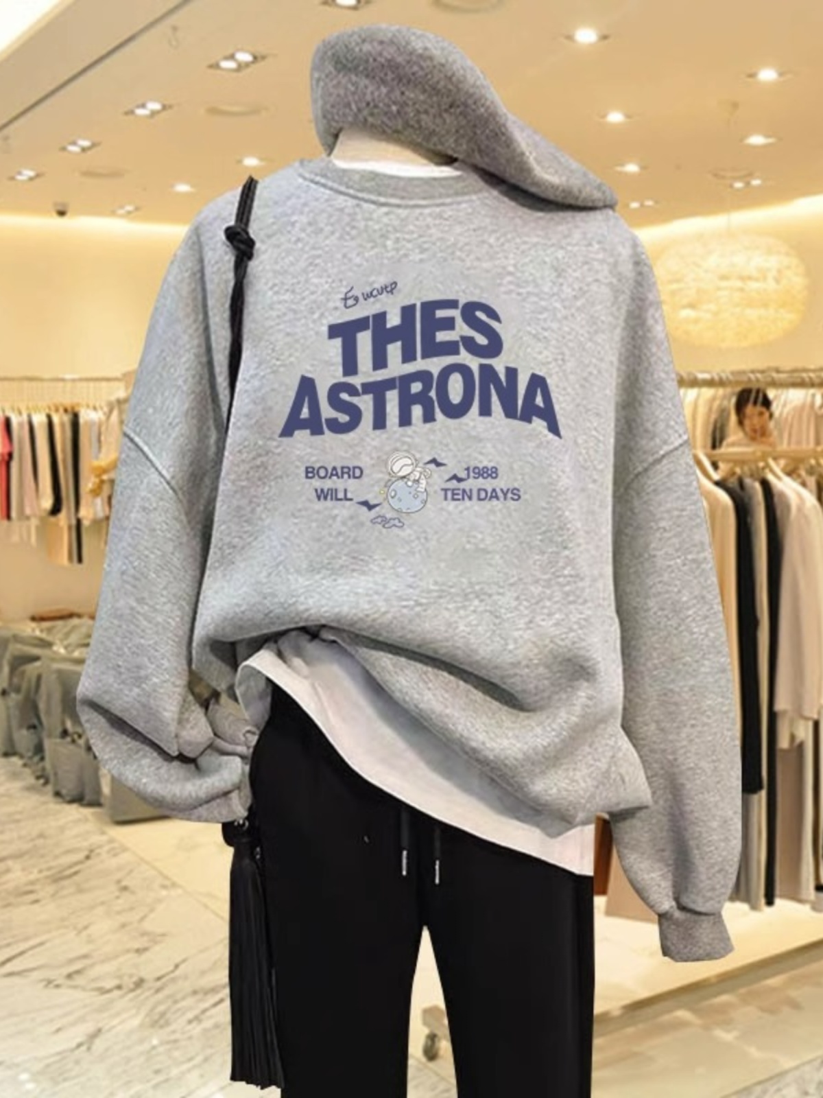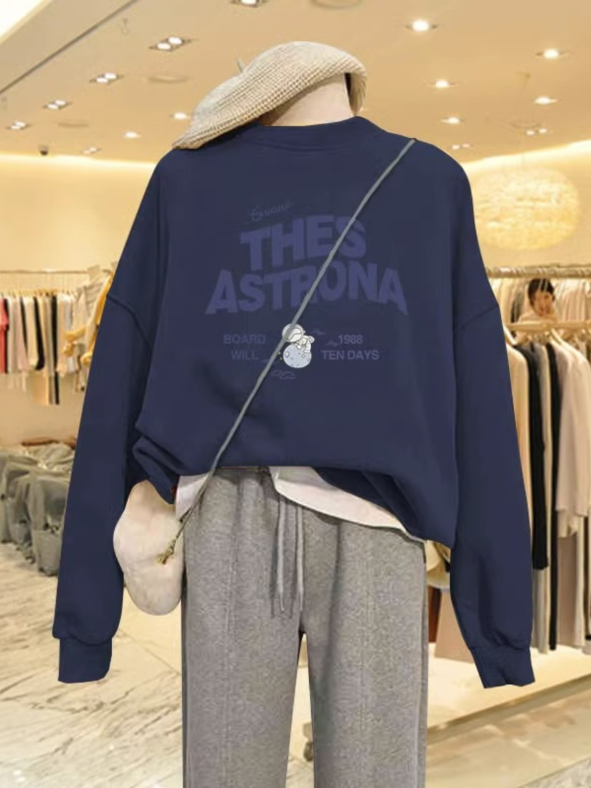 Blue round Neck Hoodless Sweater Female Spring and Autumn Thin Stylish Niche Style Unique Chic Small Man Pullover Tops