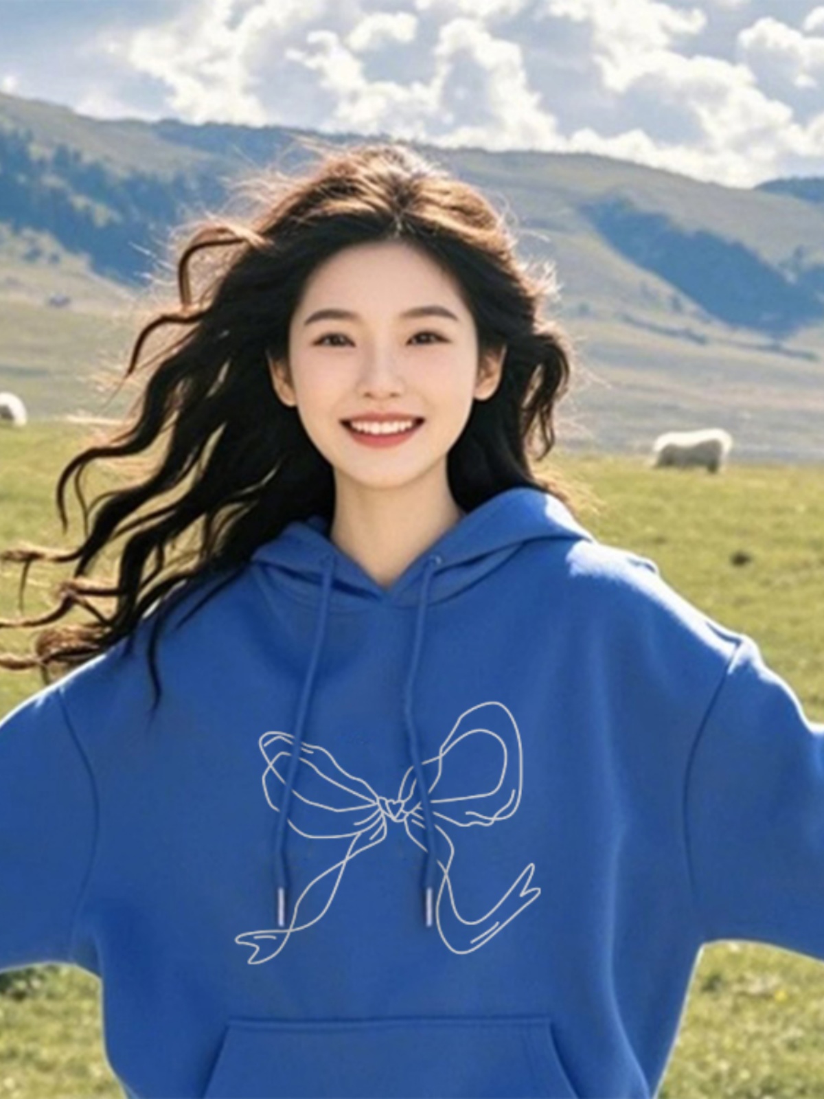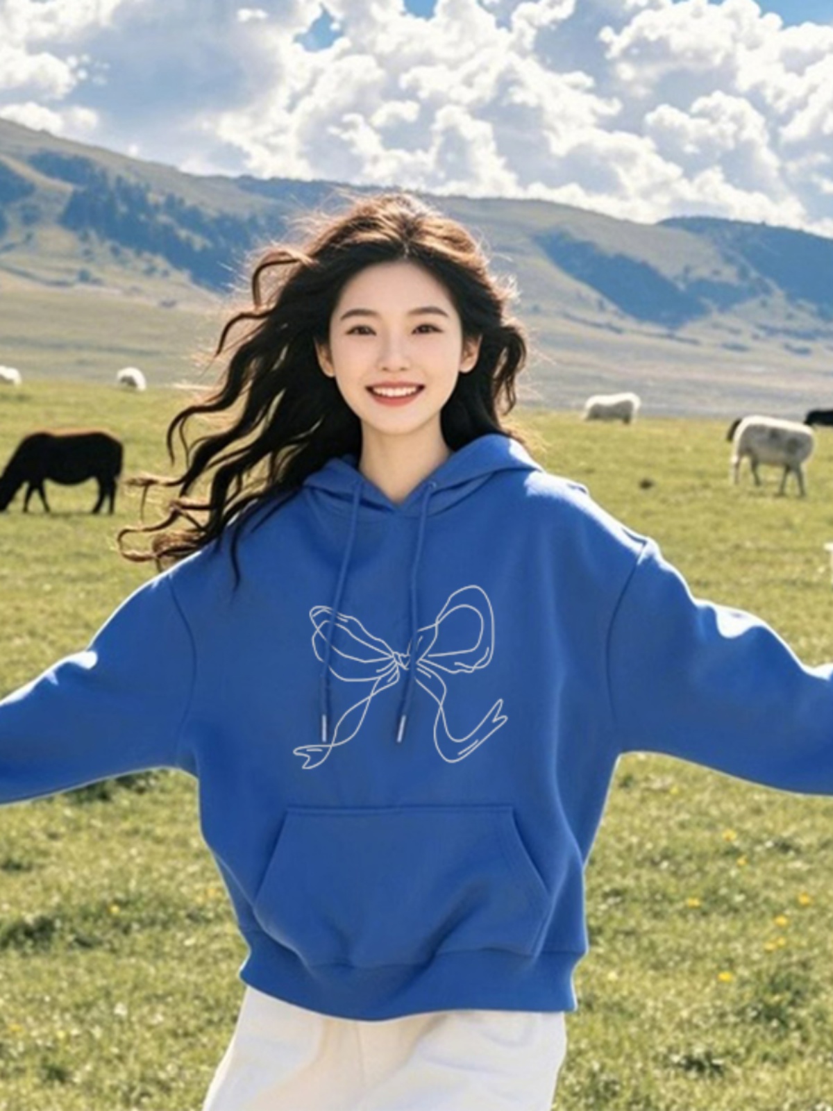 Bows Printed Hoodie Women's Spring and Autumn 2025 New Arrival Korean Fancy Lazy and Loose Long Sleeves Tops