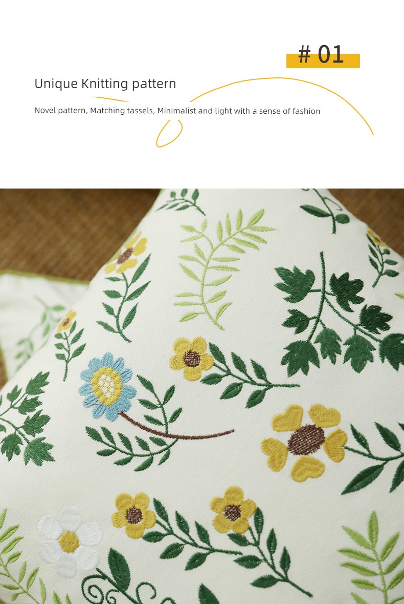 Broujia Scandinavian Ins Simple Embroidery Pillow Pillow Cover Living Room Sofa Siesta Cushion Model Room Pillow