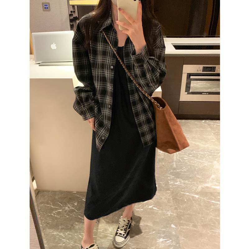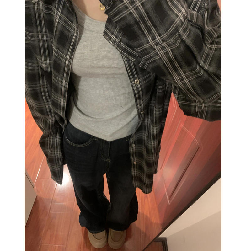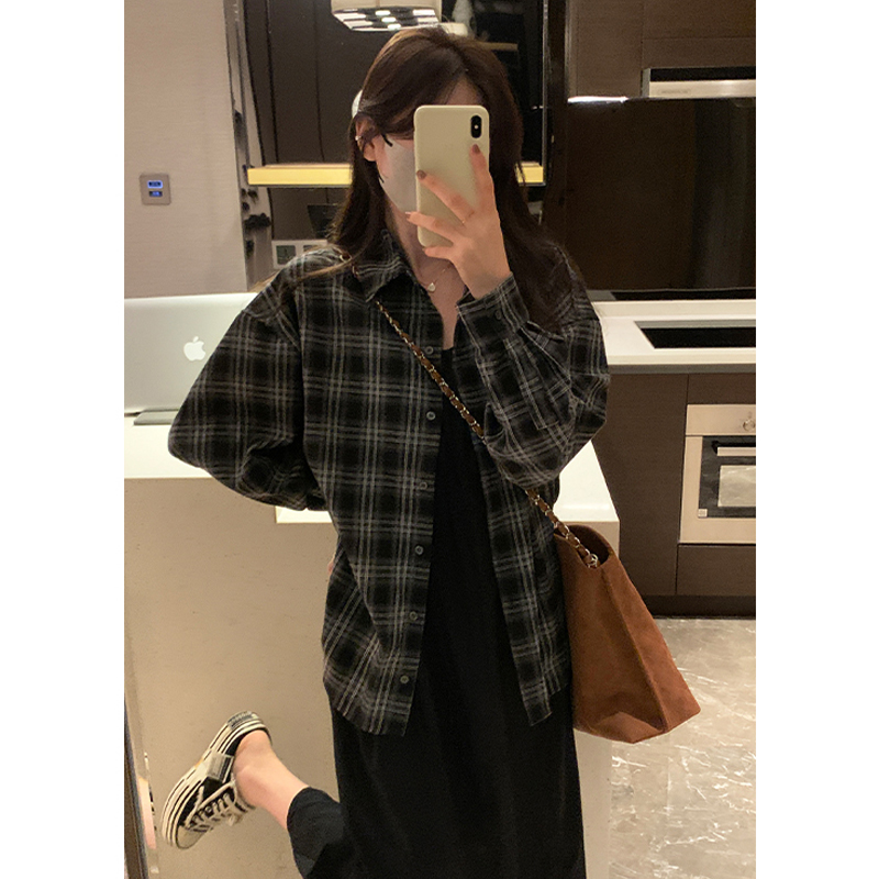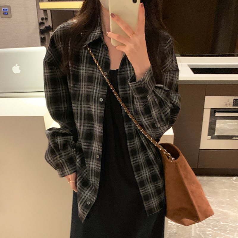 Brushed American Retro Plaid Shirt Women's Coat Spring & Fall 2024 Plus Size New Long Sleeve Top Fancy Shirt