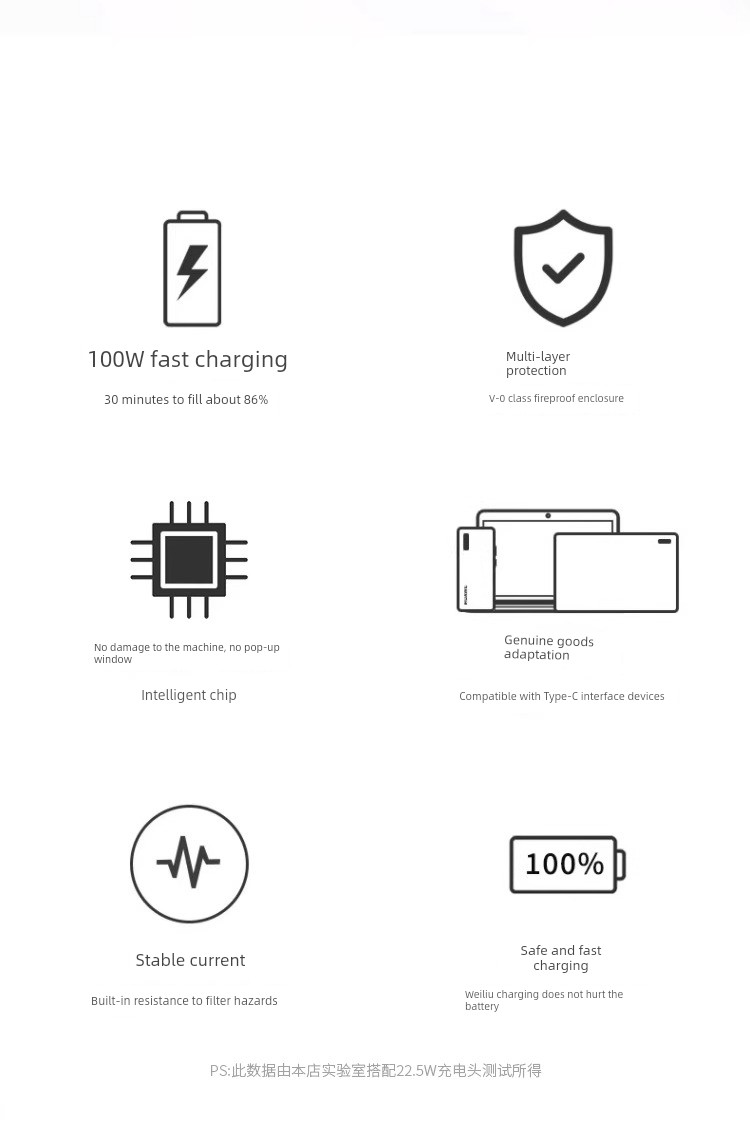 BS 100W Data Cable Huawei Cellphone Plug Fast Charge