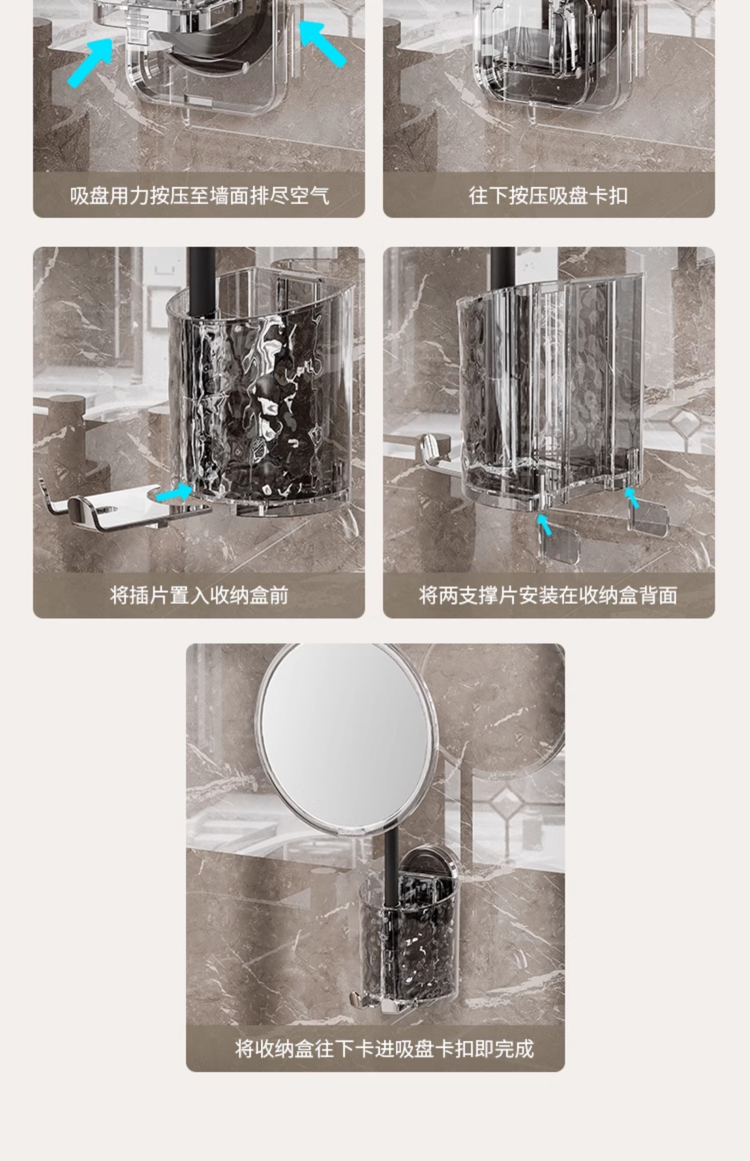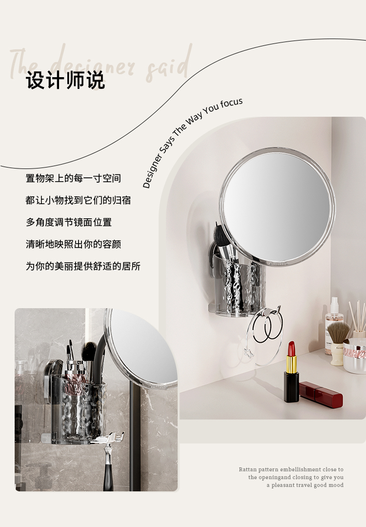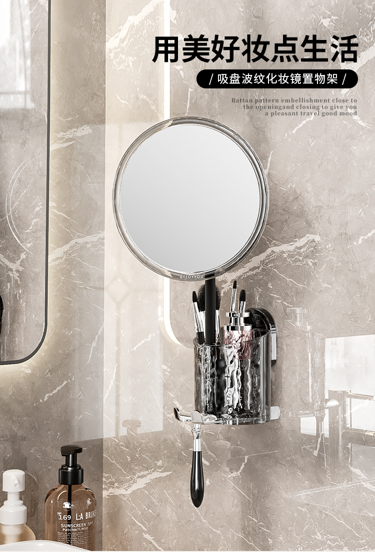 Buckle Suction Cup Corrugated Cosmetic Mirror Storage Rack Drawer Cosmetic Desktop Bathroom Bathroom Vanity Storage Box