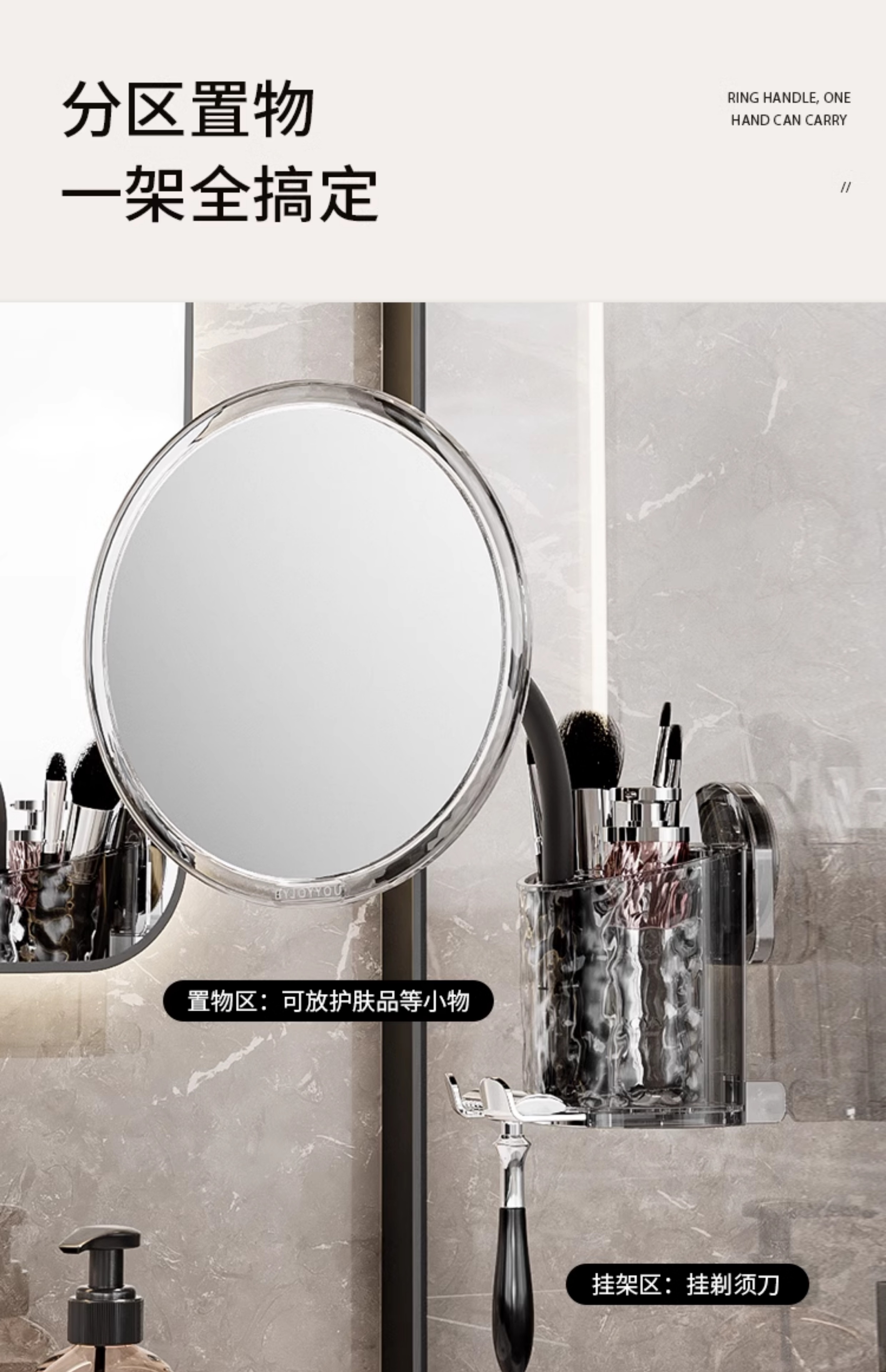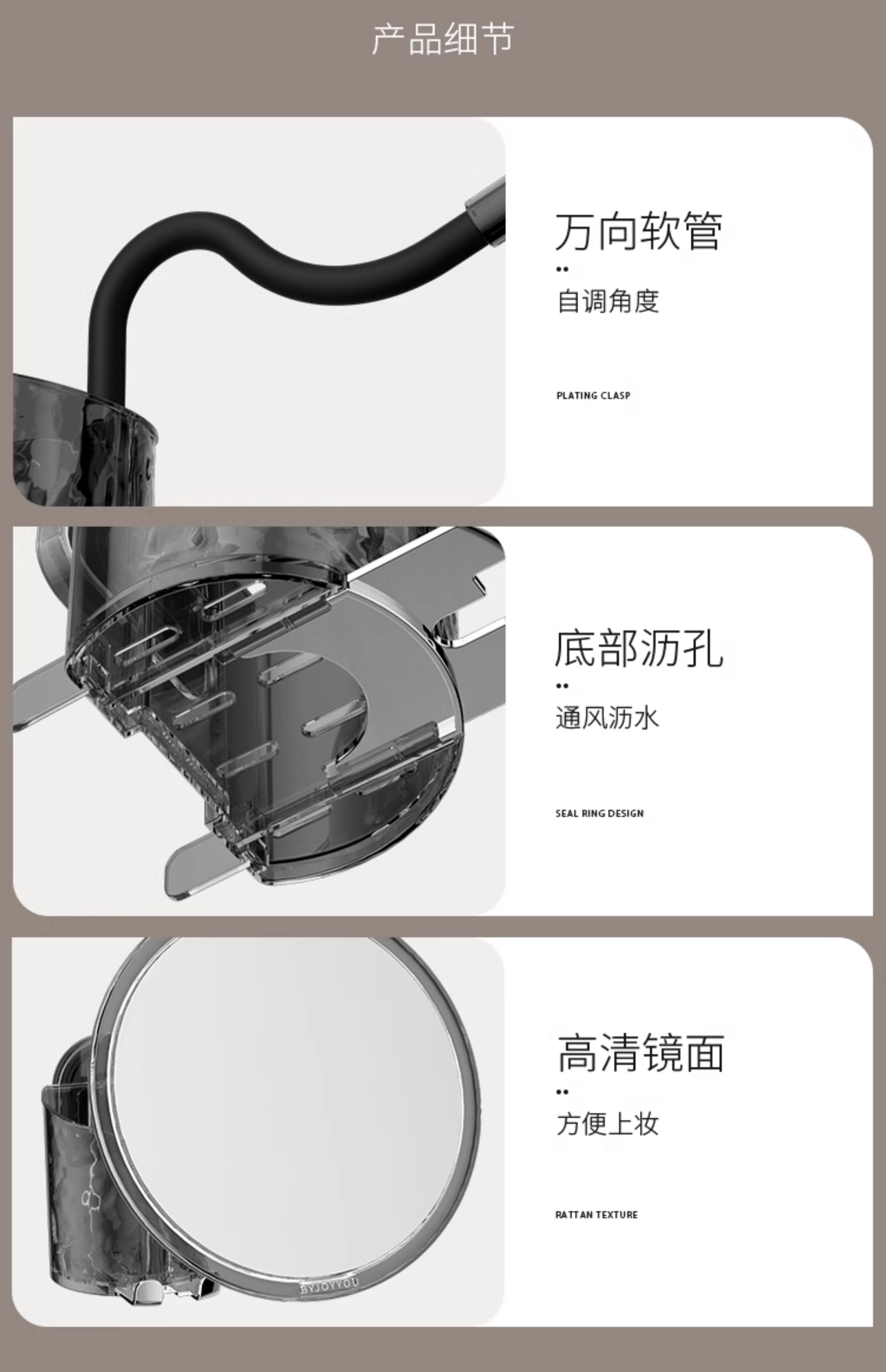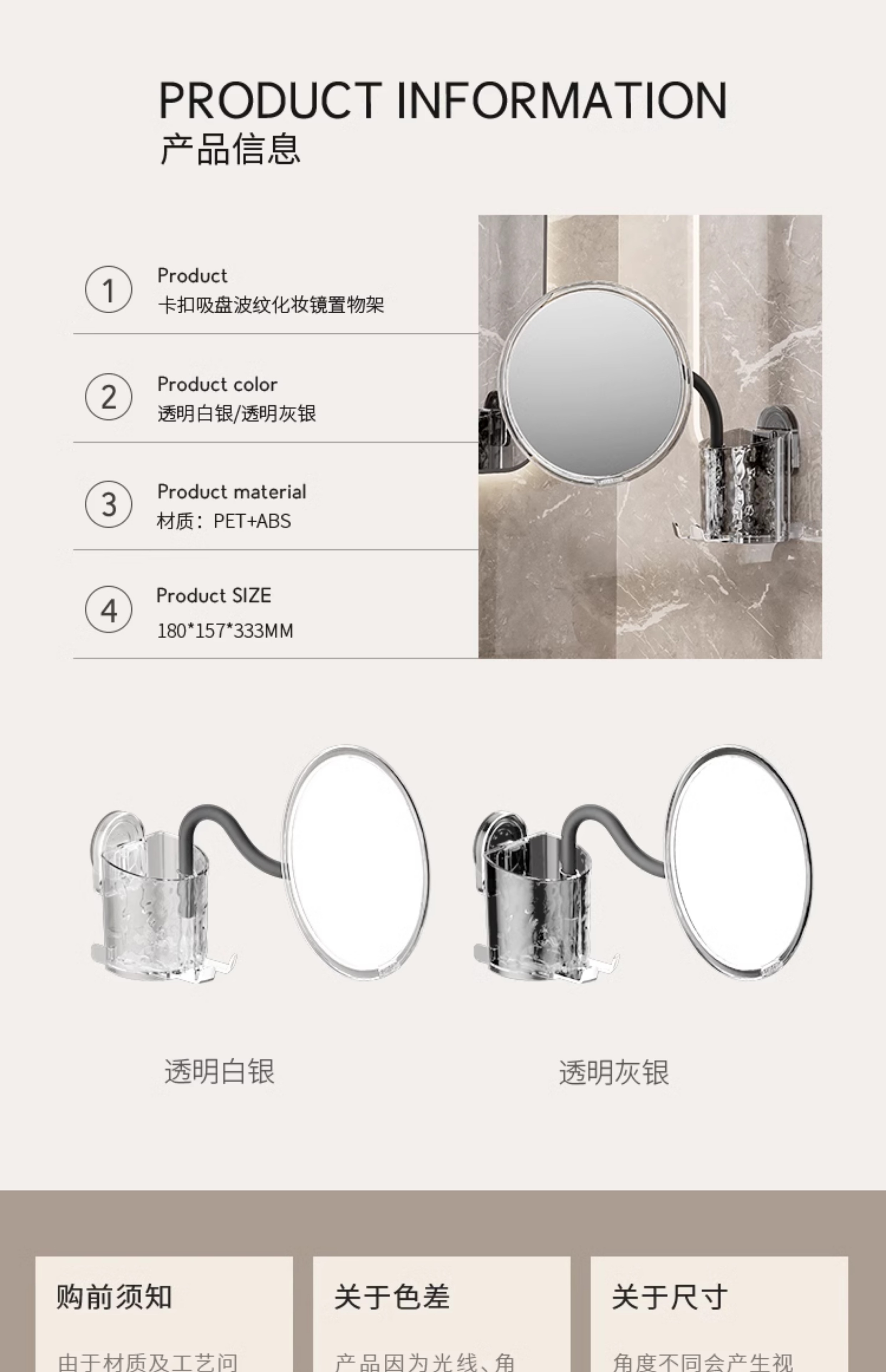 Buckle Suction Cup Corrugated Cosmetic Mirror Storage Rack Drawer Cosmetic Desktop Bathroom Bathroom Vanity Storage Box