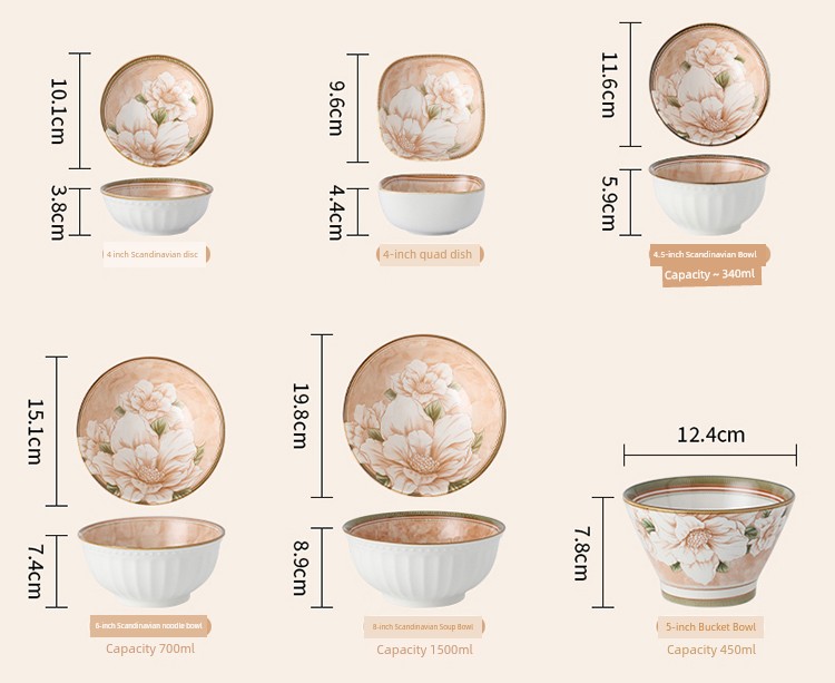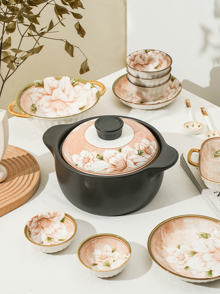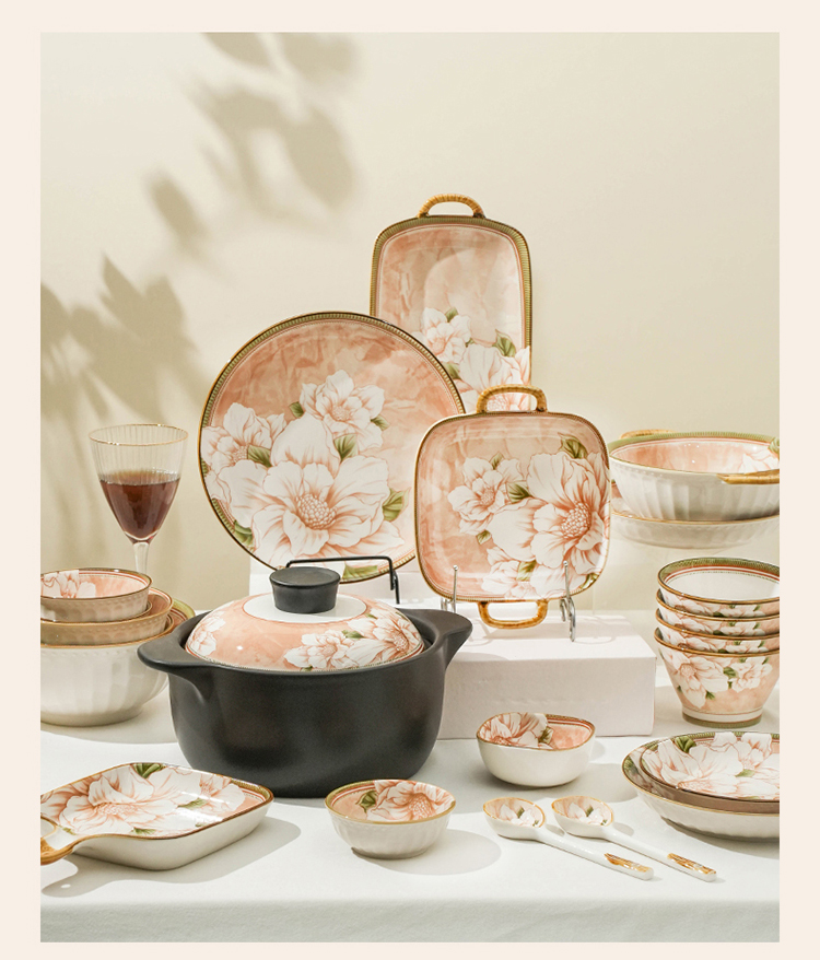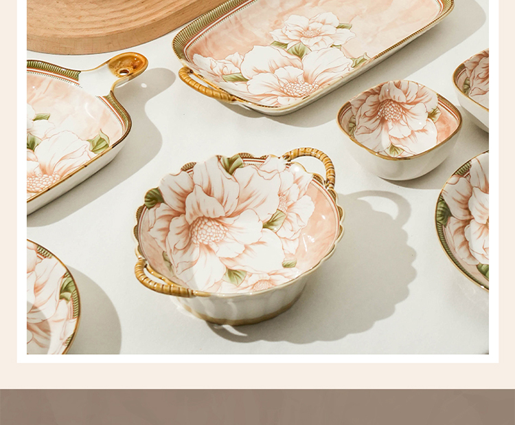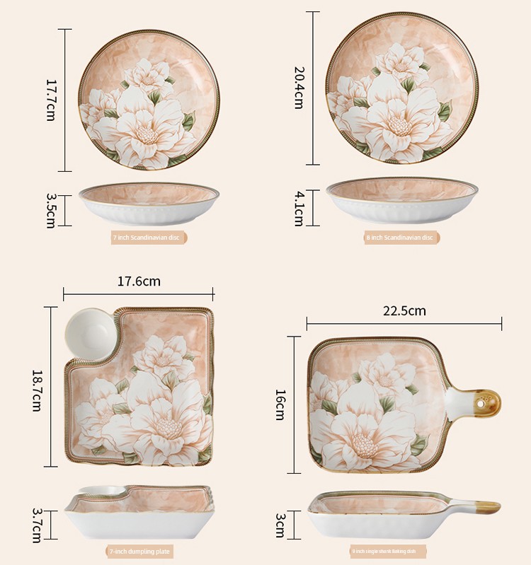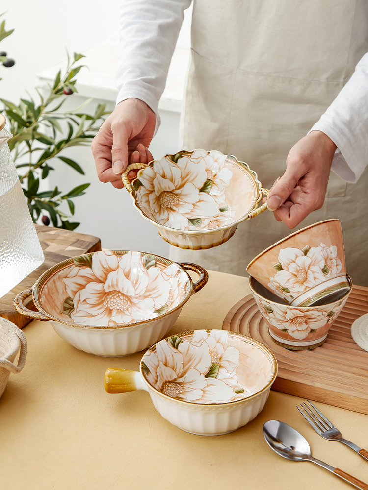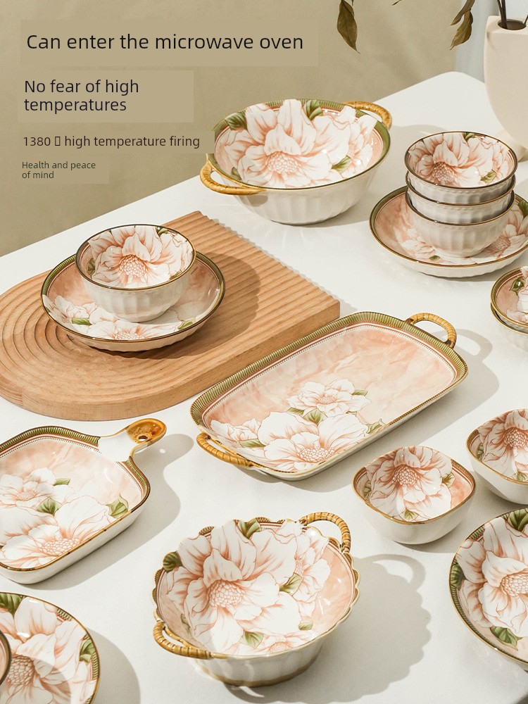 Camellia Bowl Underglaze Color Bowl Dish Suit For Home Rice Bowl Soup Bowl Tableware Set Plate Ceramic Bowl Cutlery Bowl and Plates Bowl Chopsticks