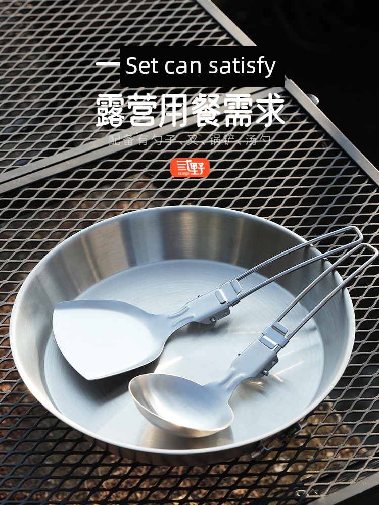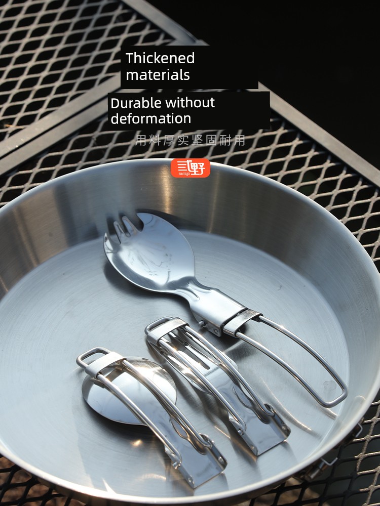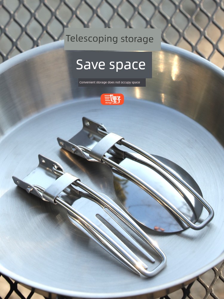 Camping Spoon Frying Pan Multifunctional Stainless Steel Foldable