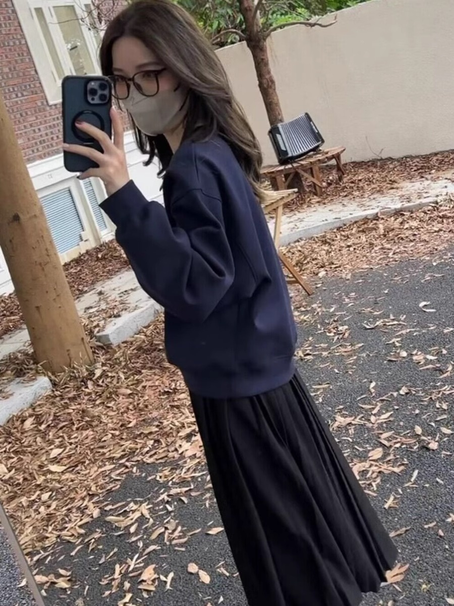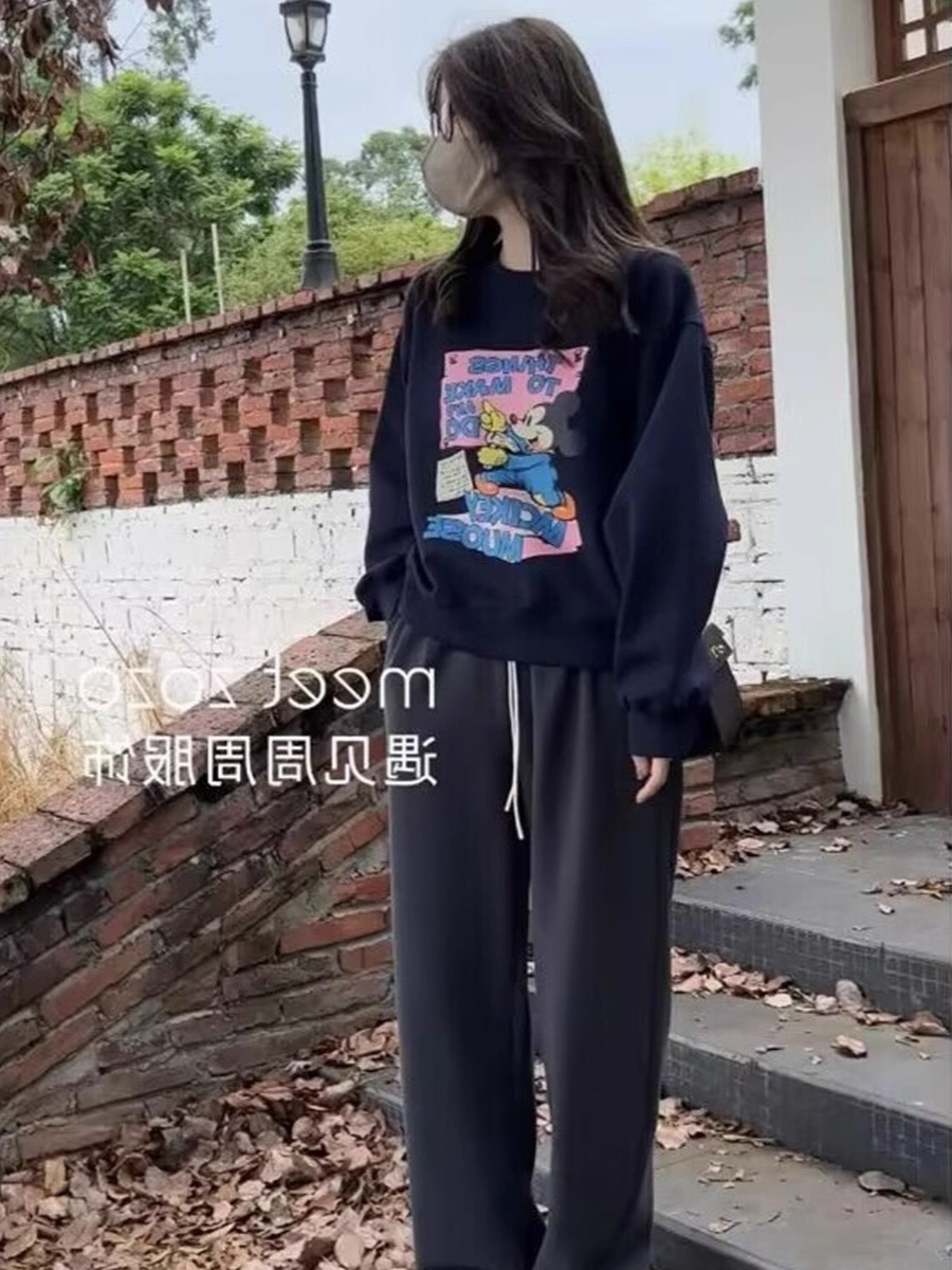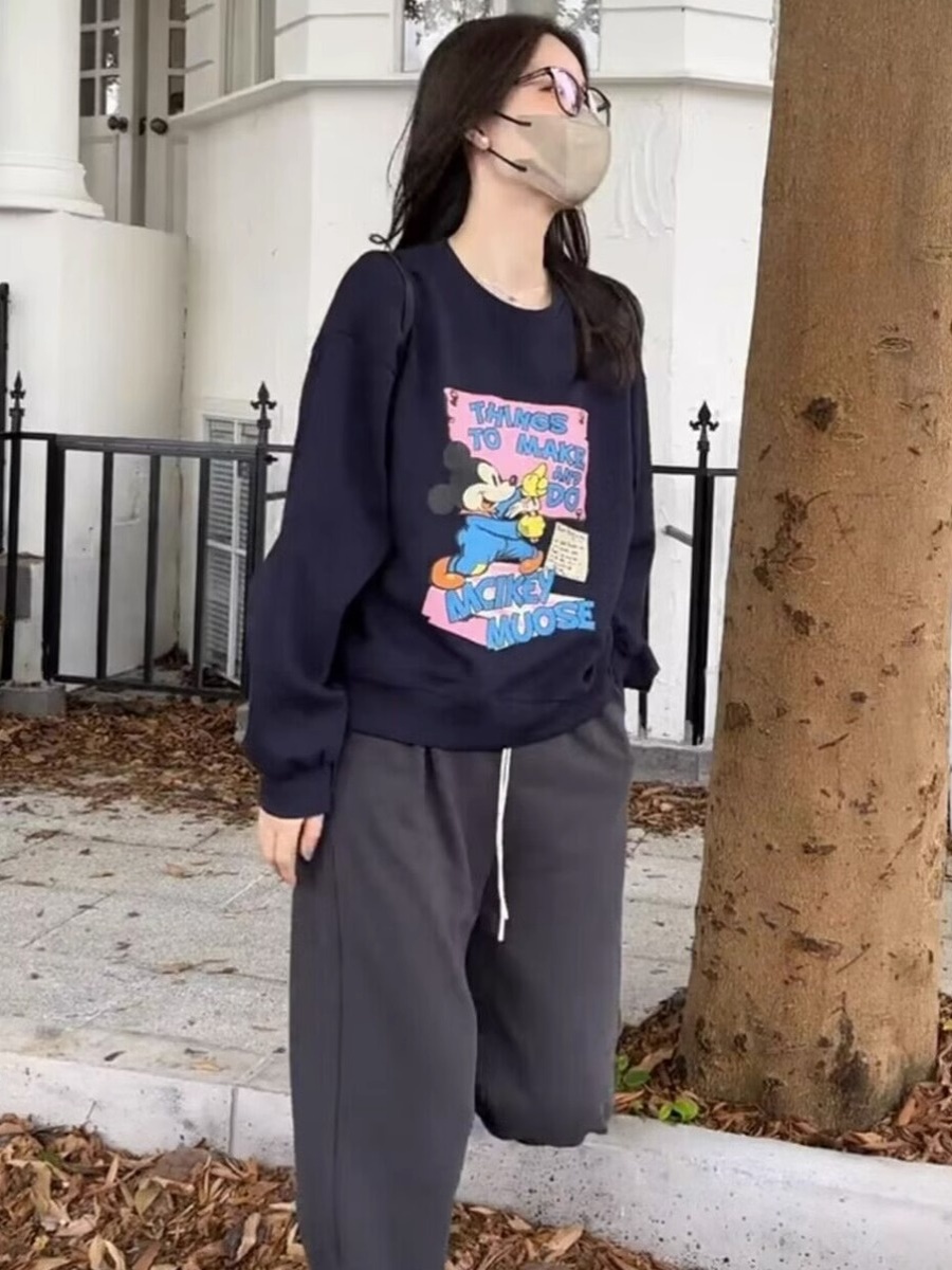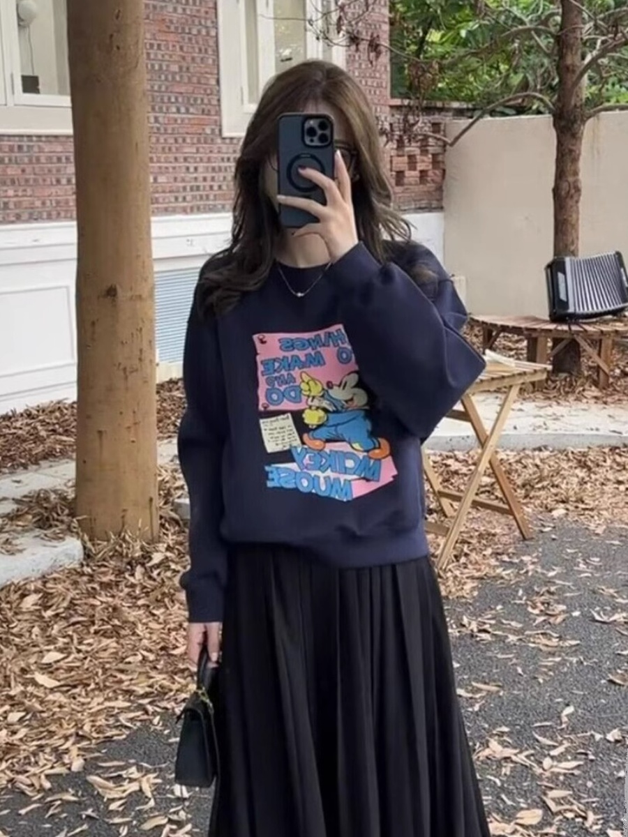 Capless round Neck Long Sleeves Sweatshirt Female Spring and Autumn Thin This Year Popular Beautiful Loose Easiest for Match Cartoon Print Top