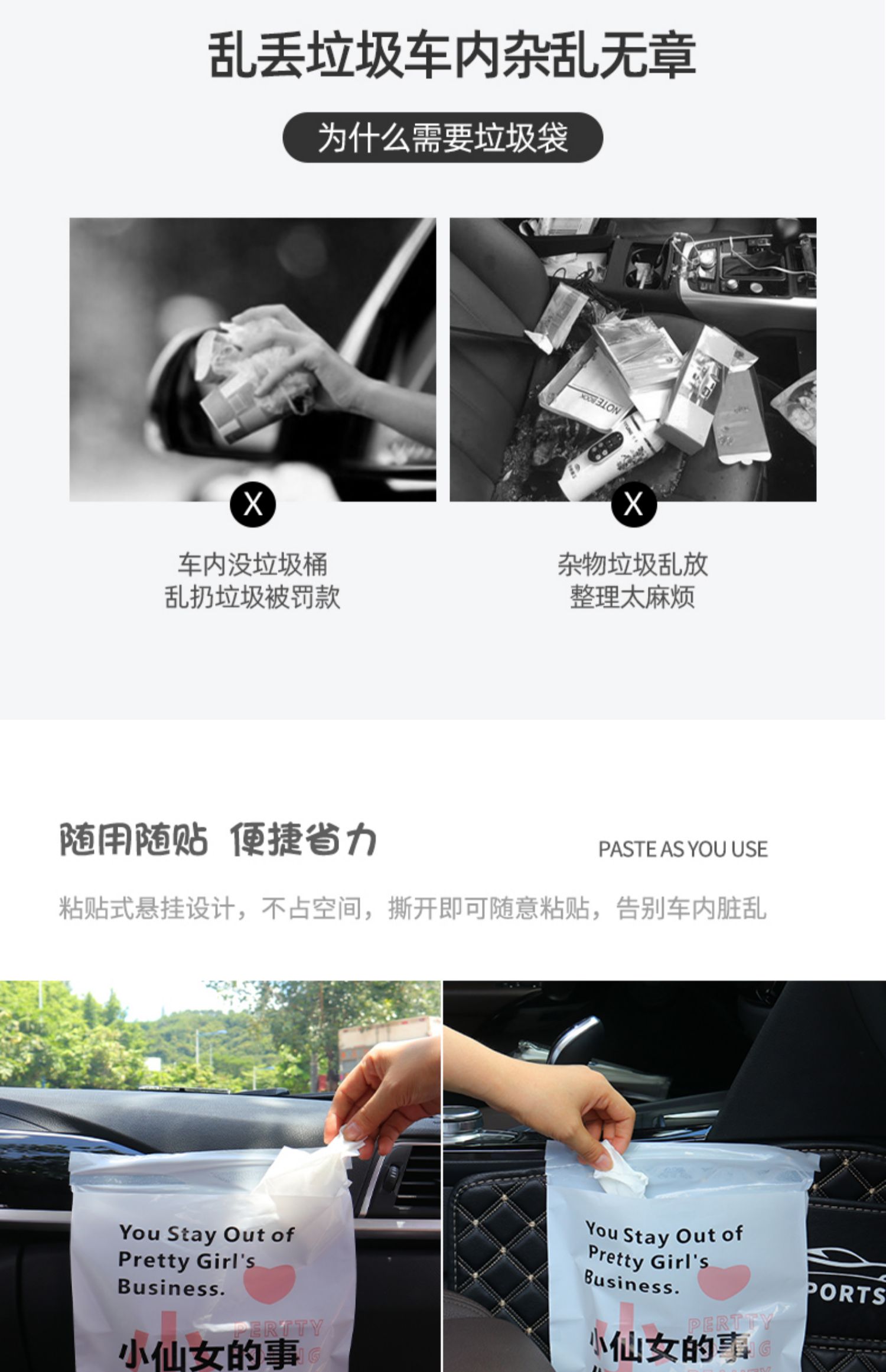 Car Trash Bag Adhesive Disposable Car Portable Clean Bag Car Front and Rear Row Foldable Trash Can