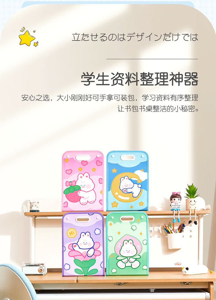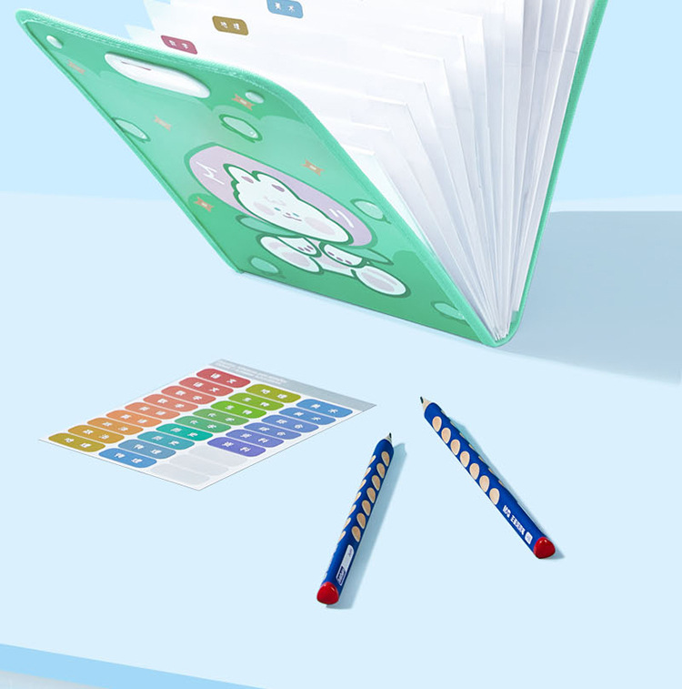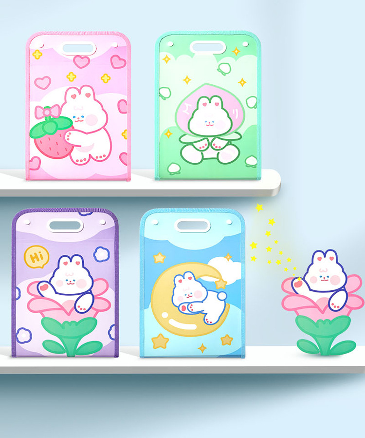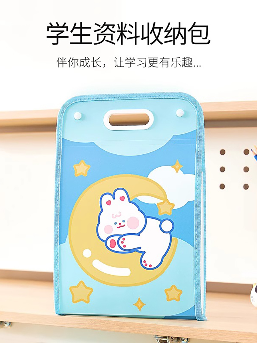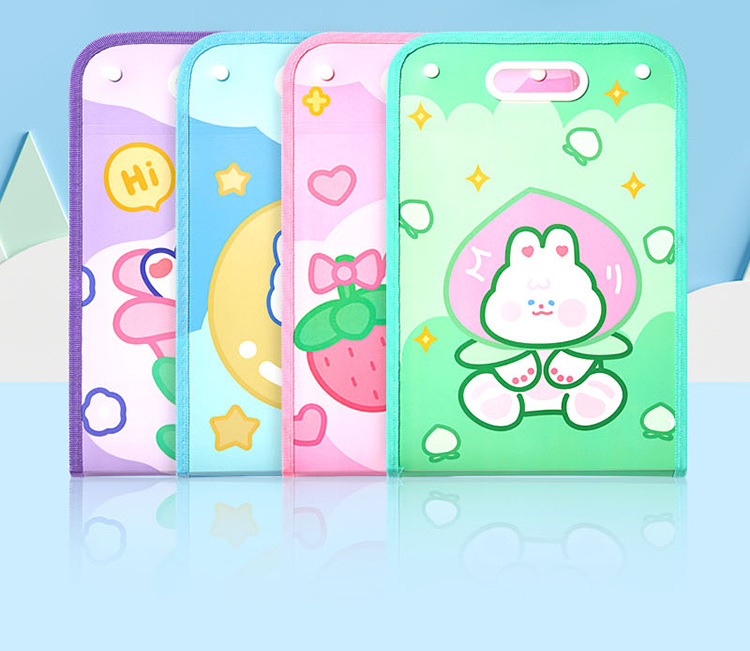 Cartoon Multi-Layer File Holder Vertical Pp Satchel Test Paper Storage Clip 13 Grid Buggy Bag Subject Classification Storage Bag
