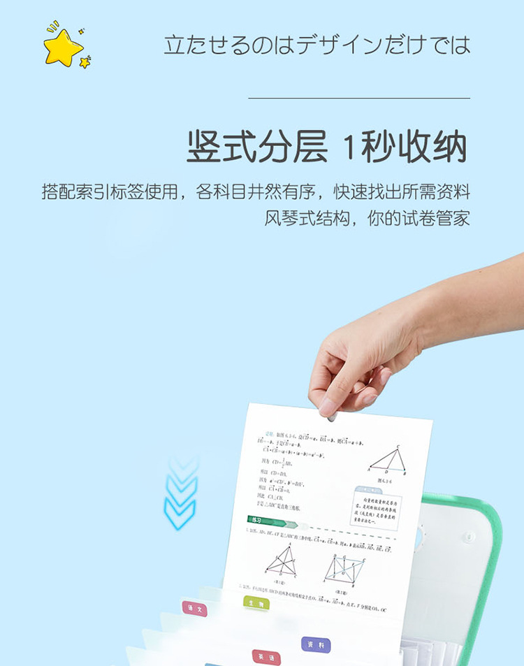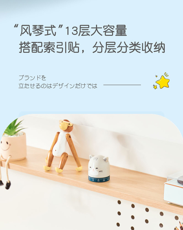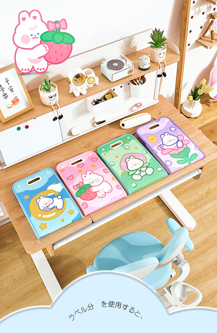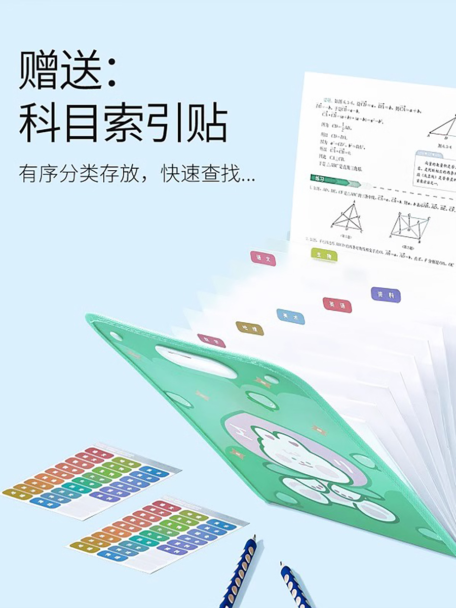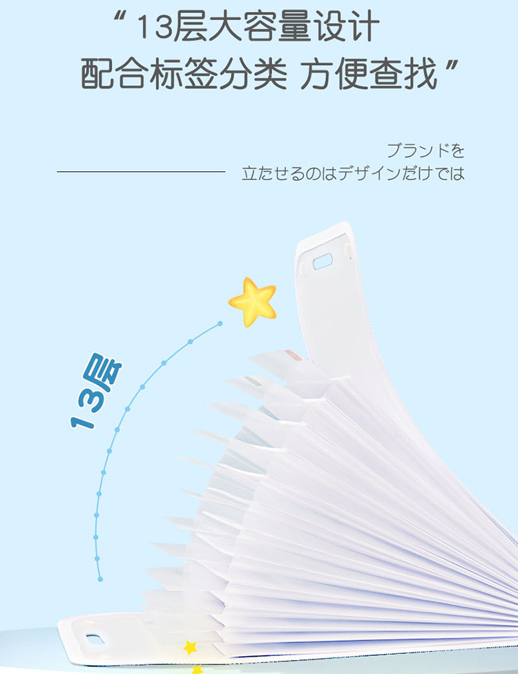 Cartoon Multi-Layer File Holder Vertical Pp Satchel Test Paper Storage Clip 13 Grid Buggy Bag Subject Classification Storage Bag