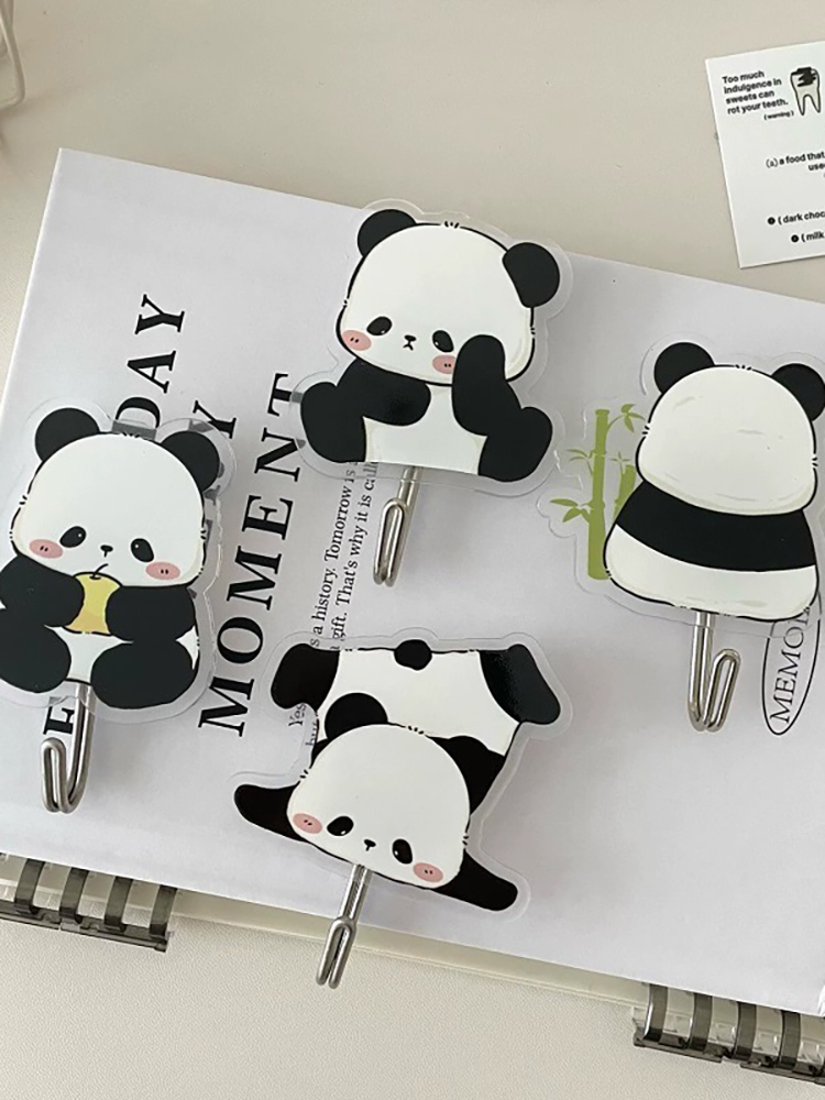 Cartoon Panda Hook Gift Style Bathroom Rack behind the Door Cute Acrylic No Trace Wall-Mounted Punch-Free