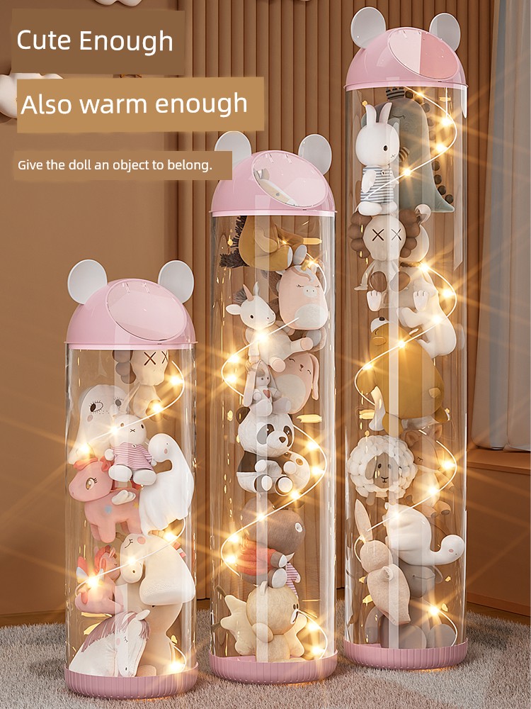 Cartoon Plush Doll Storage Bucket Transparent Doll Storage Basket Internet-Famous Doll Kids Toy Storage Container Handy Gadget