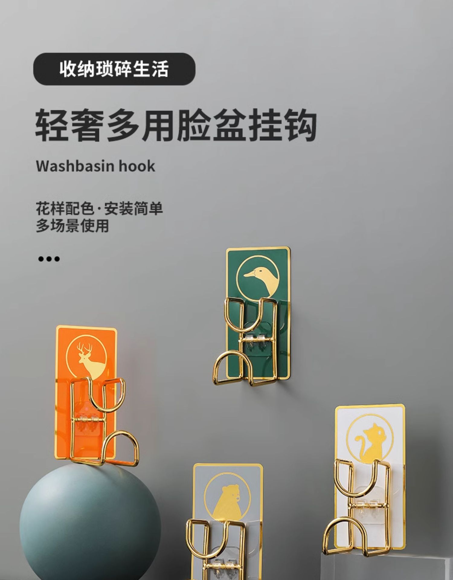 Cartoon Stainless Steel Washbasin Stand Punch-Free Storage Rack Bathroom Kitchen Wall Hanging Towel Rack Washbasin Hanger