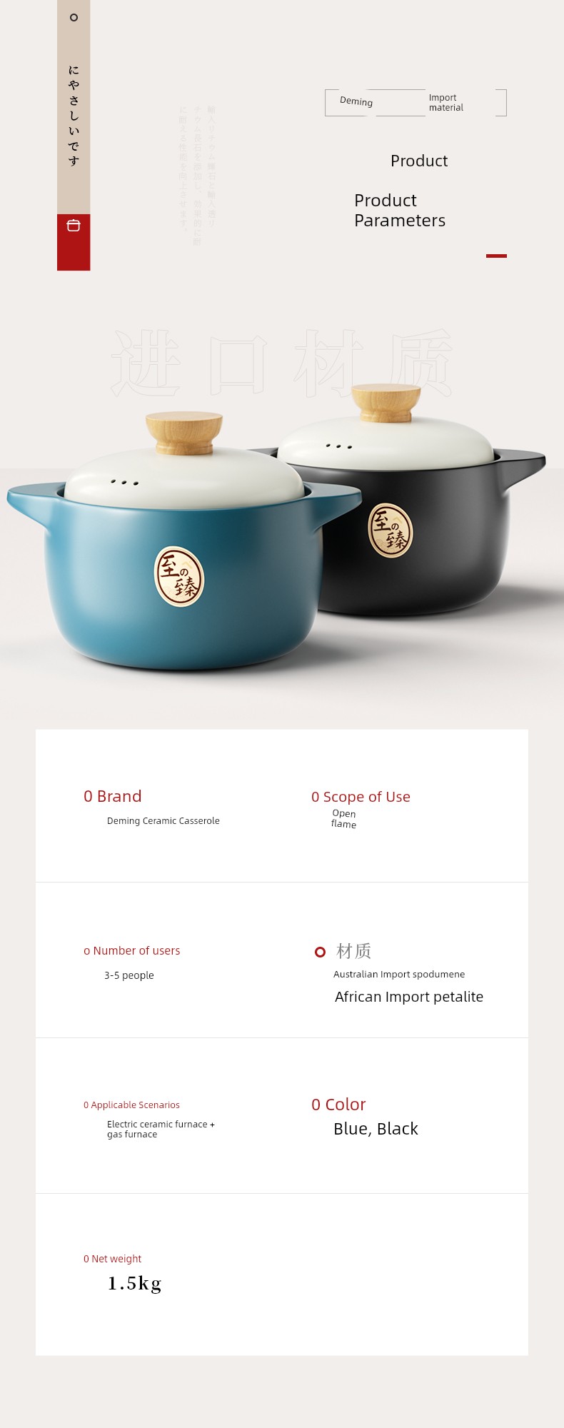 Casserole High Temperature Resistant Dry Burning Non-Cracking Chinese Casseroles Ceramic Pot For Home Special Soup for Gas Stove Clay Pot Soup POY Claypot Rice