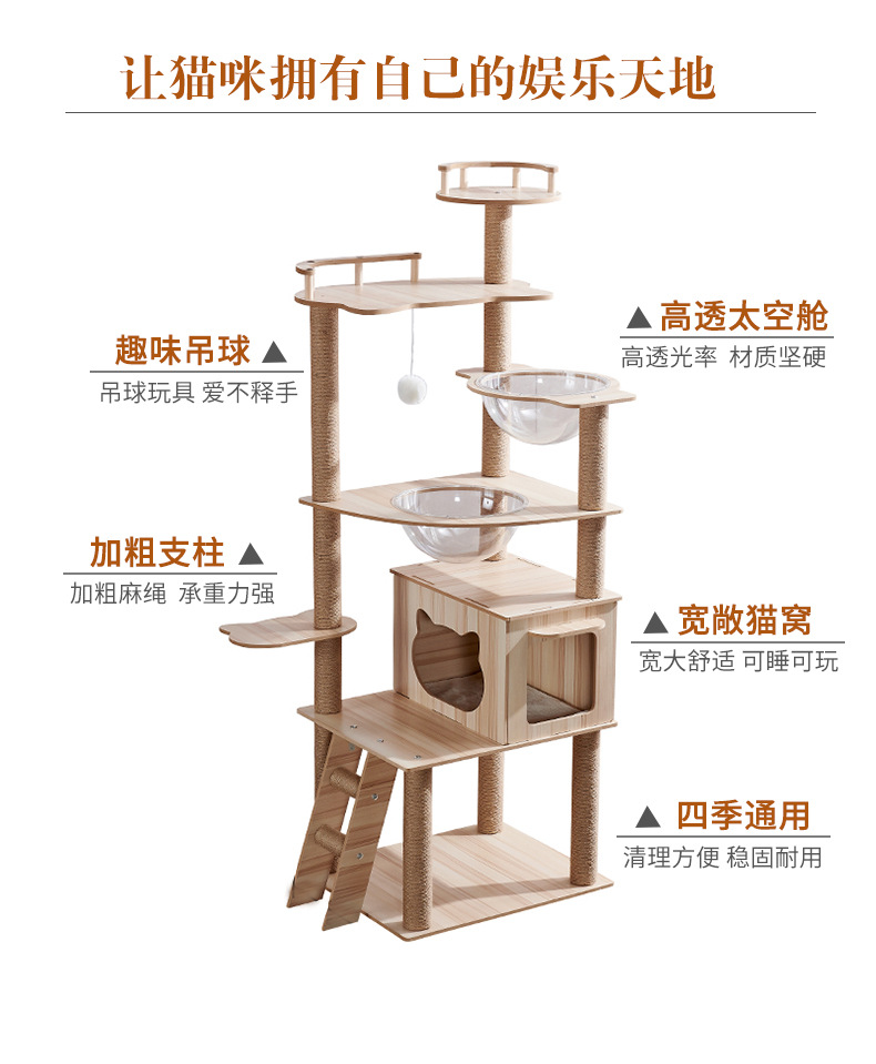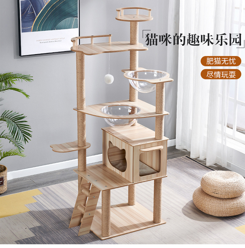Cat Climbing Frame Cat Litter Cat Tree Integrated Cat Scratch Board Cat Climbing Frame Sub Does Not Cover an Area of Space Capsule Tongtianzhu Solid Wood Cat Scratch Trees