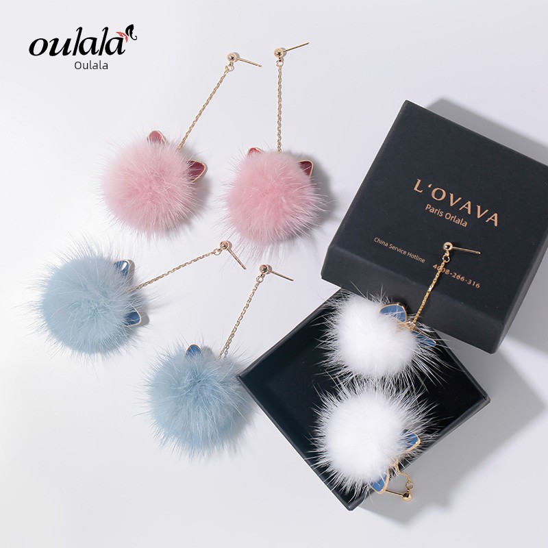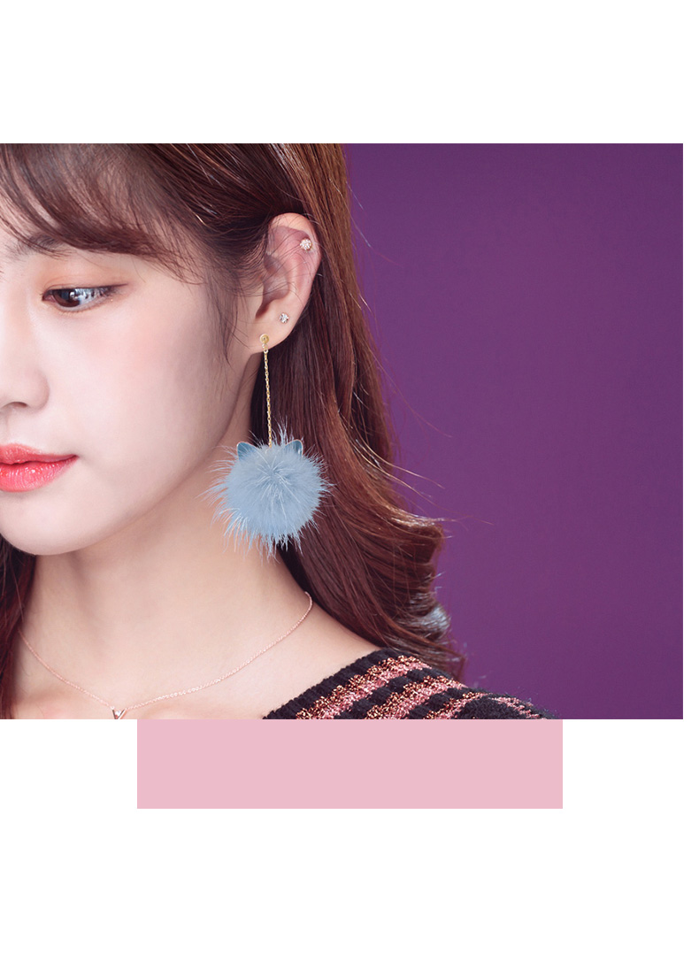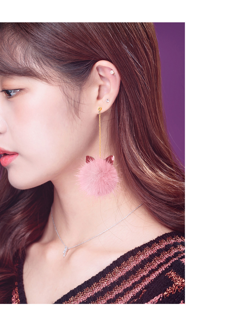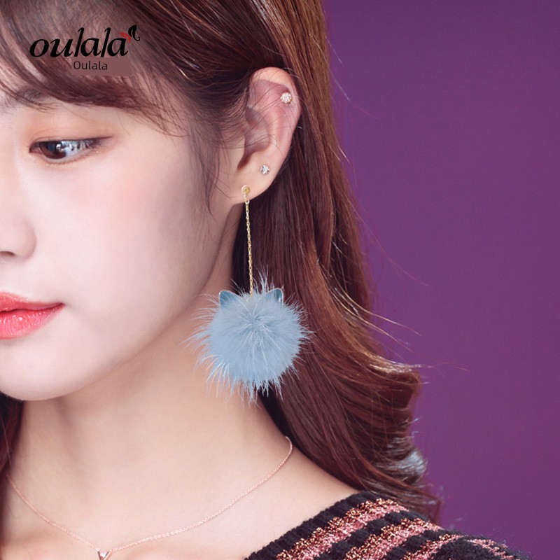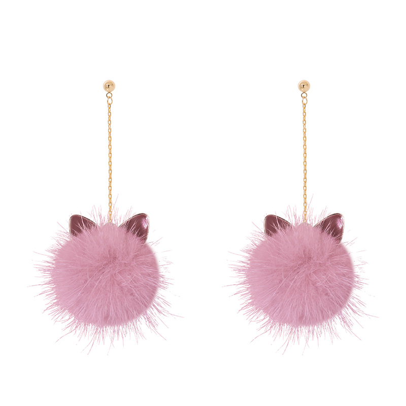 Cat Ears Mink Fur Ball Earrings Female Elegant South Korea Stylish All-Matching Long Winter Furry Earrings Ball Earrings