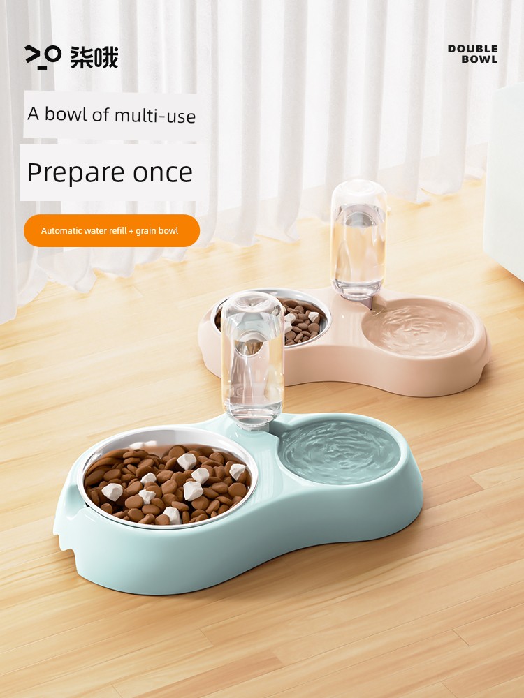 Cat Food Holder Dog Basin Dog Bowl Drinking Water Integrated Dog Automatic Drinking Water Anti-Tumble Pet Double Bowl Cat Supplies Complete Collection