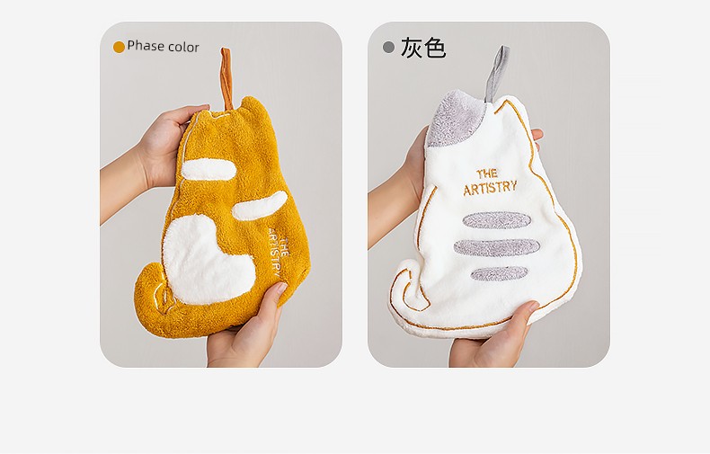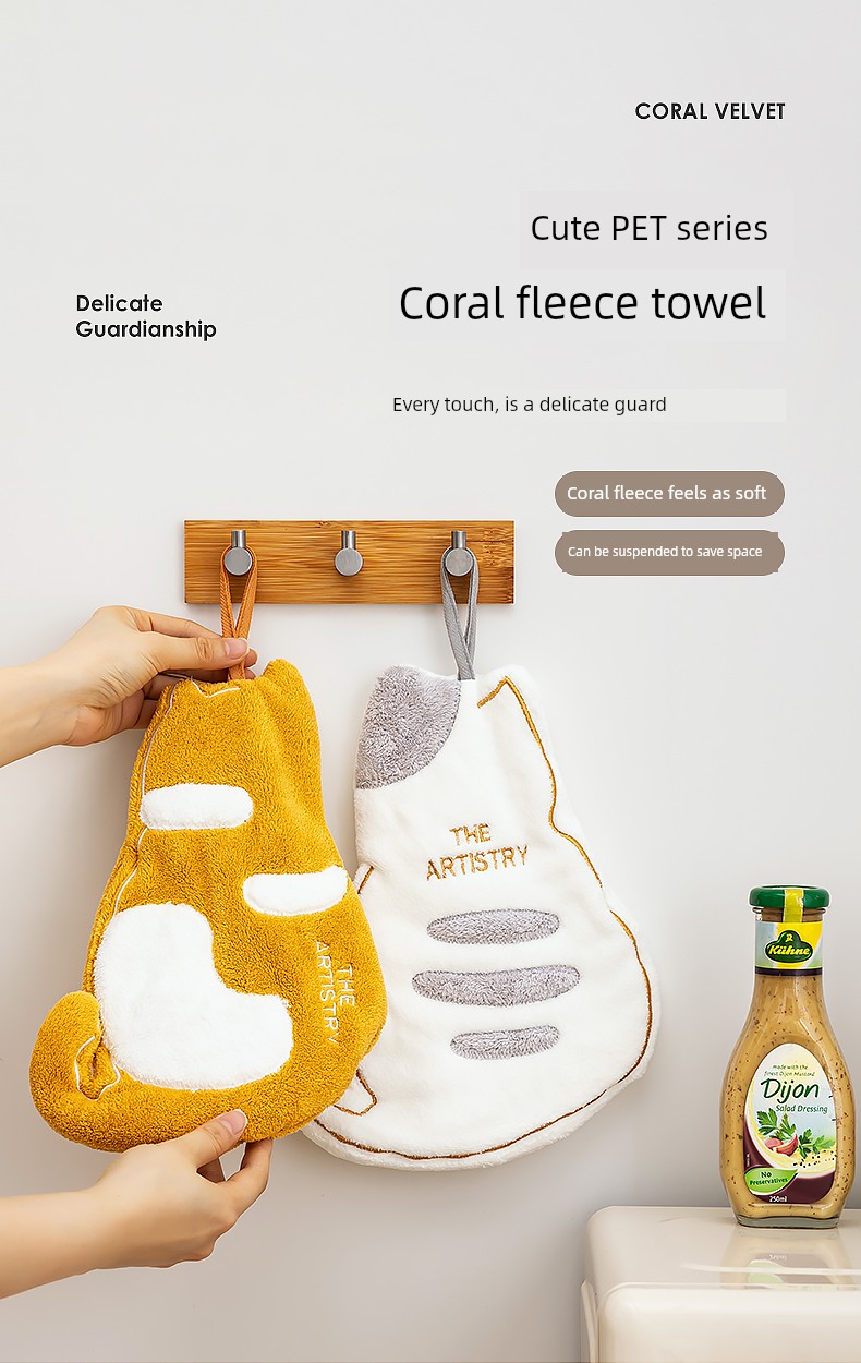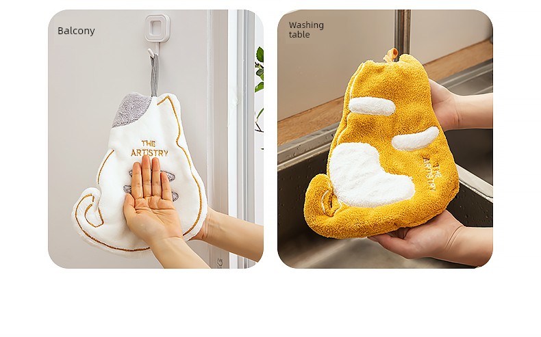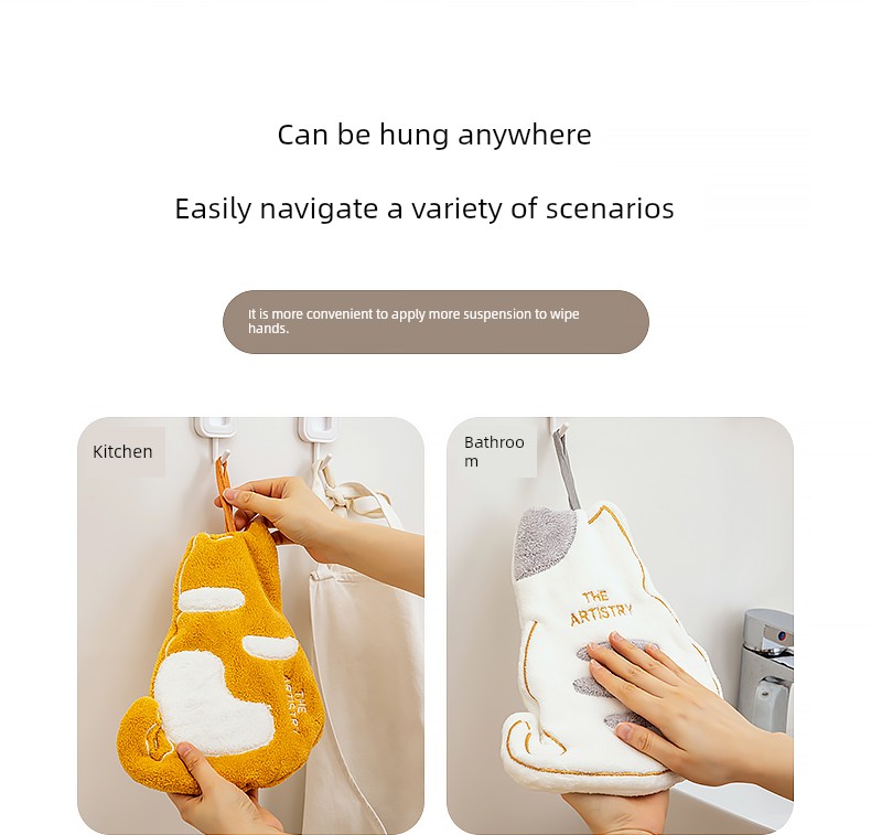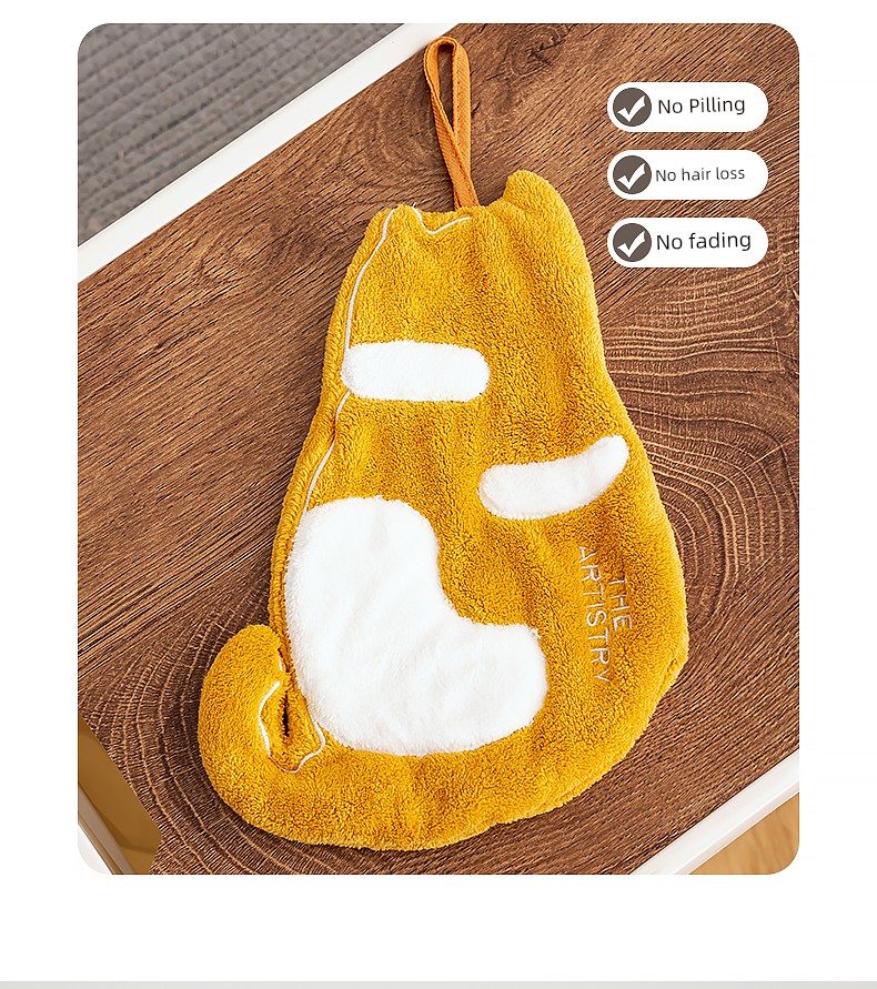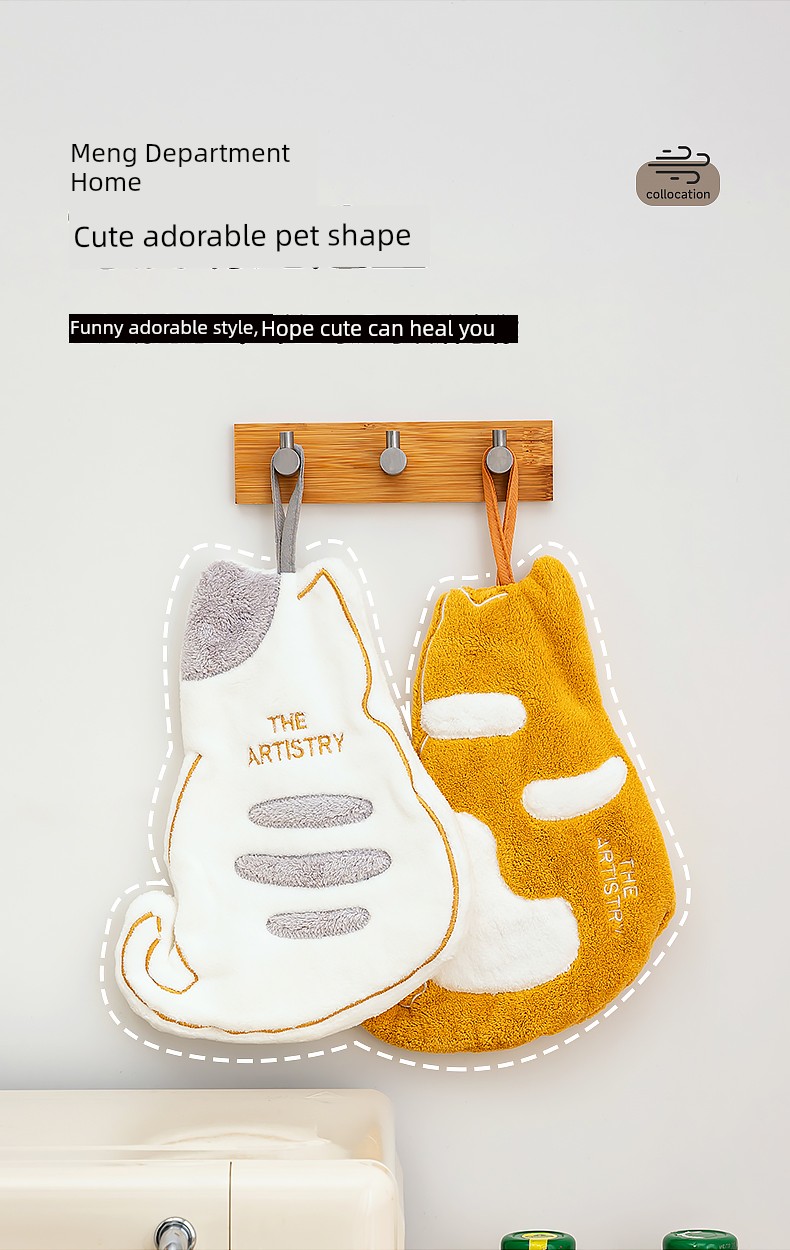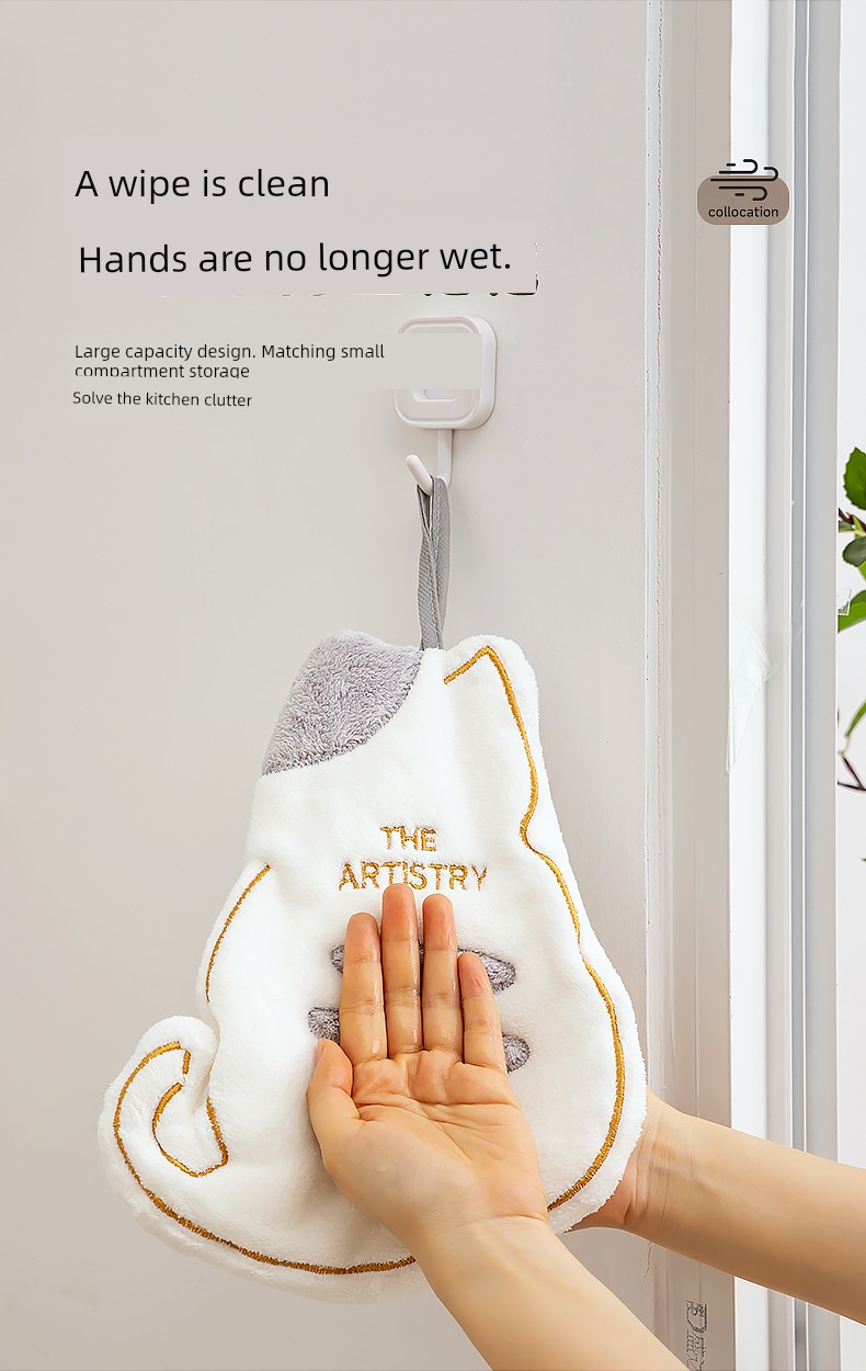 Cat Hand Towel Cloth Hanging Towel Cute Kitchen Absorbent Lint-Free Kids Thickened Bathroom Handkerchief