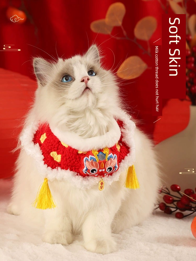Cat Scarf Christmas Clothes Fall and Winter Dog Puppy Saliva Towel Ornament Kitten Pet New Year Scarf Collar