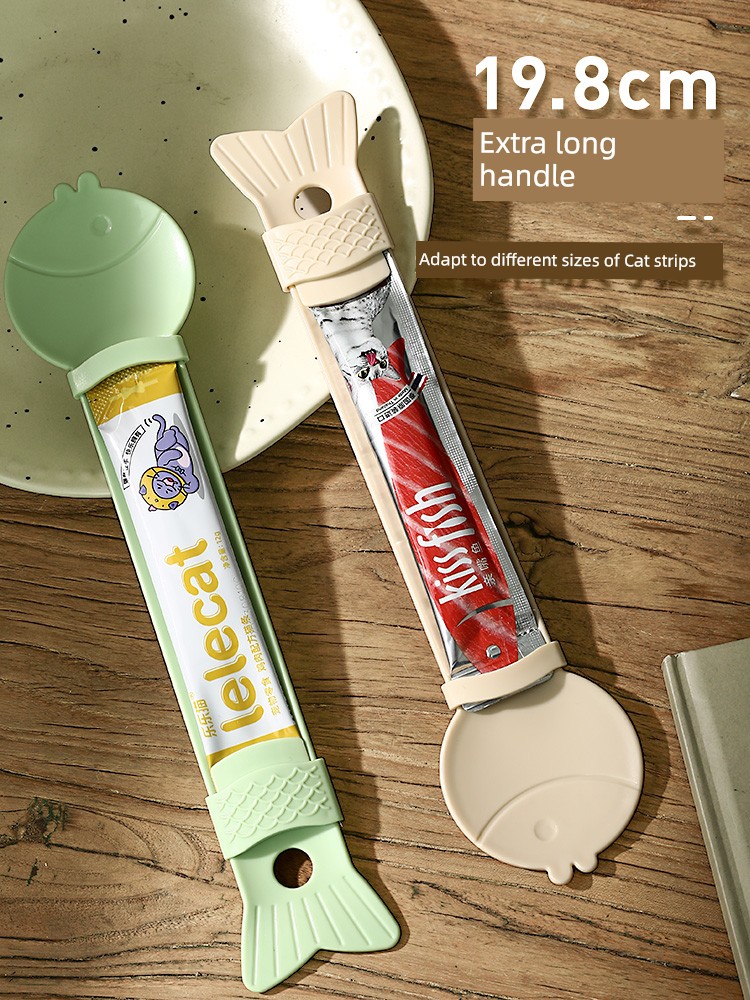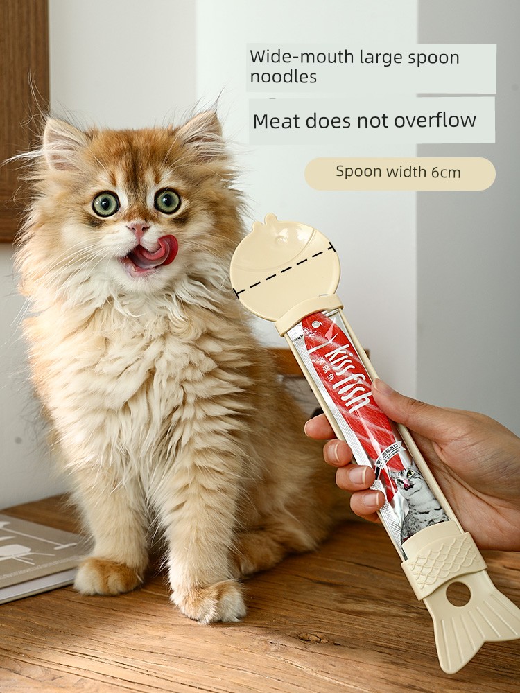Cat Strip Feeder Squeeze Cat Grain Spoon Shovel Long Handle Pet Clay Special Cat Grain Spoon Feeding Cat Strip Handy Gadget
