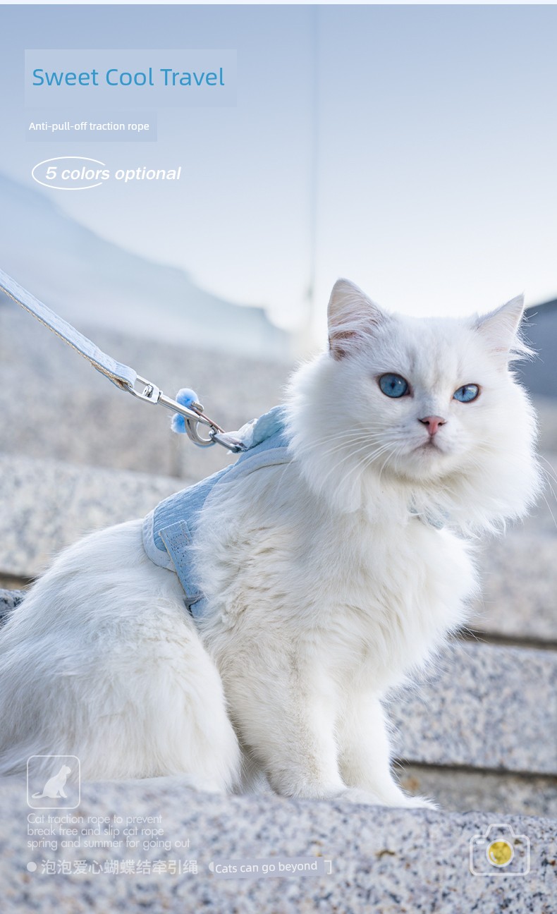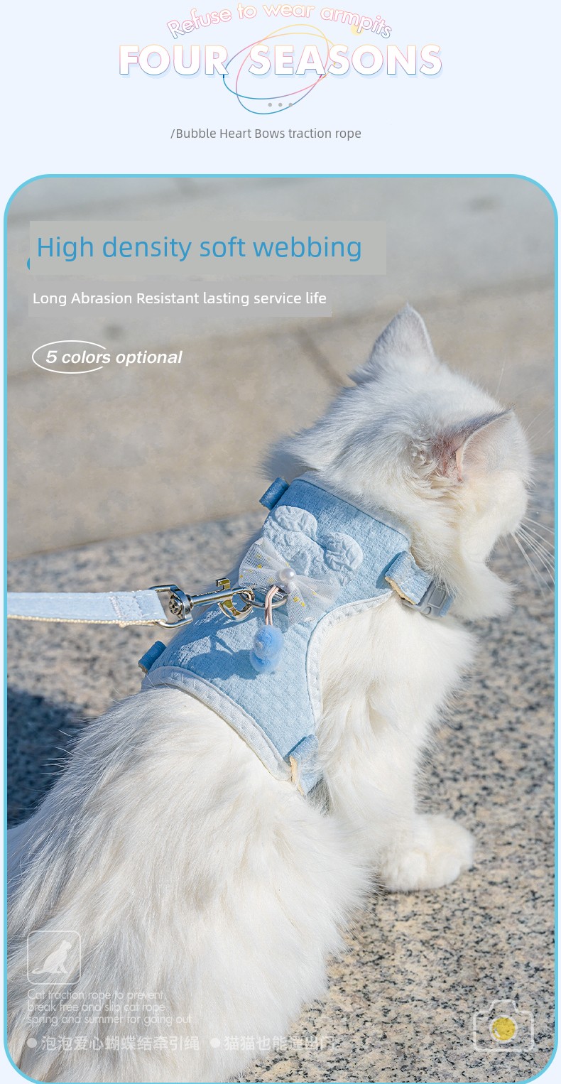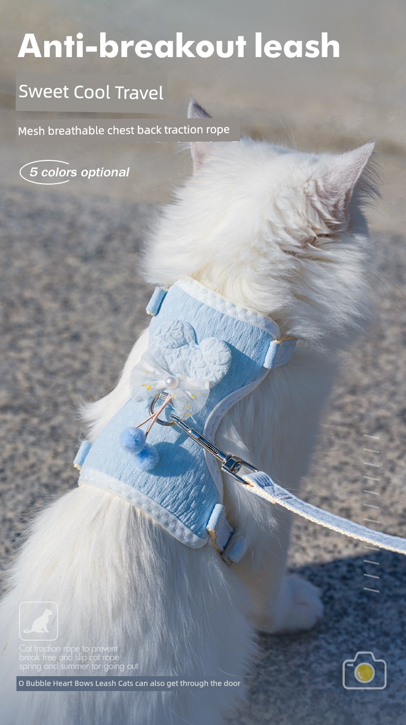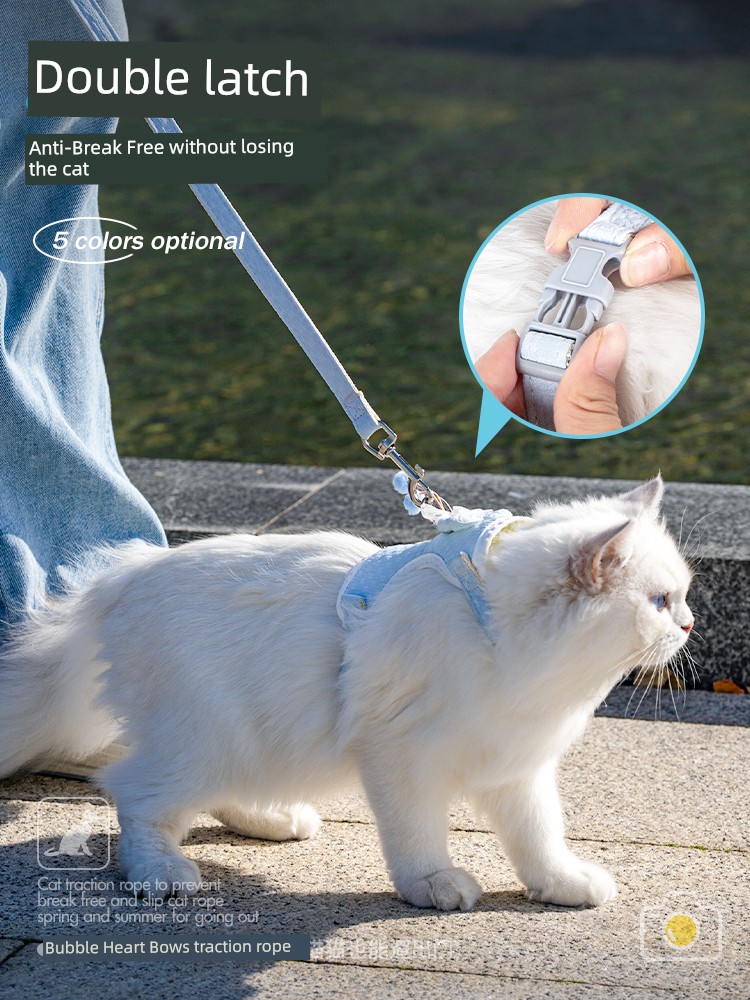Cat Towing Rope Chest Strap Anti Breaking Loose Cute Vest-Style Safety Buckle Go out Special Cat Walking Rope