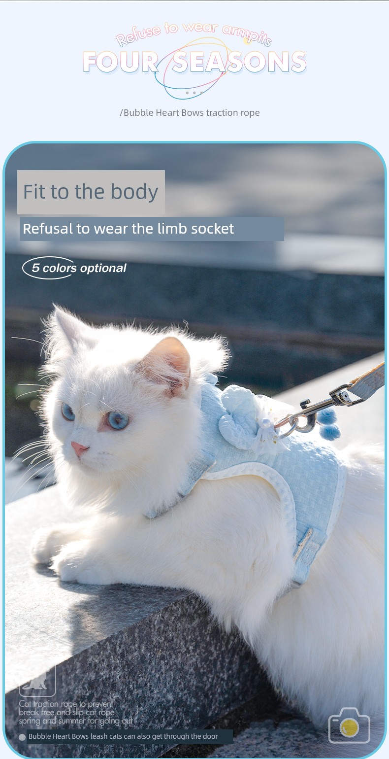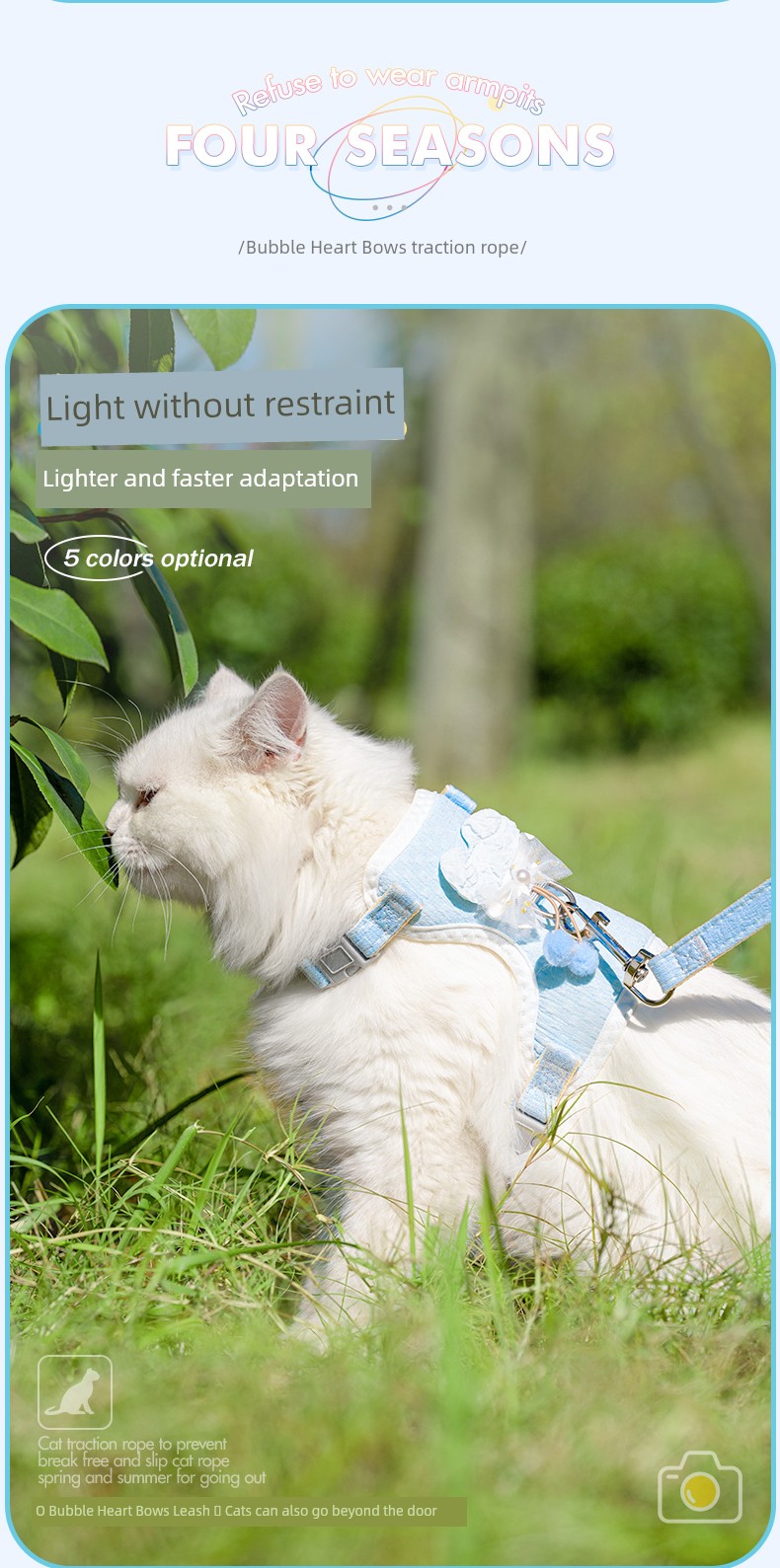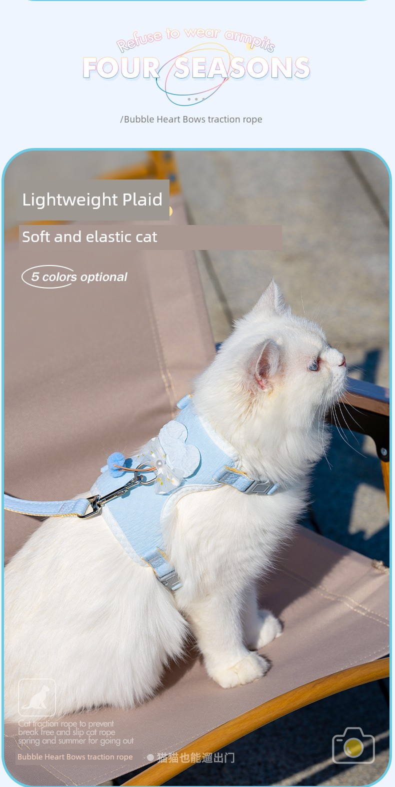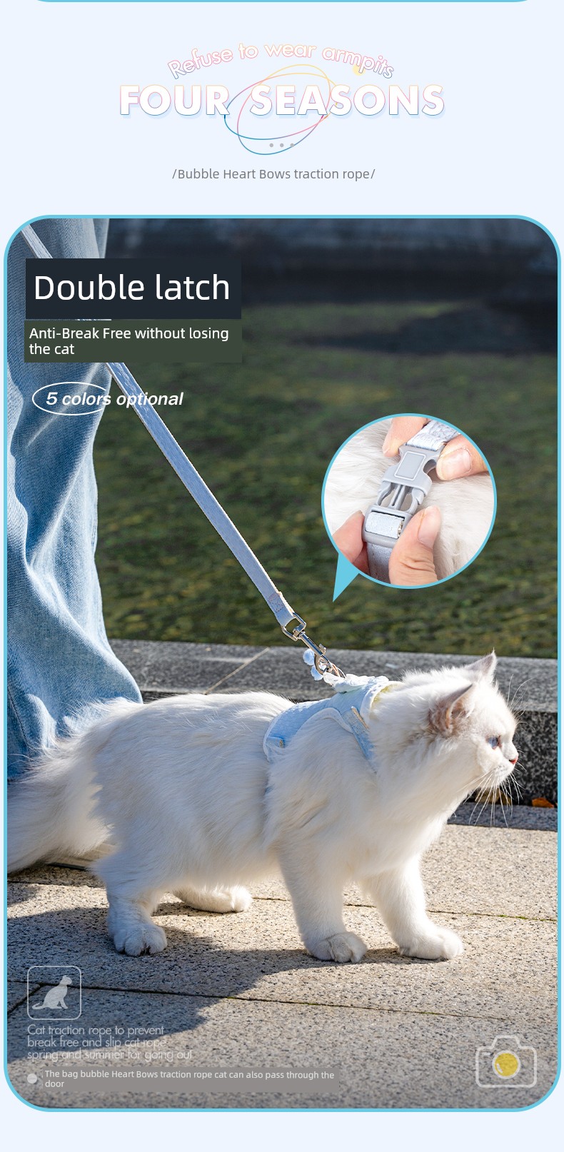Cat Towing Rope Chest Strap Anti Breaking Loose Cute Vest-Style Safety Buckle Go out Special Cat Walking Rope
