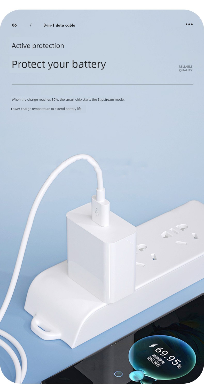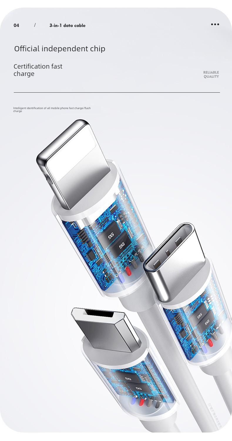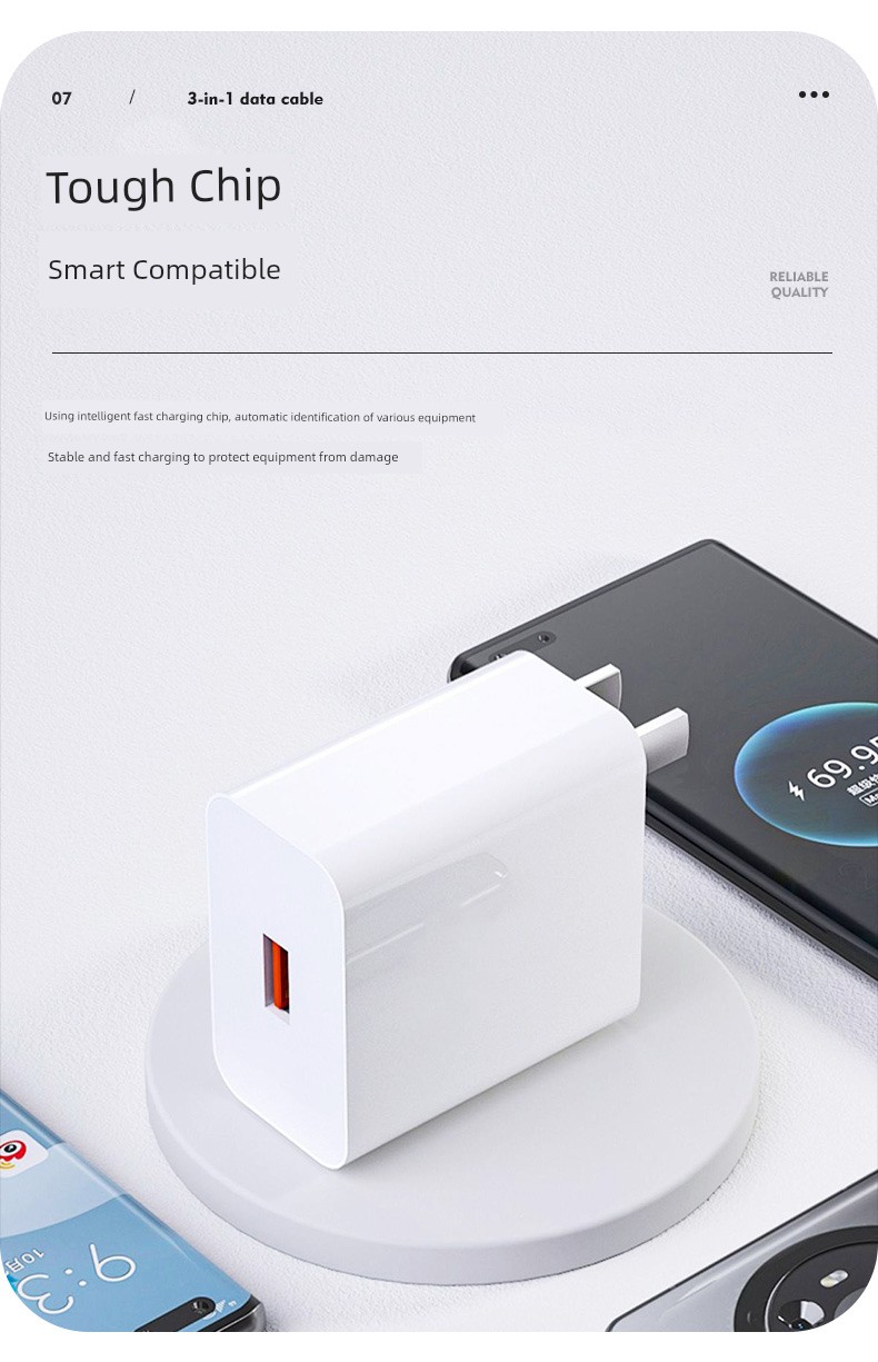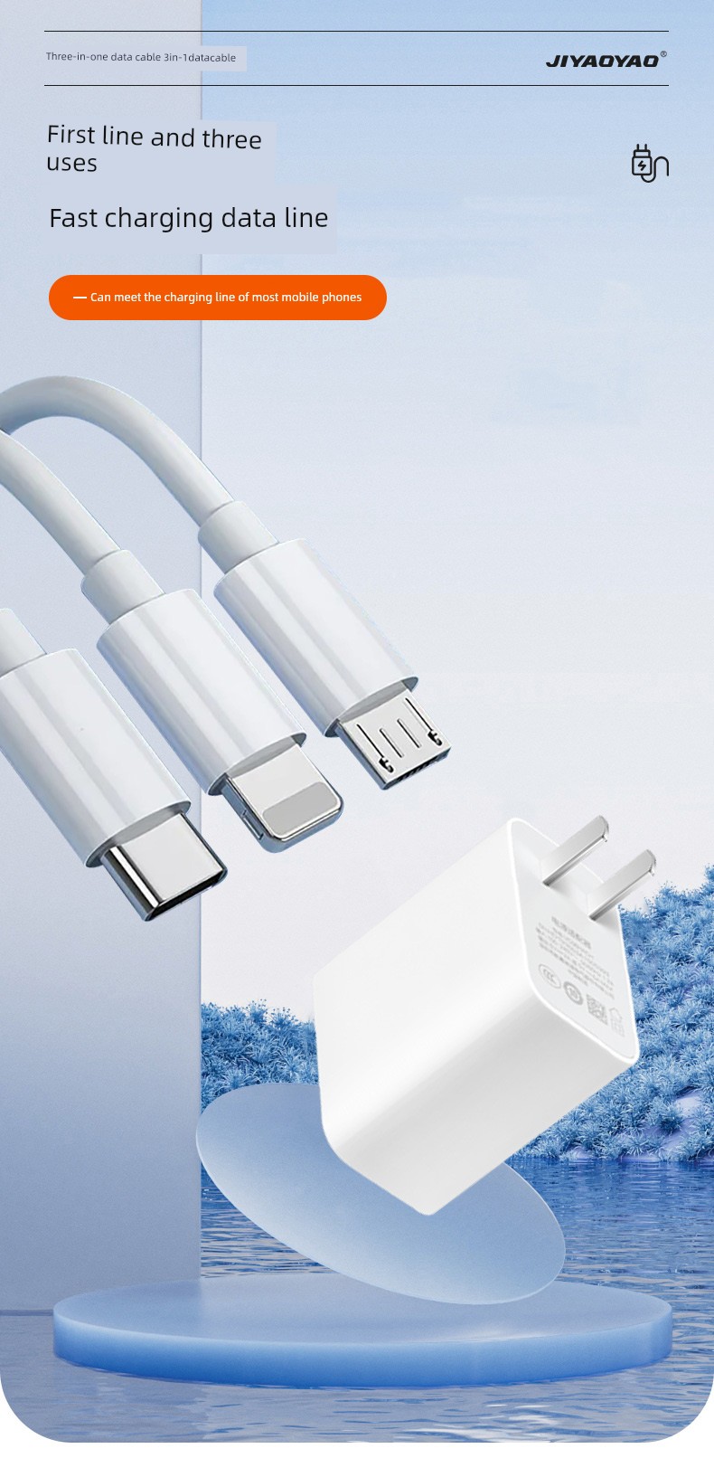 Charger Three-in-One Line Data Cable Car Charger Fast Charge Suit Apple Android Phone Universal Typec Plug