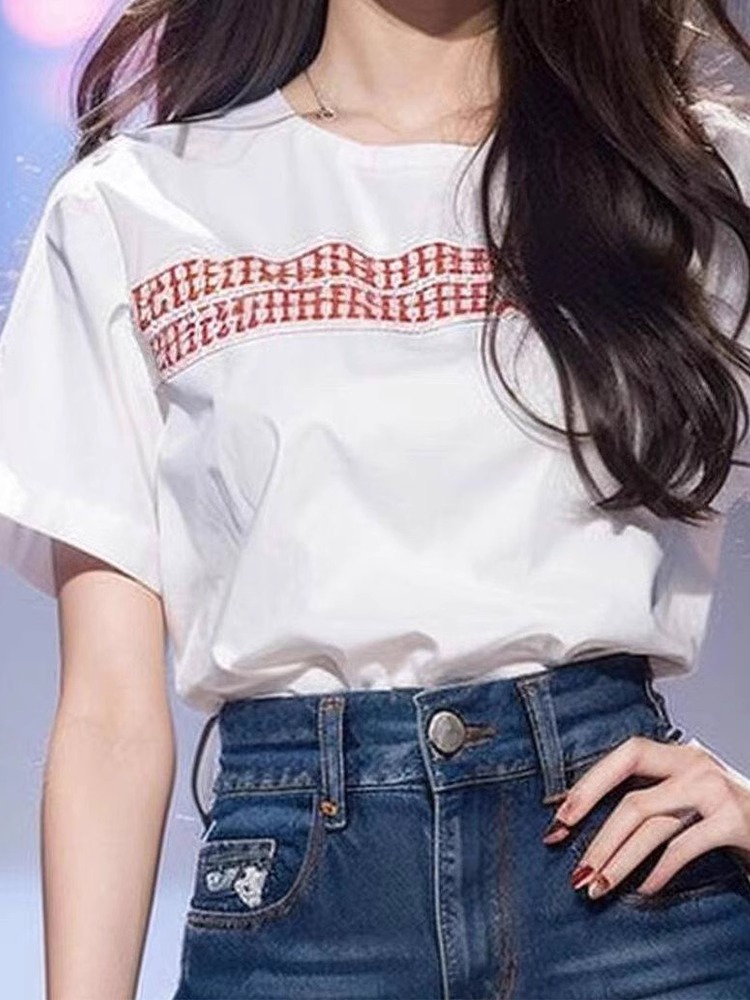 Chic Sweet and Spicy Very Fairy Blouse Summer Super Nice White with Printed Pattern Short Sleeve T-Shirt Women 2025 New Arrival Best Selling